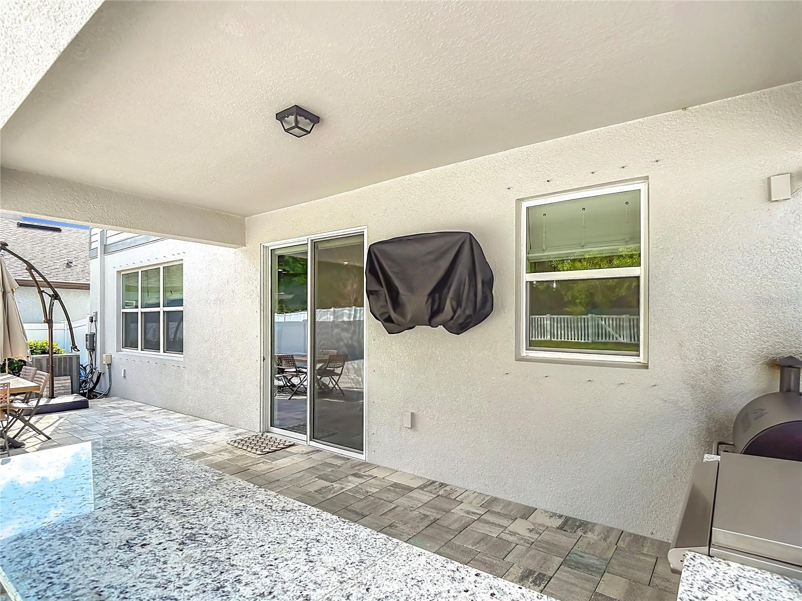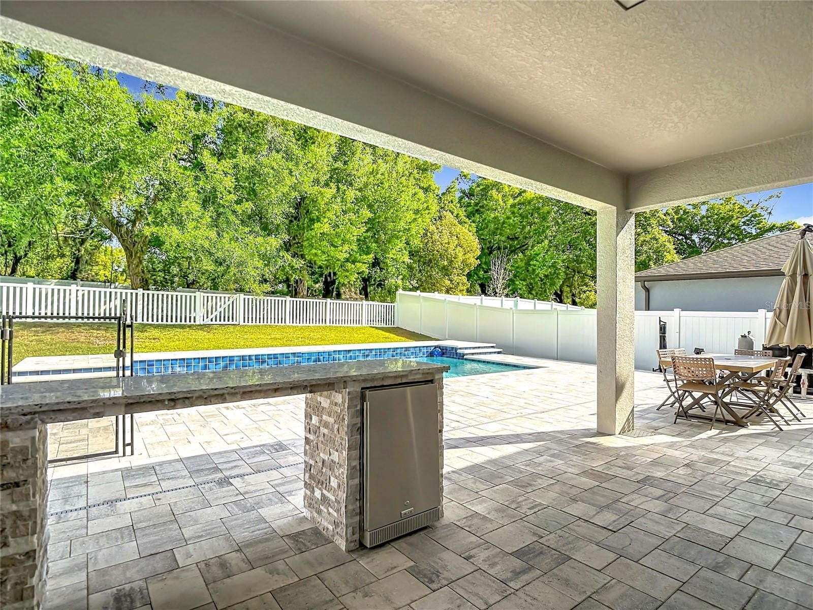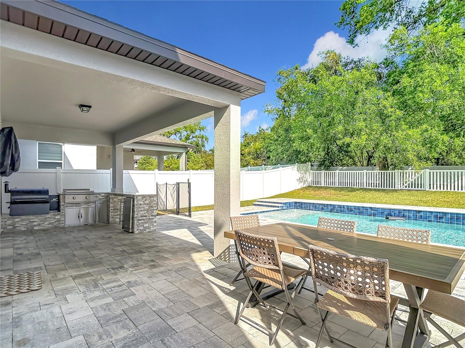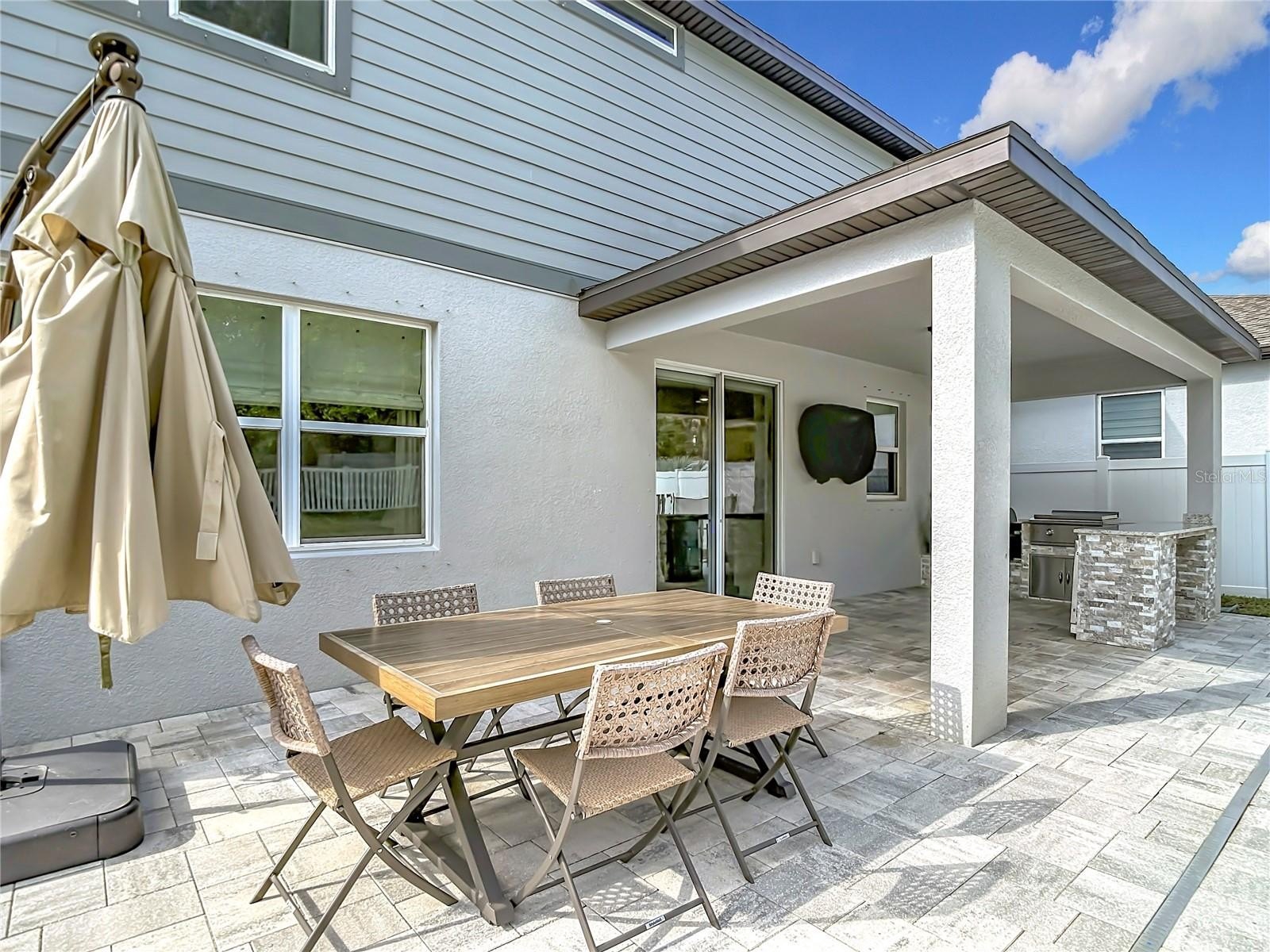 The lanai is a true extension of the home, featuring a high-end outdoor kitchen that will impress any grill master.