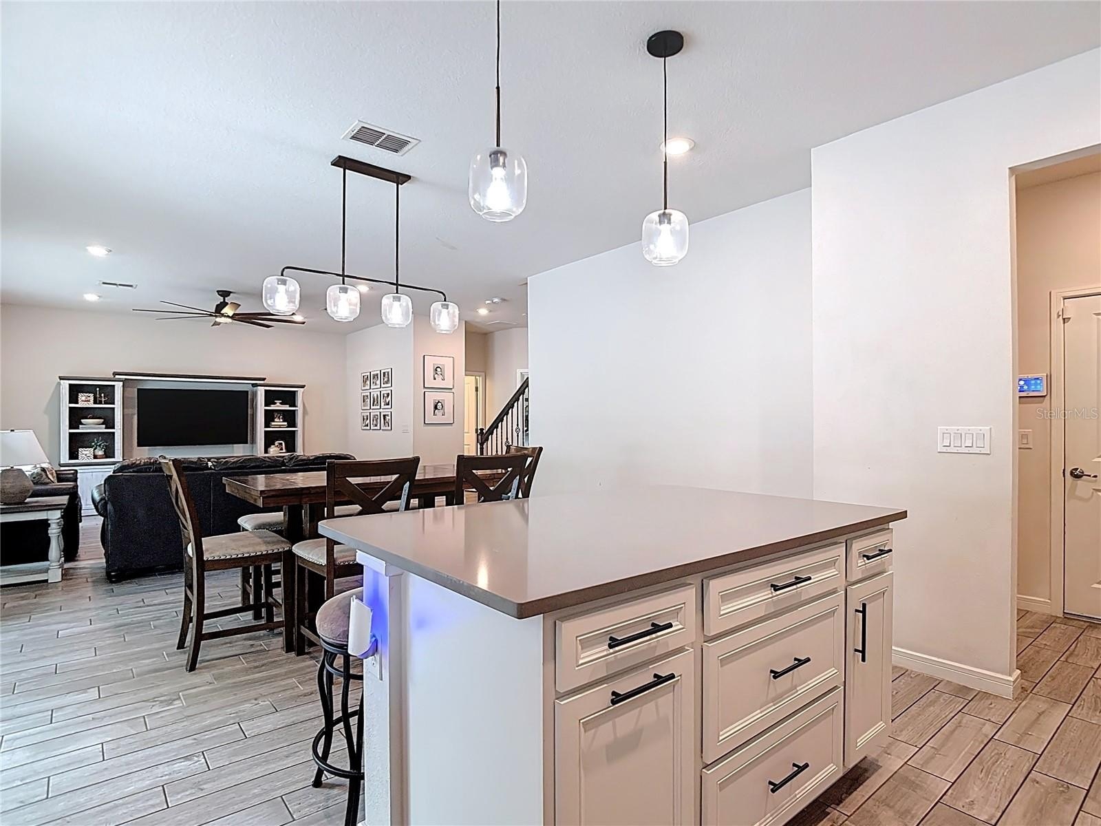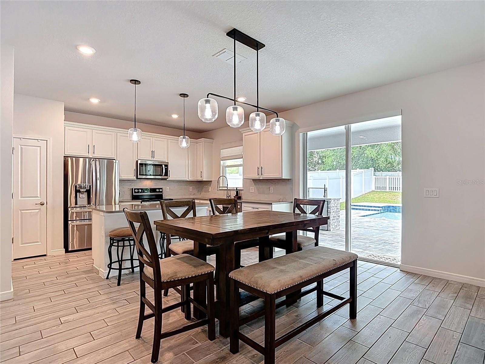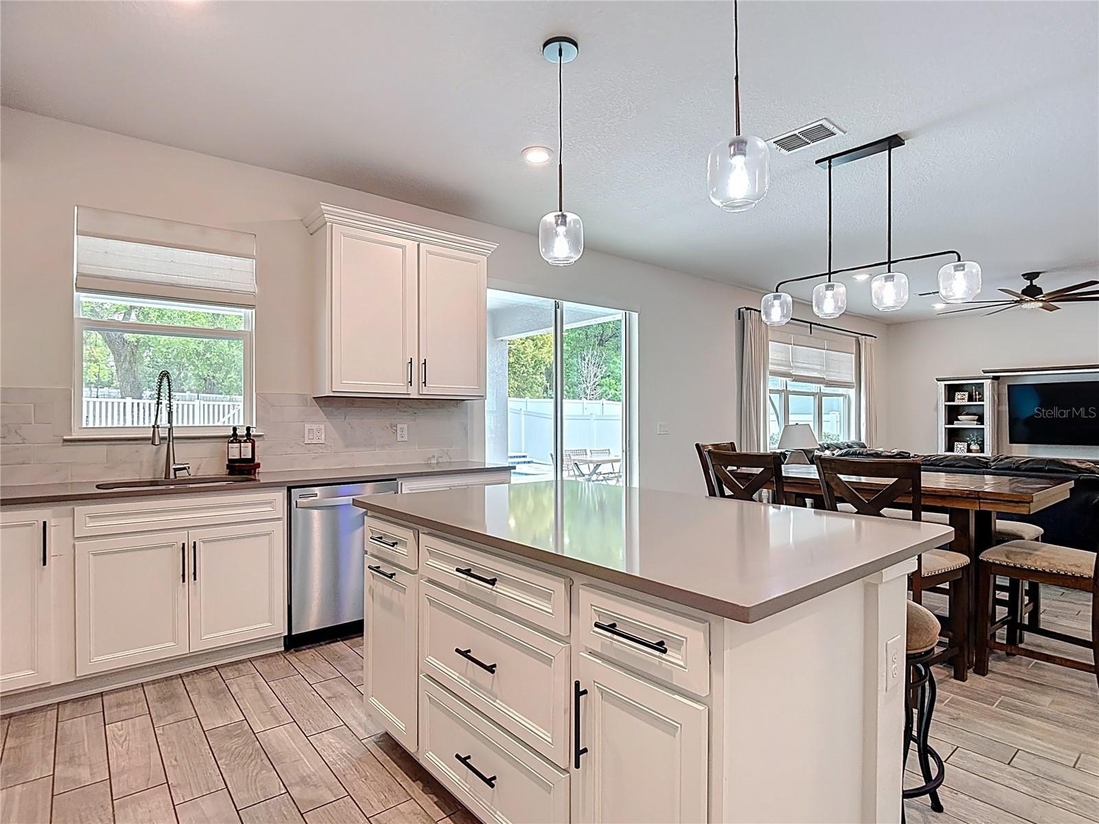 Gourmet Kitchen: Featuring stainless steel appliances, granite countertops, and a massive island that overlooks the dining area and family room.