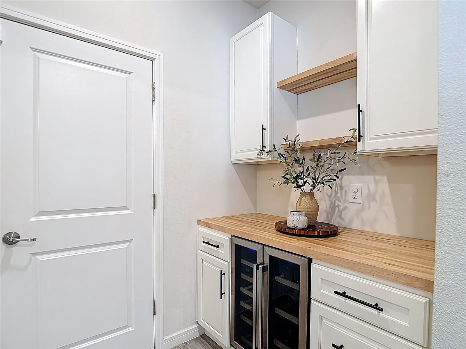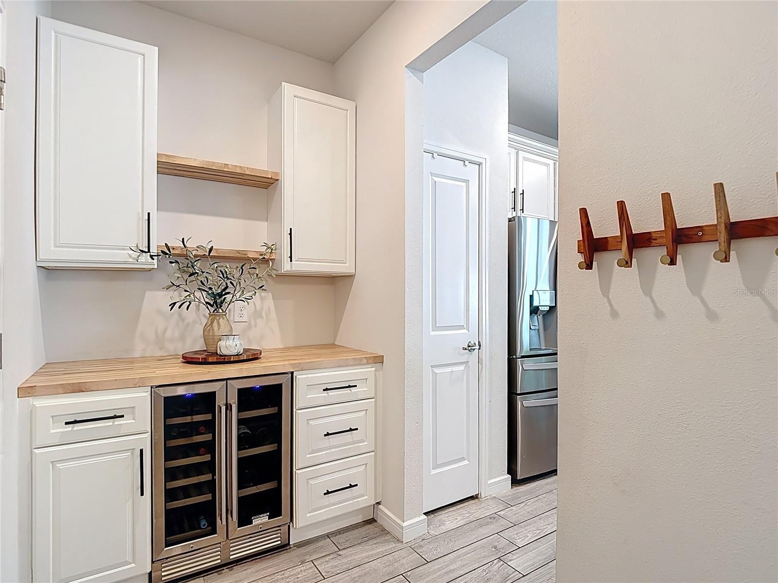 The Dry Bar: A modern beverage station with dedicated wine refrigeration—your go-to spot for cocktail hour.