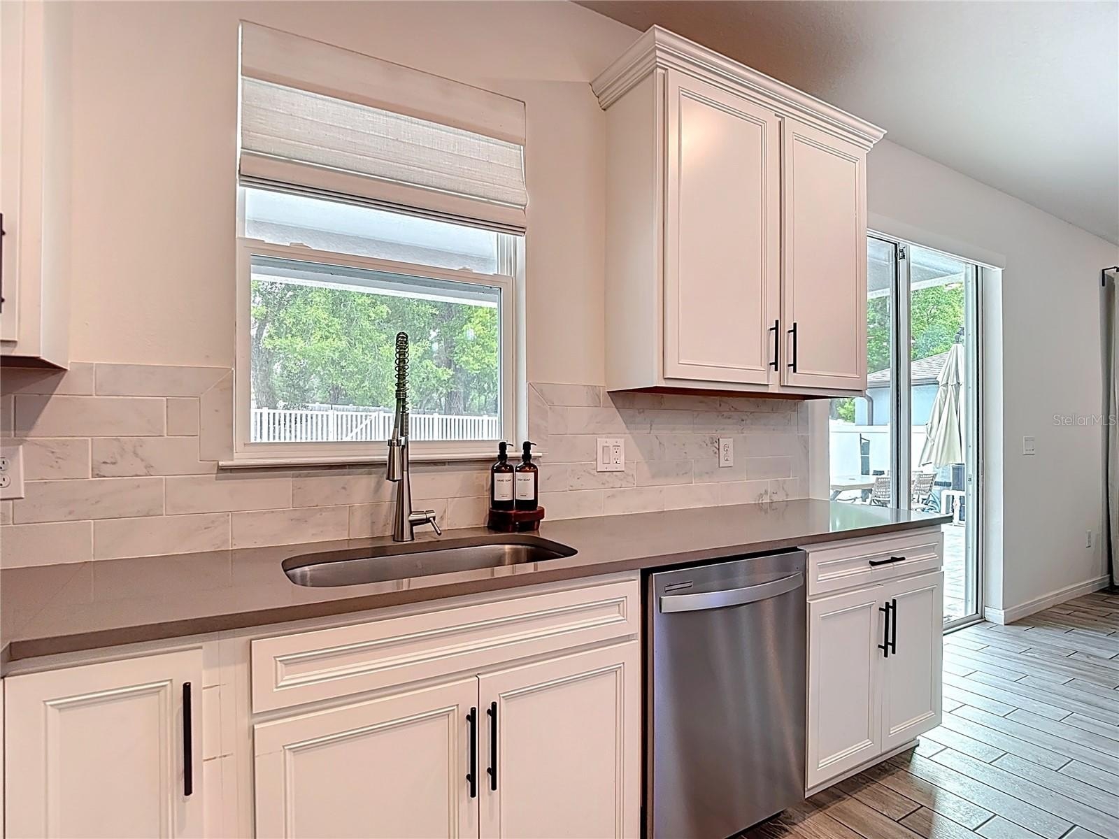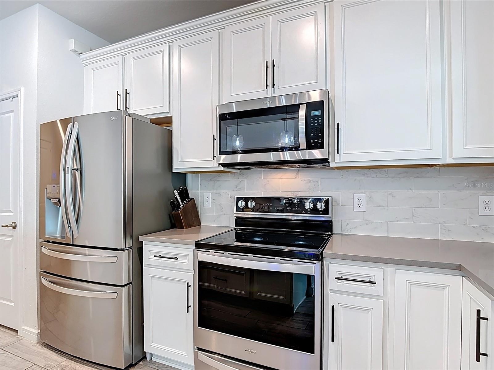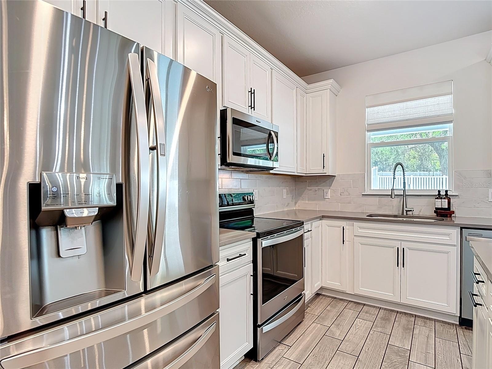 Convenience: Integrated beverage fridge and expansive quartz countertops for easy prep and serving.