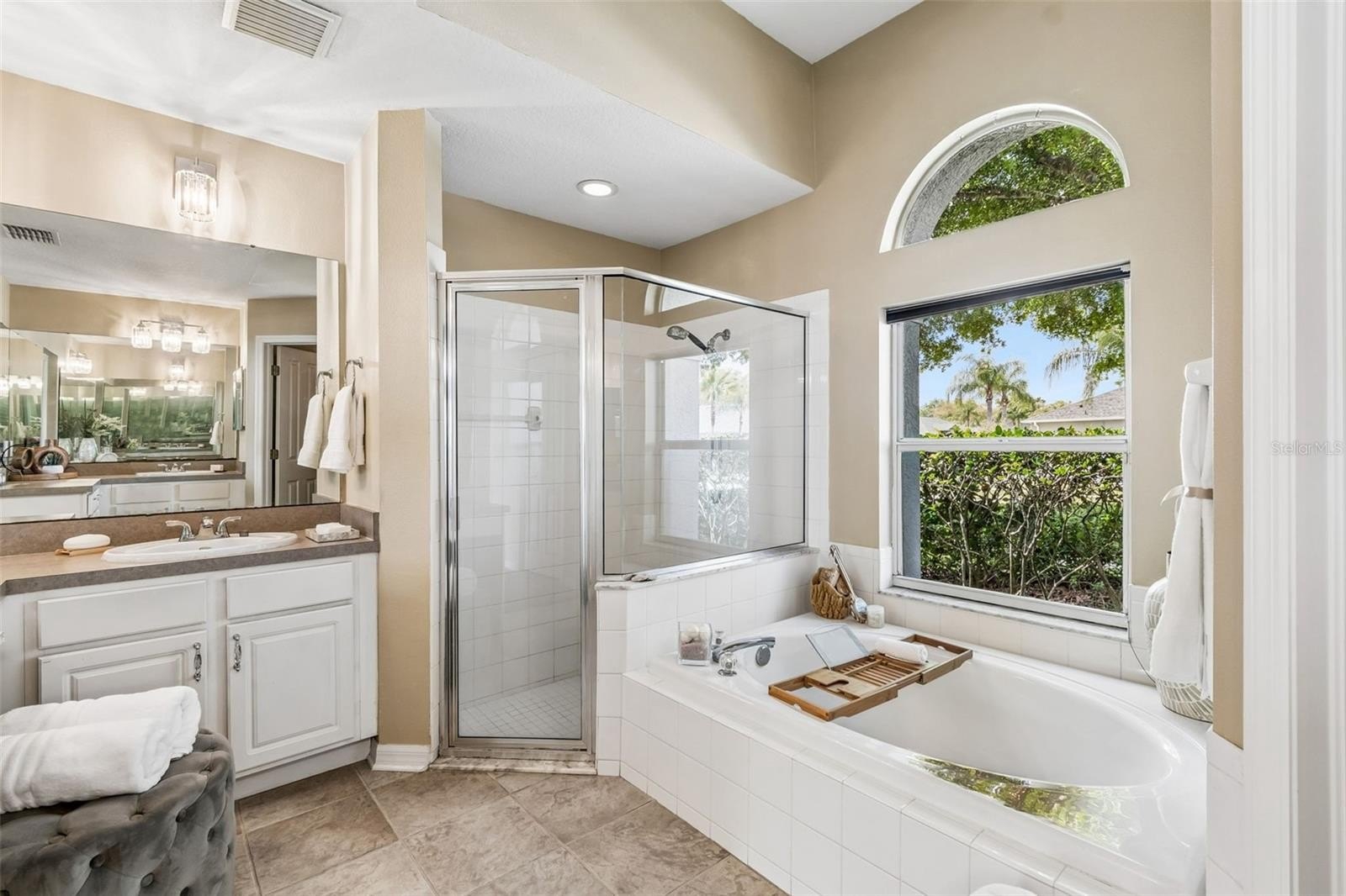 The primary retreat is a secluded sanctuary with conservation views and an ensuite bath complete with separate dual vanities, garden tub and walk in shower. The secondary wing has two additional bright bedrooms sharing a well-appointed third bathroom The guest suite located at the rear of the home with its own dedicated full bath—ideal for multi-generational living or a private home office. Relax on your back patio and enjoy the peaceful sounds of nature. With no rear neighbors and a protected conservation view, your backyard is a private oasis in the heart of Land O' Lakes. Finding a home with this specific layout doesnt come up often in the intimate Heron Point community and is a true rarity. Conveniently located close to Premium Outlet mall, grocery stores, restaurants, Advent Health Hospital and I-275