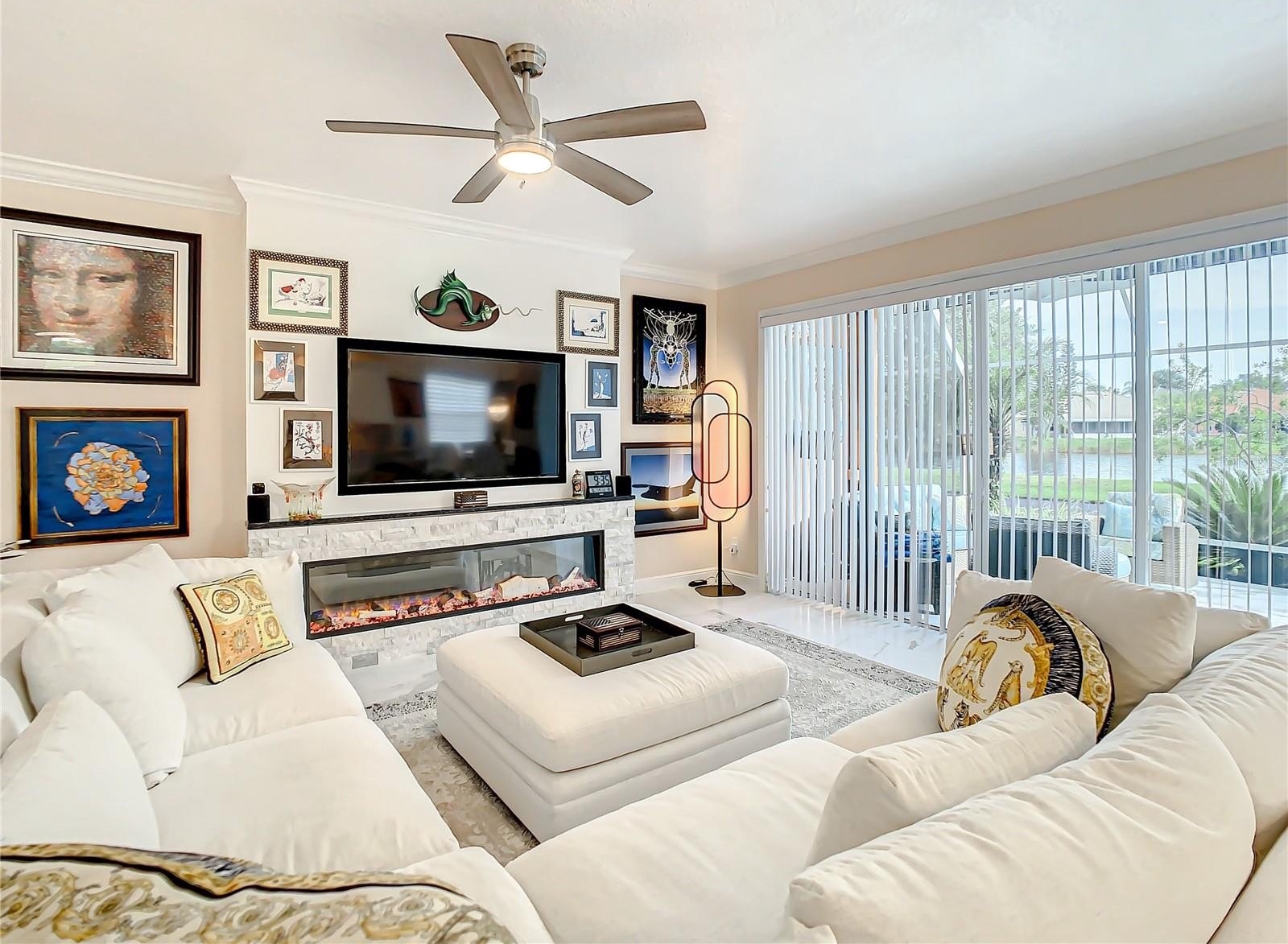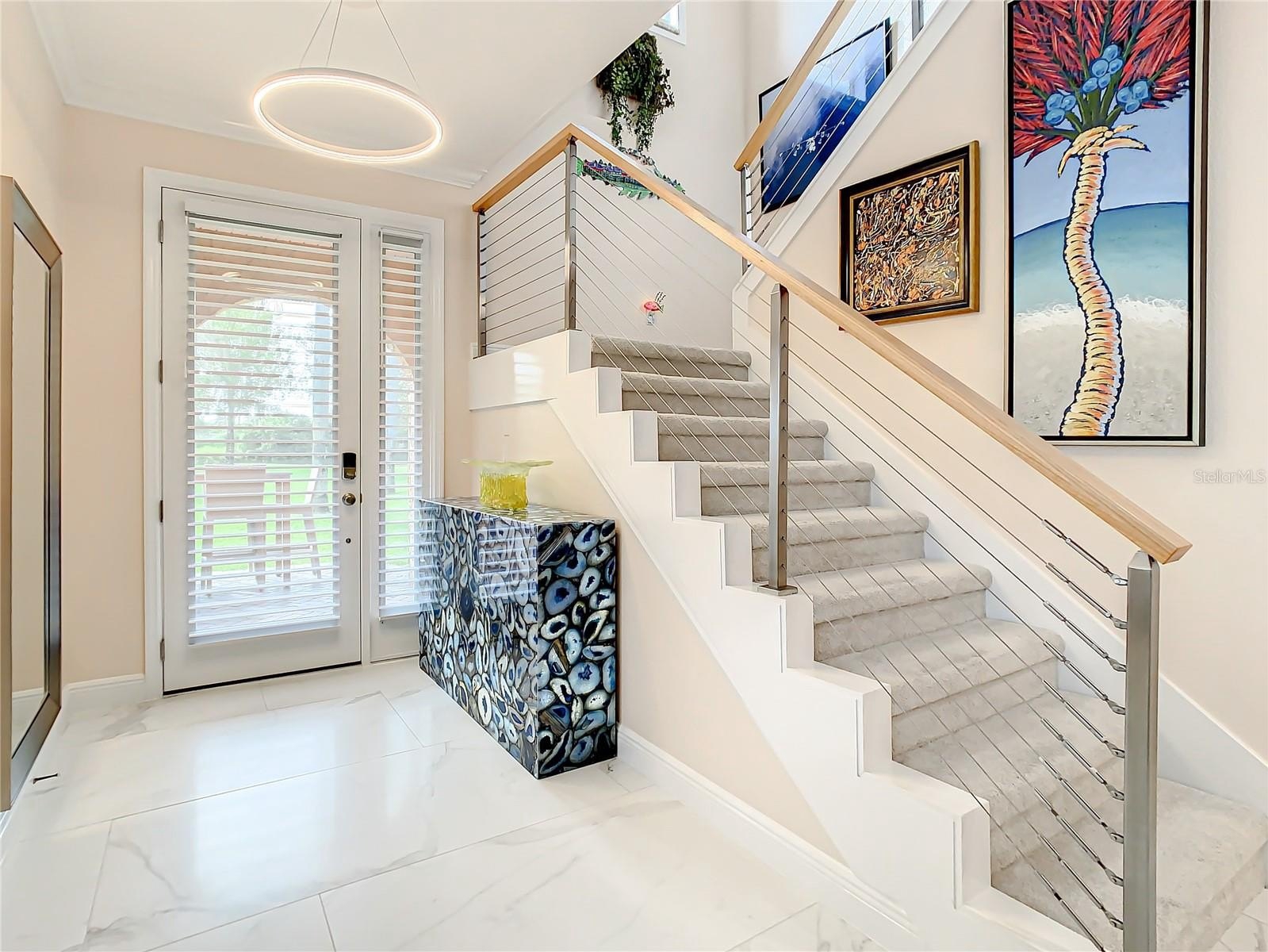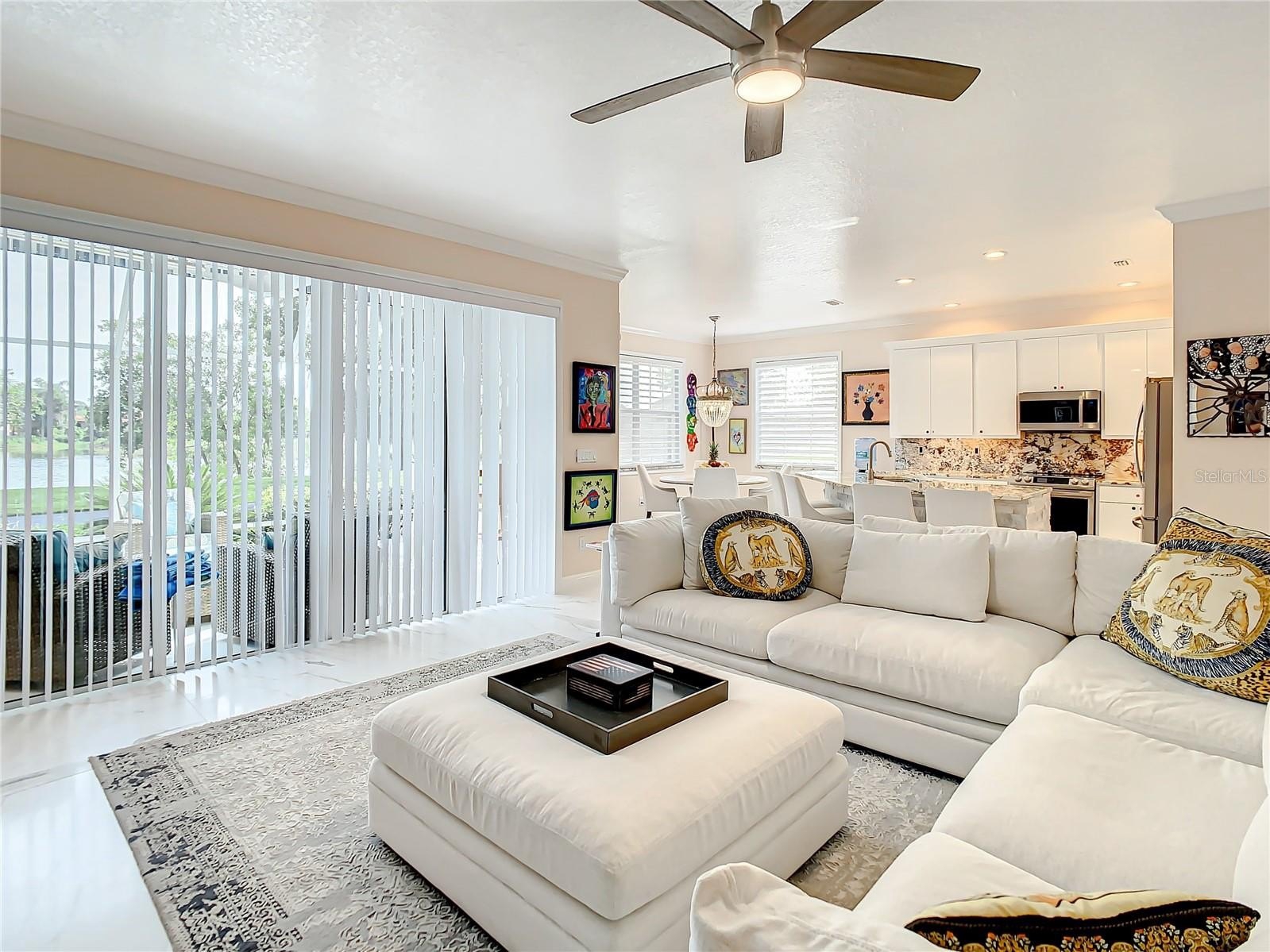 RARE opportunity to own a premier end-unit townhouse with breathtaking water views and a level of upgrades that truly sets it apart! Located within the exclusive, gated community of Caliente Resort and Spa, this exceptional residence invites you to experience optional clothing resort-style living at its finest. Spanning 2,301 square feet, this impressive three-bedroom, 2.5-bath home is designed to captivate - from the moment you arrive through the striking new front door with expansive glass inserts, sidelights, and upgraded hardware. Inside, you’ll find a seamless blend of modern elegance and thoughtful design, highlighted by a fully updated kitchen, bathrooms, and flooring throughout. The home showcases an extensive list of upgrades, including newer appliances, granite countertops throughout (kitchen, backsplash, bathrooms, and even window sills), resurfaced cabinetry, a custom-built pantry, and custom walk-in closets. The first floor features oversized contemporary ceramic tile extending through the living areas, lanai, and balcony, complemented by crown molding and upgraded window casings throughout the entire home. Additional enhancements elevate both style and comfort, including new vertical blinds on all sliding glass doors, Hunter Douglas shades on the first floor and staircase, new LED lighting, updated fans and fixtures, new toilets, faucets, and brushed nickel hardware throughout. The staircase has been completely reimagined with a sleek stainless steel railing, while new carpet adds warmth to the stairs and all bedrooms. A stunning Simplifire electric fireplace with heating capability creates a perfect focal point for the living space. Outdoor upgrades include new lanai and balcony screens, new window screens, beautifully enhanced exterior real clay brick pavers along the front walkway, breakfast area, and backyard path, and added irrigation for newly landscaped areas. The garage is equally impressive, offering an epoxy-coated floor, a dedicated storage room, new washer/dryer hookups for added flexibility, a new garage door opener with app and remote access, and a privacy screen. A water softener and whole-home filtration system complete this truly turnkey residence. Wait until you see the panoramic water views from the backyard and the 2nd floor balcony! This is more than just a home; it’s a statement property offering luxury, privacy, and an unmatched lifestyle. DO NOT MISS THIS ONE!