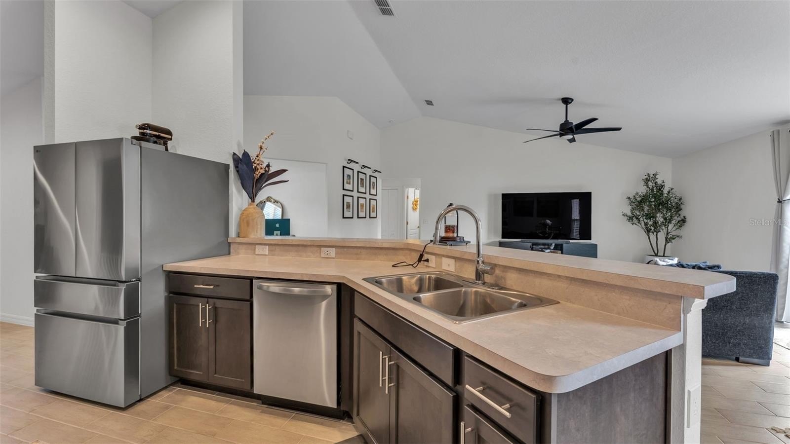 From the moment you enter, you’re welcomed by a sophisticated interior highlighted by a tiled entry and a grand great room with soaring vaulted ceilings, creating an impressive yet inviting atmosphere. The open-concept kitchen is thoughtfully designed for both elevated entertaining and everyday living, offering generous space to gather and connect.