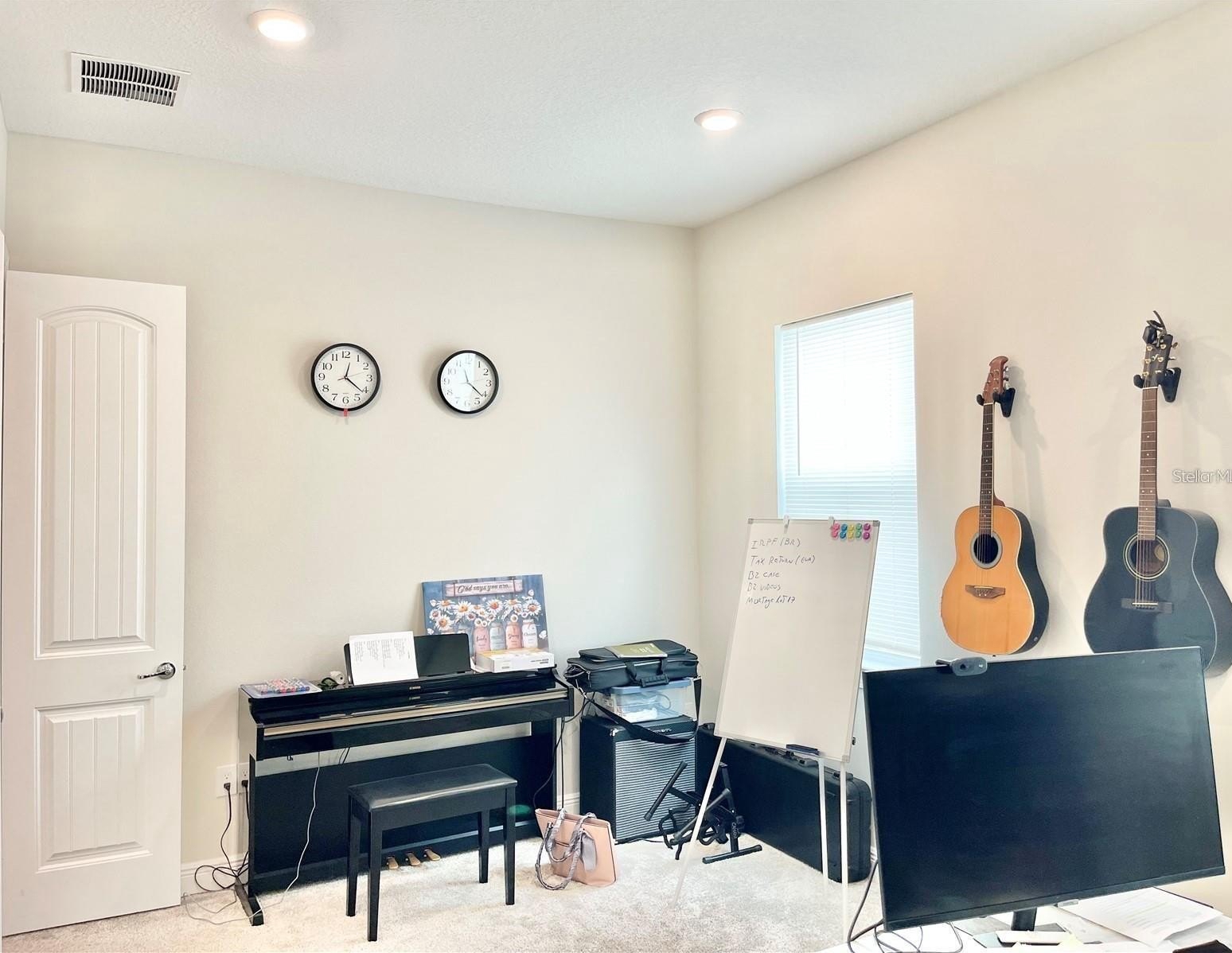 The main level includes a GUEST SUITE with a private bathroom and walk-in closet, a dedicated home office, and a flex room. Upstairs, you’ll find a spacious loft, a laundry room with quartz-topped cabinetry, an additional guest suite, two secondary bedrooms, a full bathroom, and the owner’s suite, which features a SPA-INSPIRED WALK-IN SHOWER with a rain shower head, dual vanities, a private water closet, a large walk-in closet, and a linen closet.