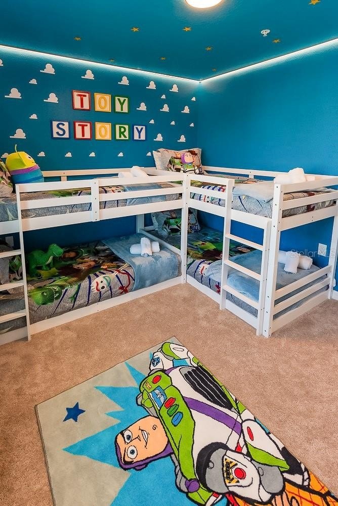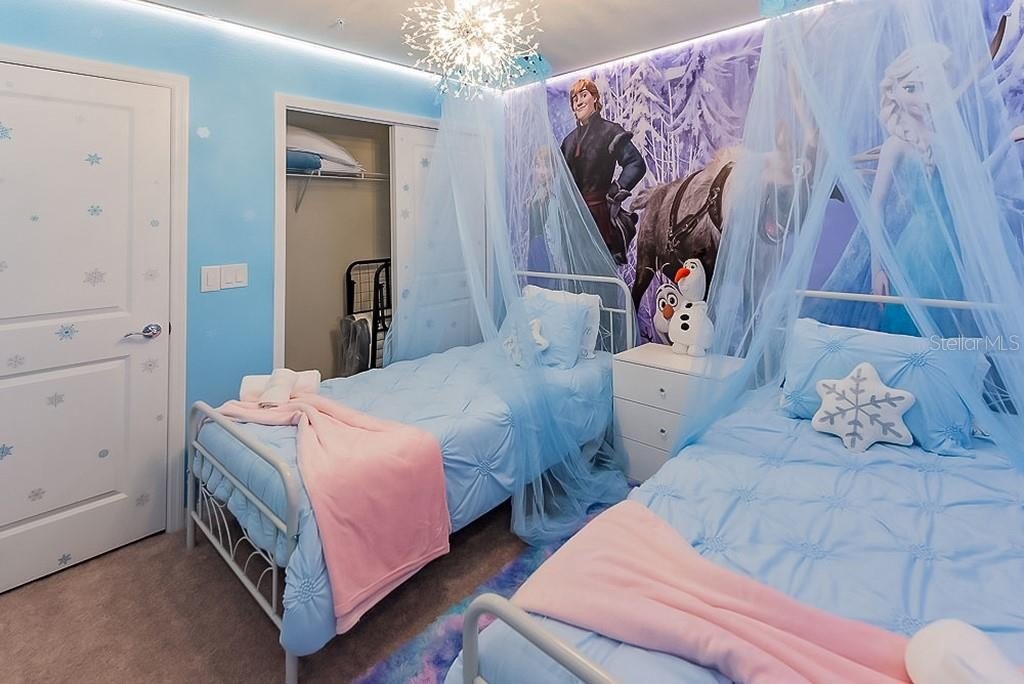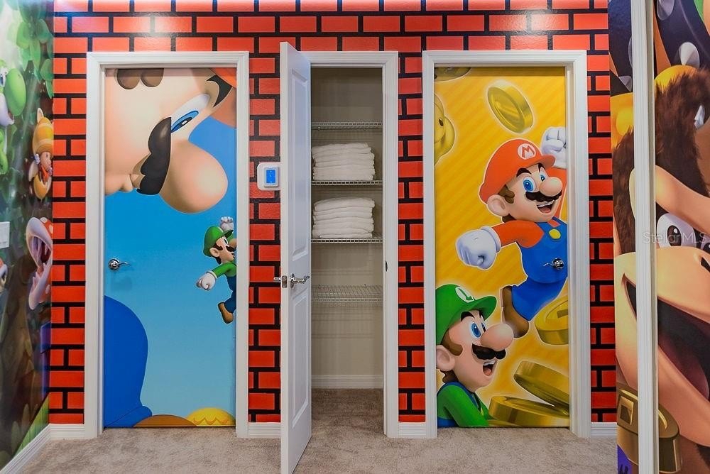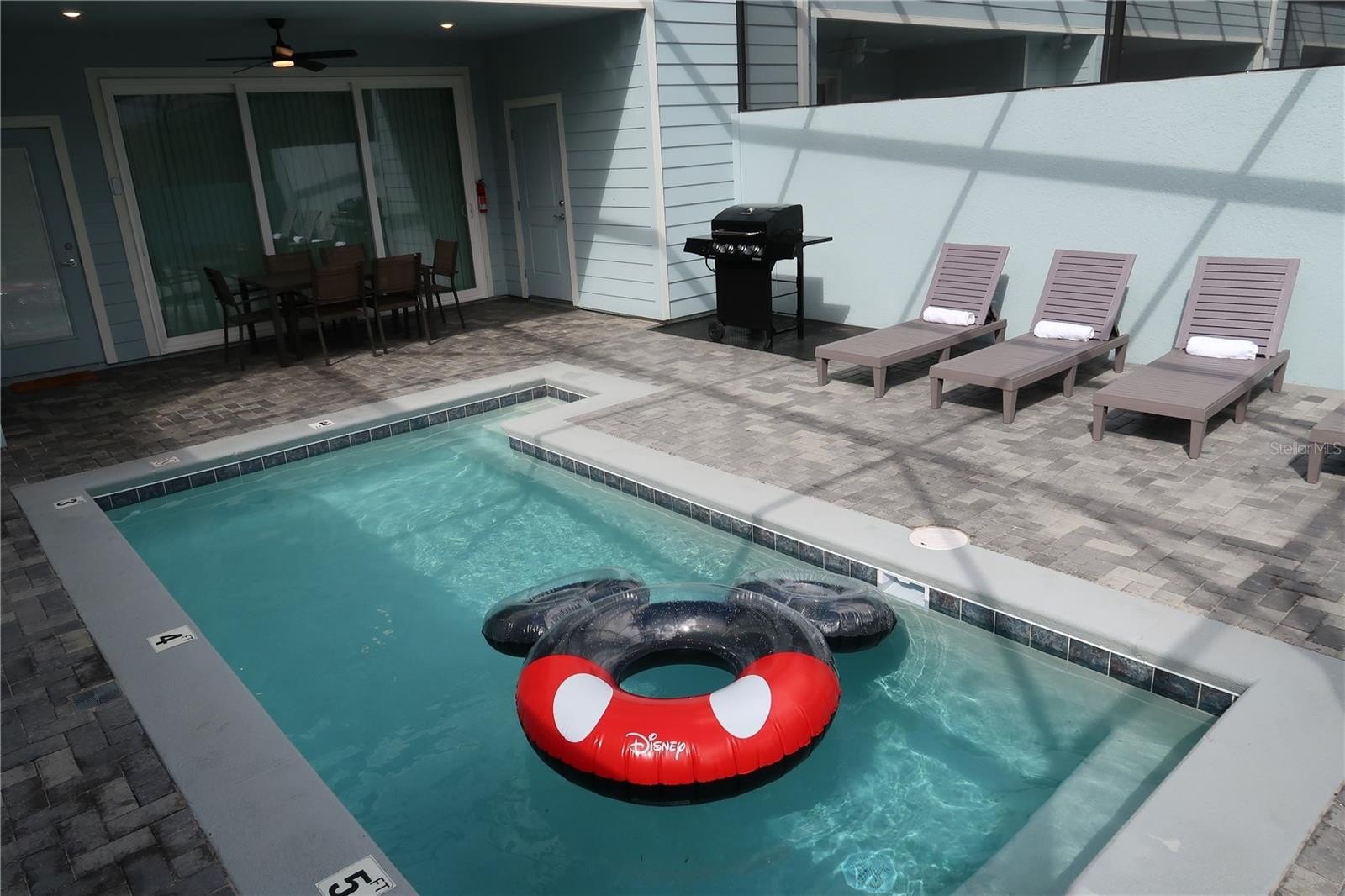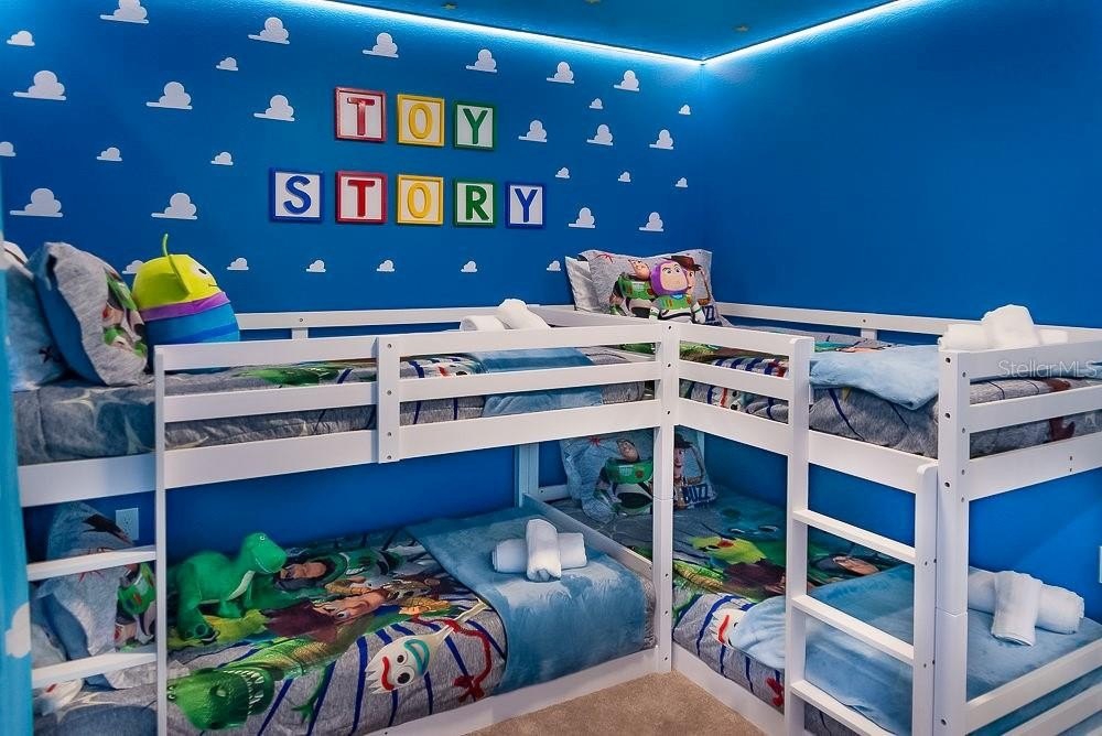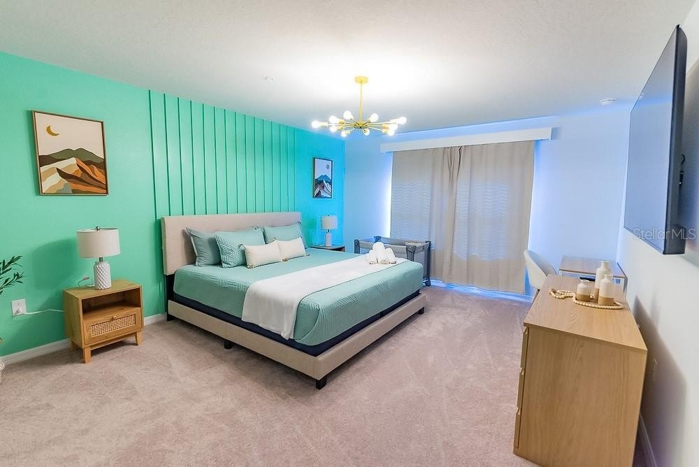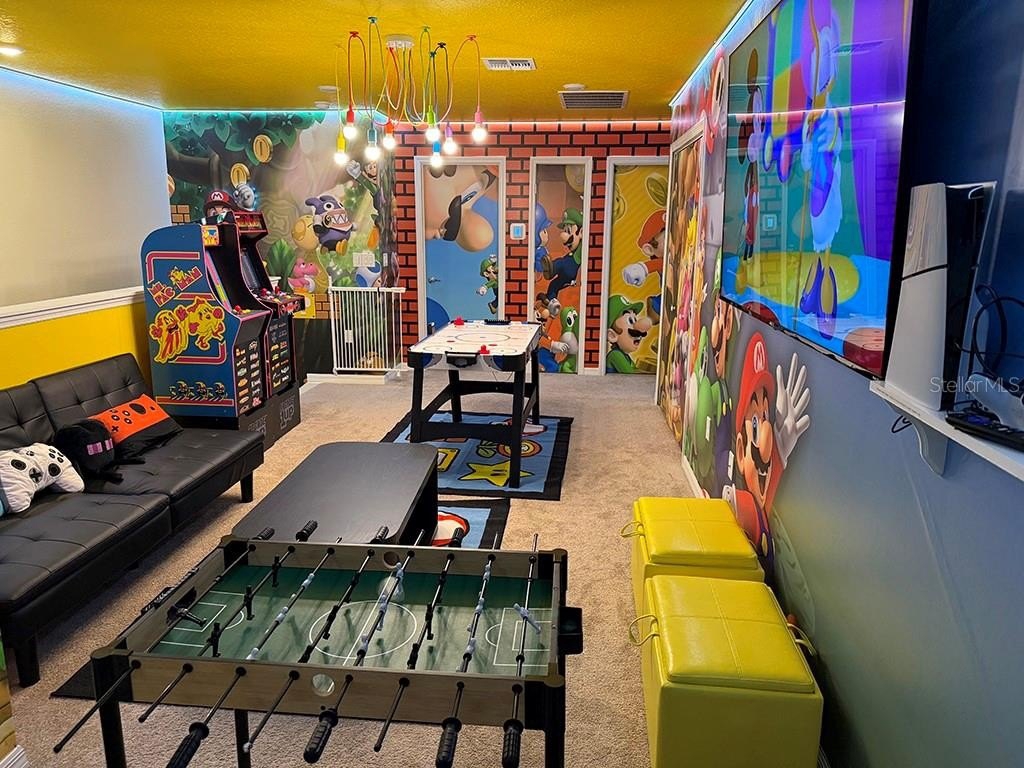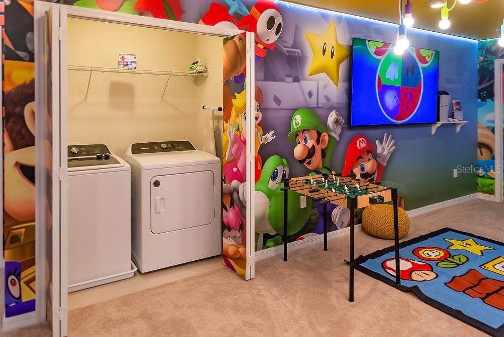 LOCATION, LOCATION, LOCATION! This unique townhouse won't last long on the market. Located just a few hundred yards from the Clubhouse and near a Walmart Supercenter, hundreds of restaurants, shopping centers, and several outlets, it's strategically positioned near major highways—MINUTES AWAY FROM DISNEY AND OTHER WORLD-RENOWNED ATTRACTIONS. Strategically designed to accommodate UP TO 14 PEOPLE, this property's profitability rivals bigger homes that cost hundreds of thousands more, making it an EXCEPTIONAL SHORT-TERM RENTAL INVESTMENT or the perfect personal vacation home. The original dryer has been replaced with a LARGER, MORE EFFICIENT MODEL to better serve bigger groups. The house has been PROFESSIONALLY DECORATED by the best in the short-term rental industry, creating a ONE-OF-A-KIND home that's PLUG-AND-PLAY and ready to book guests from day one. Every piece of furniture was hand-picked to complement the home's style while ensuring durability and affordability for eventual repairs or replacements. With TWO LUXURIOUS SUITES, a restroom near the PRIVATE HEATED POOL, and a bedroom next to a bathroom on the FIRST FLOOR for guests who prefer avoiding stairs, this home satisfies the entire family. The designers incorporated CUTTING-EDGE TECHNOLOGY upgrades: the pool heating system is CONTROLLED REMOTELY, the front door operates with REMOTELY GENERATED CODES, and four closets with ELECTRONIC LOCKS (all featuring FINGERPRINT ACCESS) store extra supplies and linens for seamless back-to-back reservations. Three THEMED BEDROOMS and a SUPER MARIO-THEMED LOFT with arcade games, SEVEN SMART TVS and entertainment will keep everyone engaged for days. NO ONE WILL WANT TO LEAVE THIS HOUSE.
