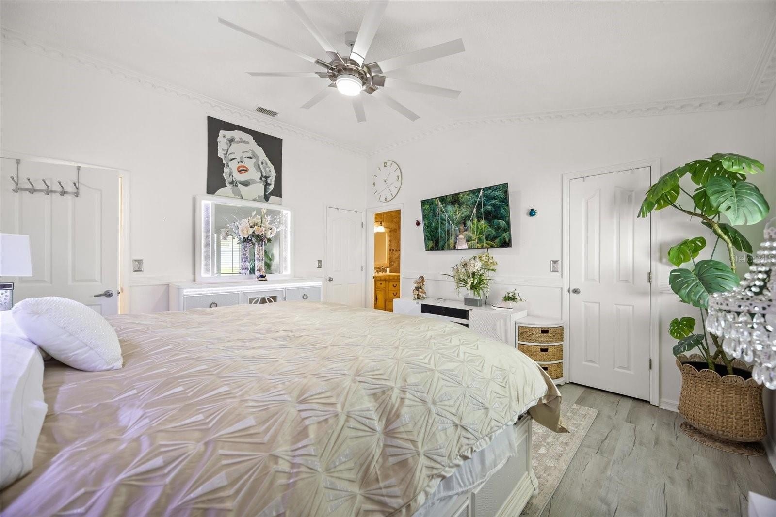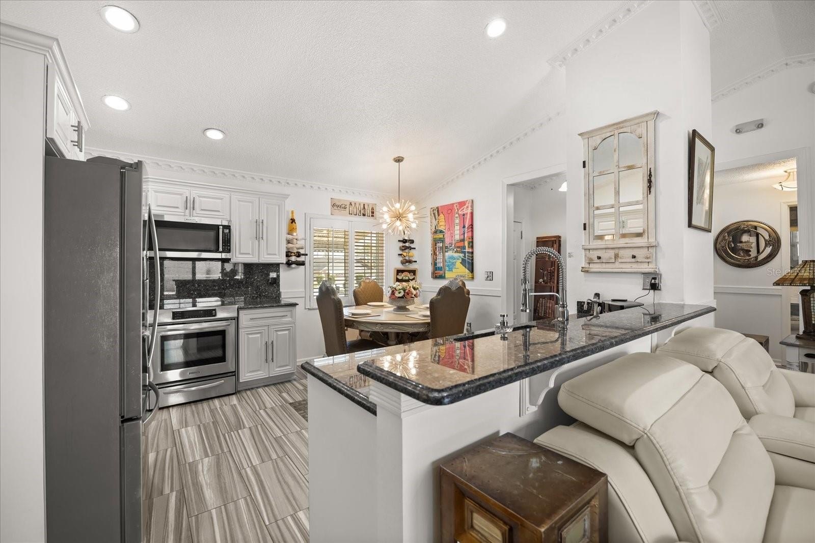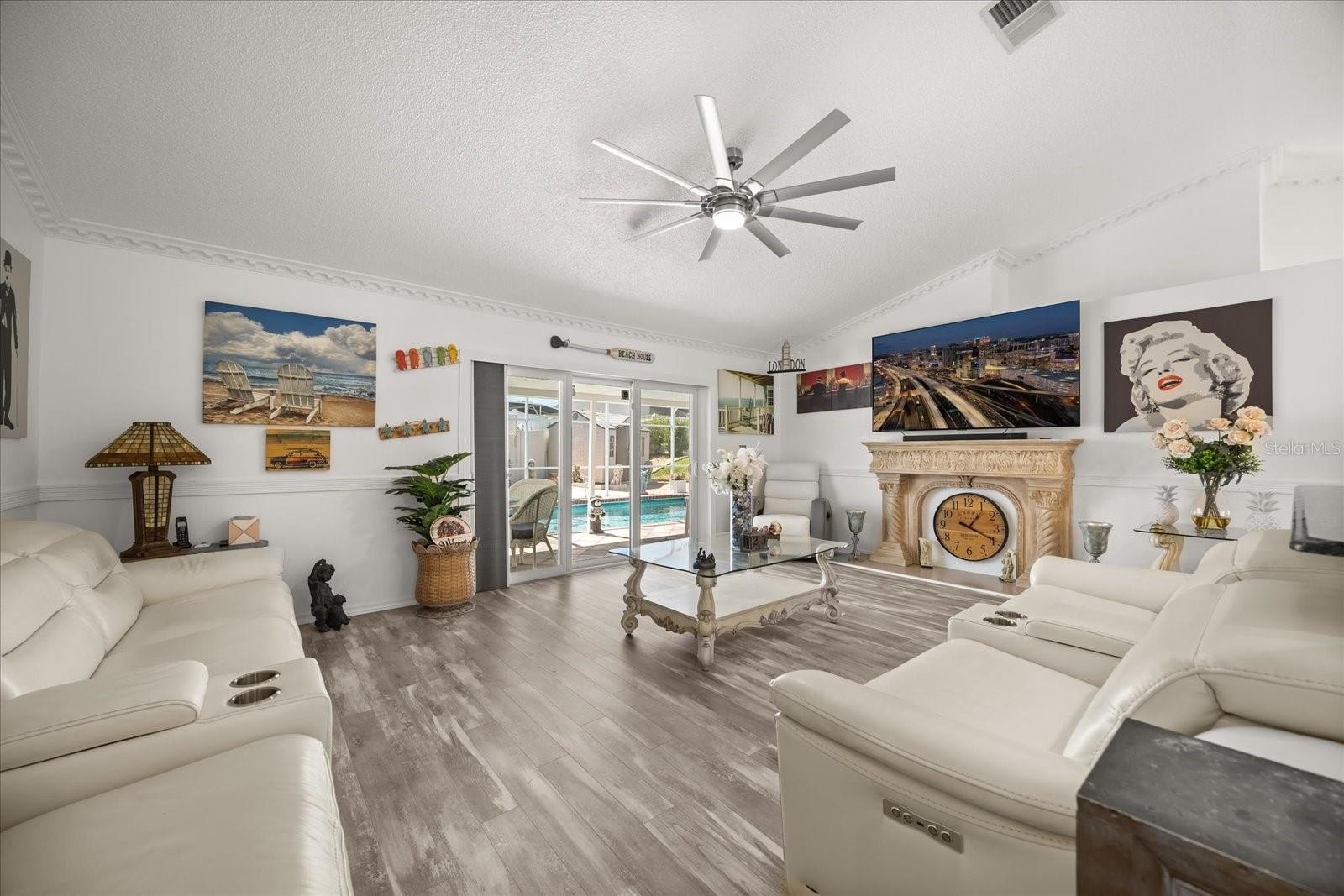 This is the kind of home that just feels right the moment you pull up—inviting, well cared for, and designed for easy Florida living. Situated on an oversized .27-acre corner lot, this beautifully maintained 3-bedroom, 2-bath home offers the perfect blend of indoor comfort and outdoor living. Step inside to a bright, open floor plan with vaulted ceilings, creating an airy, inviting atmosphere. So many upgrades to mention crown molding, plantation shutters, light fixtures, granite countertops in Kitchen and bathrooms. The main living areas feature luxury vinyl plank and tile flooring, with a clean and modern feel. The kitchen is both functional and elegant, complete with stainless steel appliances and seamless flow into the living and dining spaces—ideal for entertaining. The primary suite is a true retreat, featuring dual closets and a beautifully finished en-suite bath with elegant tile work, a soaking tub, and a separate walk-in shower. With direct access to the pool, it’s designed for effortless Florida living. Step outside to your screened-in private pool with stone pavers, surrounded by a fully fenced white vinyl yard and lush landscaping—perfect for relaxing, hosting, or enjoying quiet evenings at home. Even the garage is retreat with tile flooring and screened in door perfect for overlooking the beautiful curb appeal in the shade on a summer day. Located just minutes from Champions Gate and Reunion Resort & Golf Club, with easy access to major highways, shopping, dining, and Central Florida’s top attractions, this home offers both convenience and a lifestyle buyers are searching for. Well cared for, beautifully presented, and perfectly located—this is the one to see.