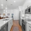 At the heart of the home, the chef-inspired kitchen features sleek quartz countertops, premium Bosch stainless steel appliances, and clean, modern finishes that flow seamlessly into the spacious living and dining areas, ideal for both entertaining and everyday comfort.