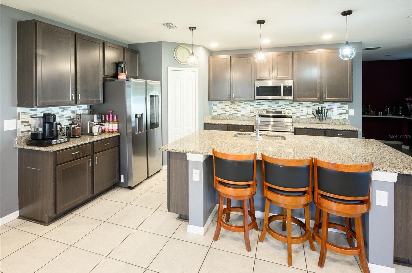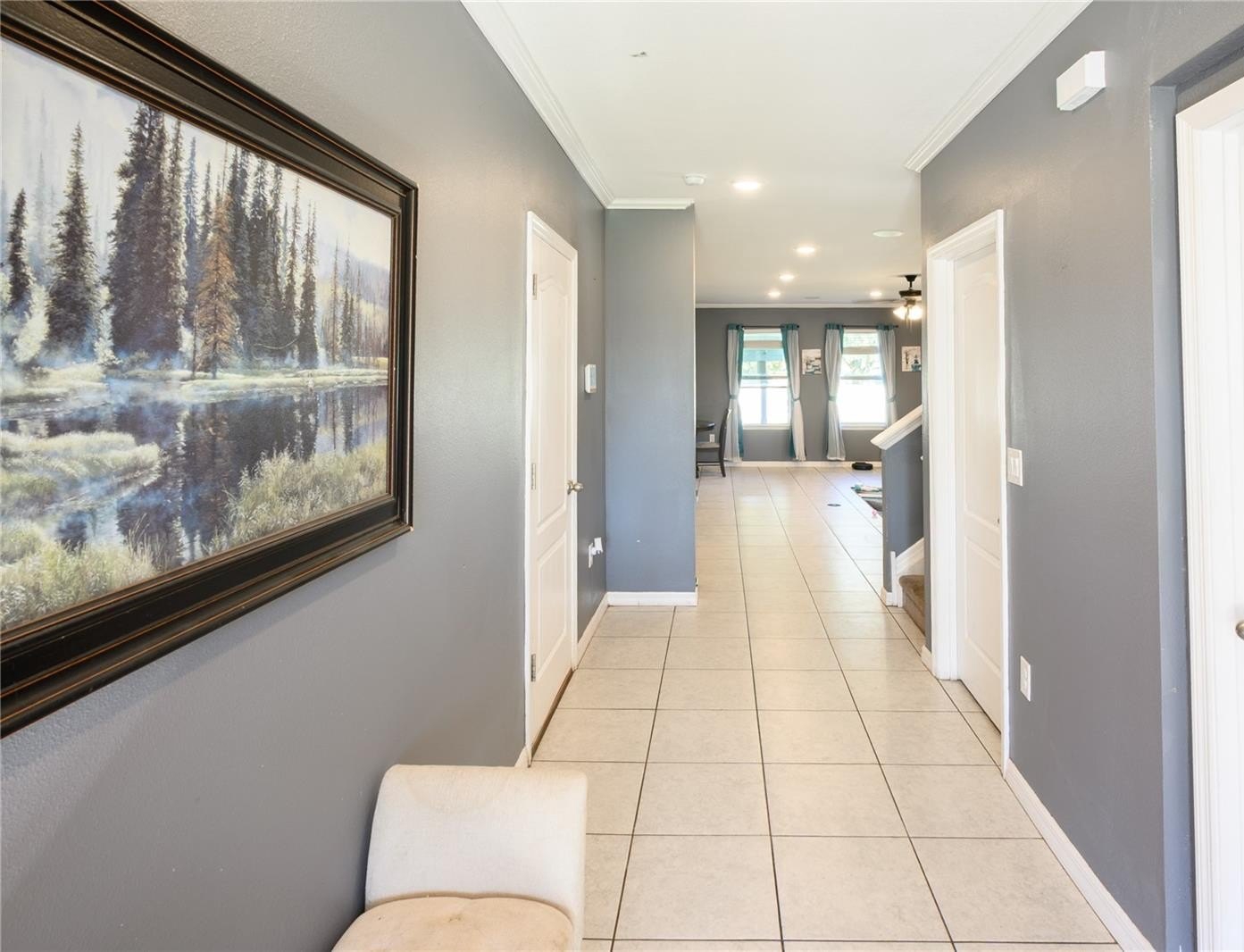 Inside you'll find a well-designed open layout featuring a large great room, upgraded kitchen, and plenty of room for multi-generational living, remote work, or entertaining. The kitchen stands out with granite countertops, tile backsplash, upgraded cabinetry, and ample prep space. The interior has been fully repainted and enhanced with crown molding in the entry, kitchen, and main living areas.