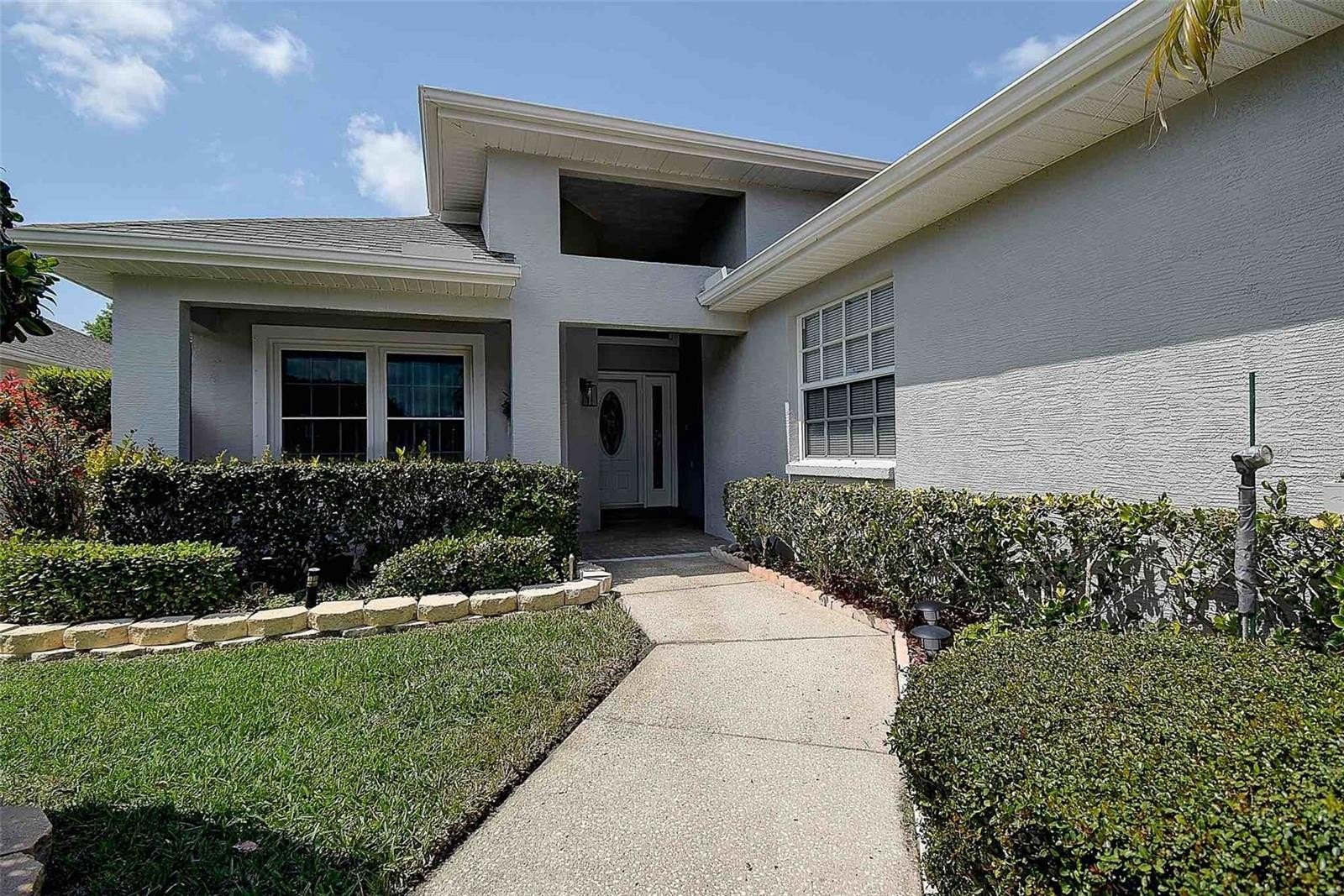 Welcome to this highly sought after single family home with an oversized enclosed lanai with a beautiful pond view of natural Florida wildlife. Located within WYNDTREE / EDEN BROOK in Trinity, this 3 bedroom, 2 bath home offers an eat in kitchen, large picture window, glass chandelier as well as recessed lighting, corian countertops with tile backsplash, mounted TV and all GE stainless steel kitchen appliances included. The main living area accentuates the home perfectly with high vaulted ceilings, open to the dining room that offers an ideal setting with easy access to the enclosed lanai, ideal for entertaining! The spacious primary bedroom offers a tray ceiling, ceiling fan, his and her walk-in closets, en-suite with dual vanities and walk in shower. The spacious secondary bedroom offers added light with ceiling light and picture window, mounted TV, built in closet, and easy access to the secondary full bathroom with tub/shower. The charming third bedroom offers versatility as an optional office/den, with french doors, ceiling fan and built in closet. Additional features include: solar tube/lighting in laundry and secondary bath, NEW exterior paint (2025), NEW A.O. Smith electric hot water heater (2025), NEW A.O. Smith water softener (2024), NEW SOLAR PANELS for more energy efficiency (2024), recently updated Adirondacks LVP flooring in the main foyer, kitchen and laundry (2022), NEW 2 car DGD garage door opener (2022), NEW shingle roof (2019), Uponor PEX replumbing (2017), four NEW double pane windows with storm shutters (2017), built in cabinetry in the garage with work space conveys with the home, as well as the washer & dryer! Enjoy the tranquil setting of nature with the pond view from your primary suite as well as the enclosed patio; or relax poolside at the community pool or spa. WYNDTREE VILLAGE is conveniently located nearby local shopping, dining, public and private golf courses, and stunning sandy beaches including: Honeymoon Island, Sunset Beach and Fred Howard Park. The HOA fee covers: lawn maintenance with lawn pest treatment/fertilization, basic internet, basic cable, maintenance of the common areas and access to community pool & spa! NO CDD and not located in a flood zone (zone X). Additional BONUS, the seller is offering a ONE-YEAR, Old Republic home warranty for the buyer at closing!