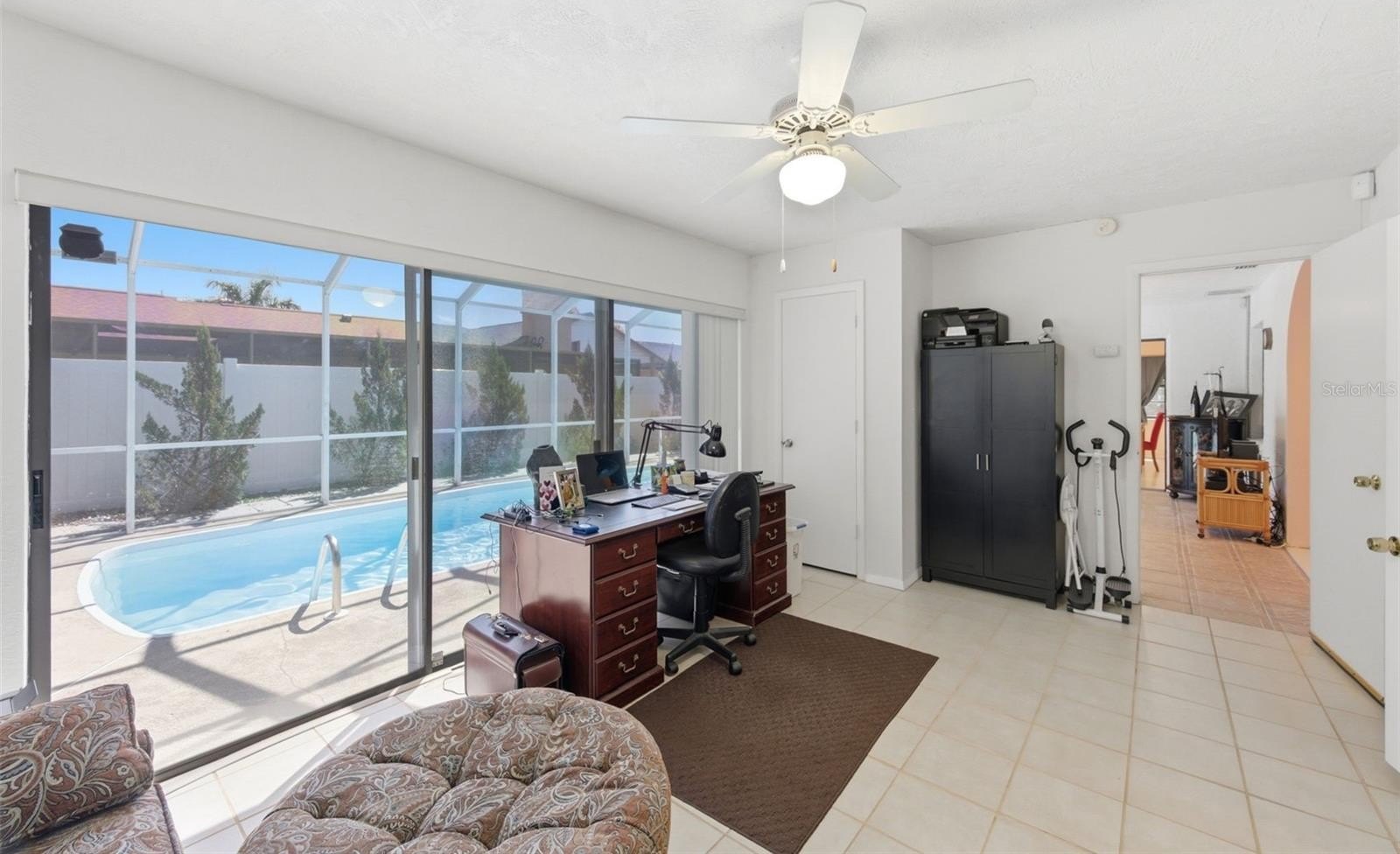 Out back, you have your own private screened in pool oasis that is perfect for cooling off, entertaining, or pretending you are on vacation without the airport hassle. Up front, there is a second screened courtyard porch, which means morning coffee in peace and quiet or an evening escape when you need a break from… well, everyone.