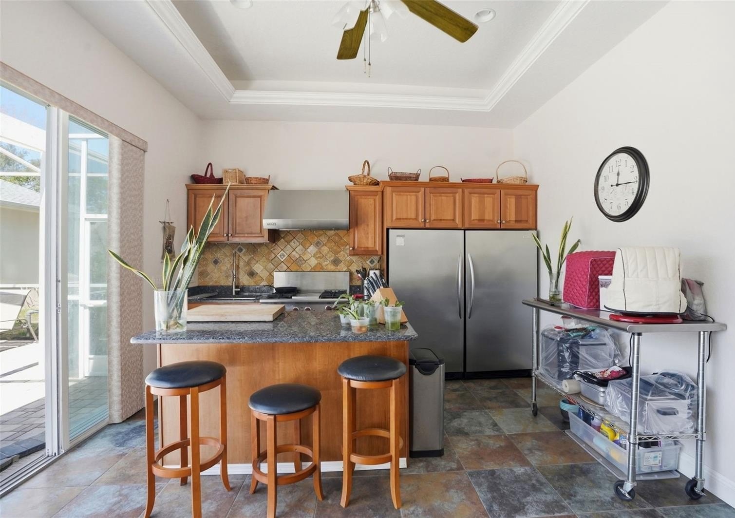 The large island kitchen has granite countertops, and all upgraded real wood cabinets with accent glass and pull out drawers for easy storage, stainless steel appliances with gas stove, beverage/wine refrigerator, and large breakfast bar for extra seating!! Breakfast nook and formal dining room!!