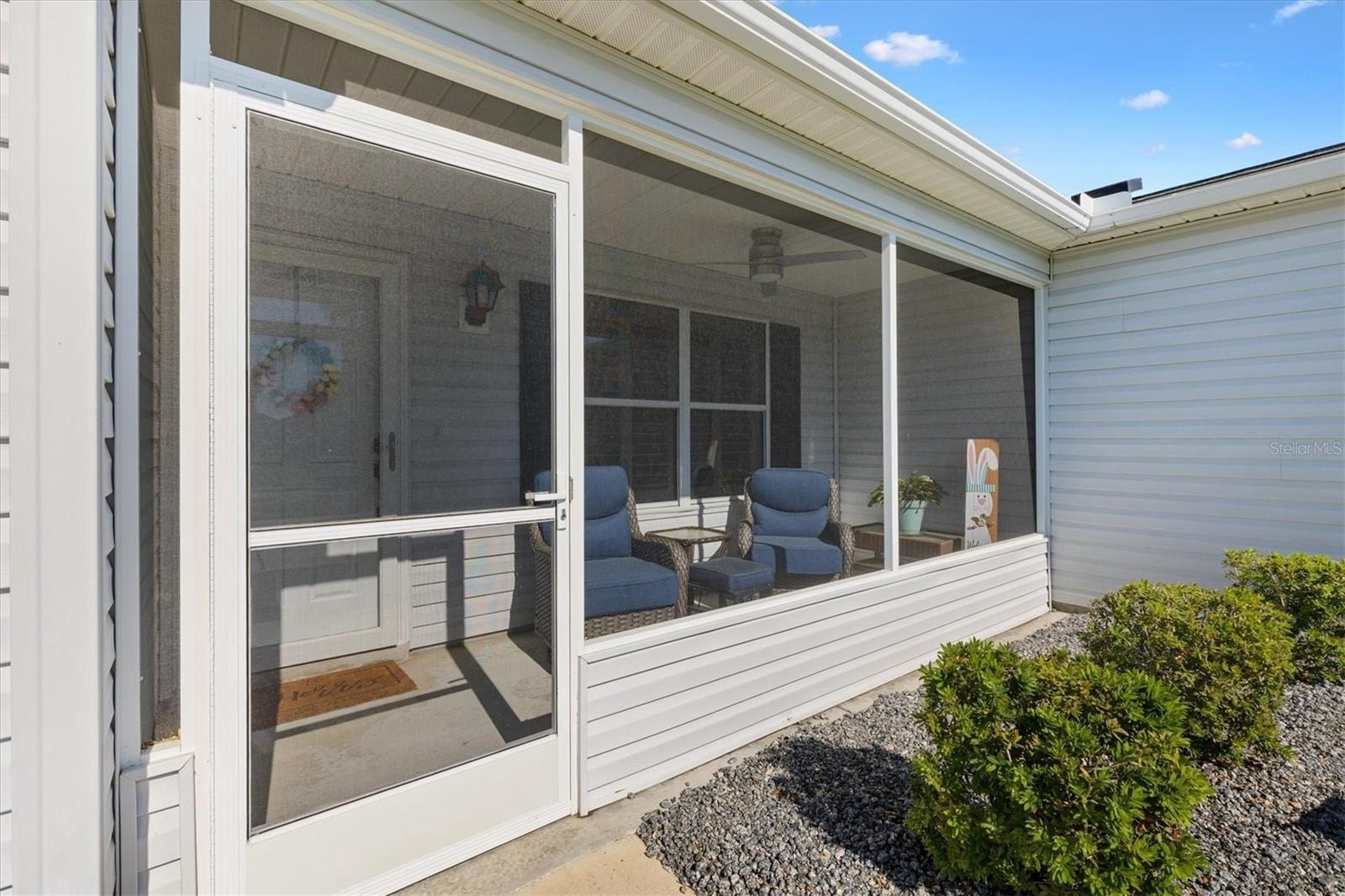 Indoor-outdoor living is elevated with a screened front porch (2023) and an expansive lanai featuring a dedicated mini-split system (2021) for year-round comfort. A retractable exterior awning enhances the outdoor space, creating a shaded, relaxing retreat.