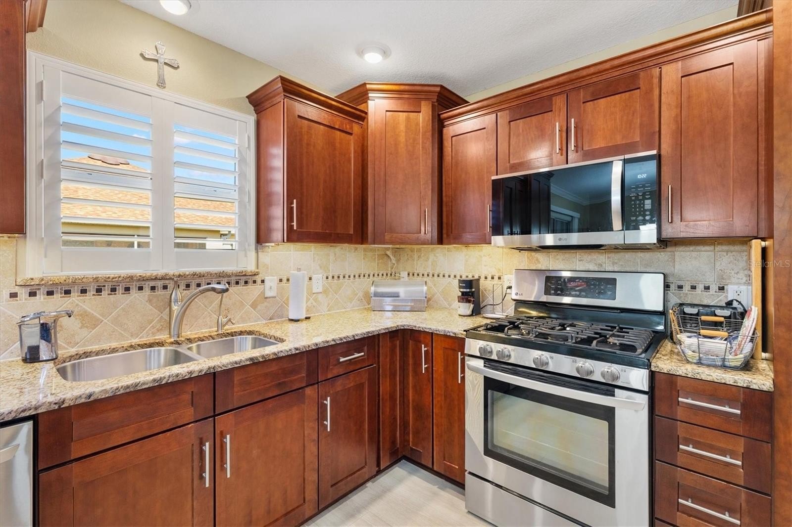 The kitchen is both stylish and functional, appointed with granite countertops, under-cabinet lighting, and a breakfast bar, perfect for casual dining or effortless entertaining.