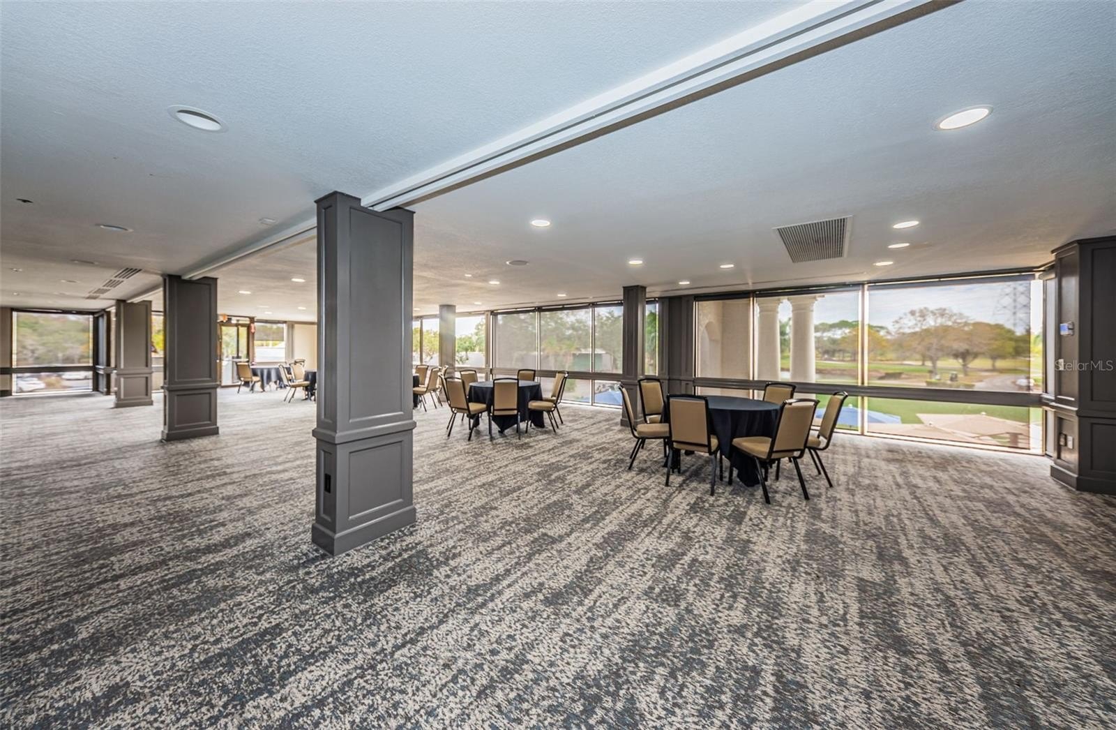 The master suite is impressively spacious, featuring three closets, including two walk-ins, providing ample storage. The abundant windows and sliding doors fill the living spaces with natural Florida sunlight, creating a warm and inviting atmosphere.