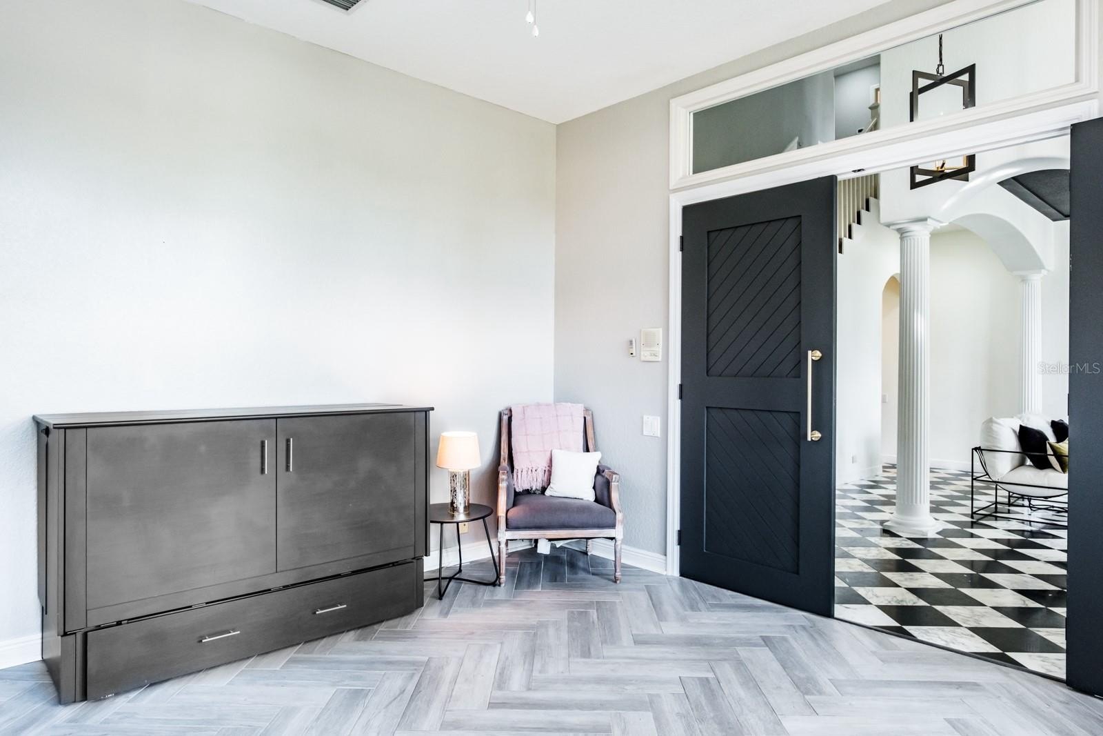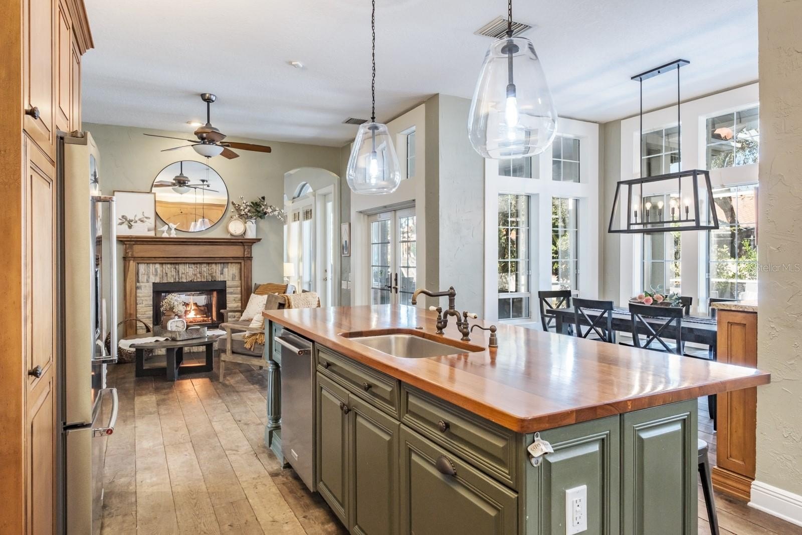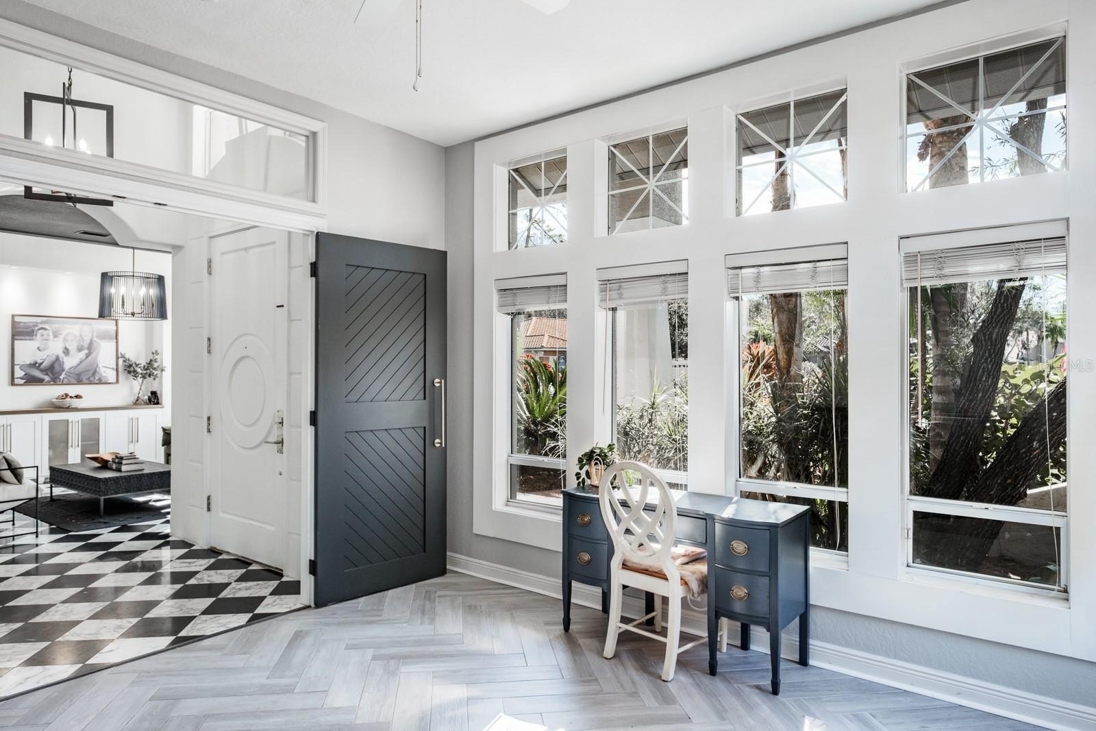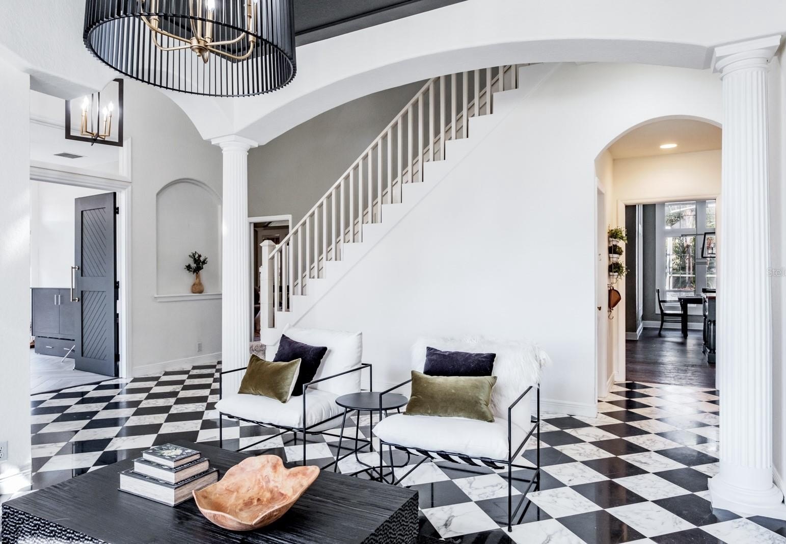 Exquisite Estate Home in the Prestigious Aberdeen Enclave of East Lake Woodlands...Located within the highly sought-after, gated community of East Lake Woodlands and the exclusive Aberdeen enclave, this beautifully appointed residence offers refined living in one of the area’s most desirable neighborhoods. Positioned on an oversized 0.33-acre cul-de-sac lot, this approximately 3,300-square-foot home blends timeless elegance, quality craftsmanship, and thoughtful design. The home welcomes you with a dramatic two-story foyer featuring a sweeping volute staircase with wood spindles. Elegant black and white Carrera marble harlequin tile flooring enhances the entry and formal dining room, while rich 8-inch distressed hickory flooring flows through the kitchen and family room. The spacious layout offers 4 bedrooms plus a dedicated study/den, 3 full bathrooms, and 1 half bath. Oversized upstairs bedrooms provide comfortable accommodations for family and guests. For added protection and efficiency, the home also features 12 newly installed impact windows across the front of the home and in all three upstairs bedrooms, providing enhanced storm protection, energy efficiency, and peace of mind. At the center of the home is a gourmet kitchen designed for both everyday living and entertaining. Features include granite countertops, a solid wood center island, custom Ash wood cabinetry, stainless steel appliances, and a Monogram four-burner gas range with griddle and vent hood. A large walk-in pantry and counter-height breakfast bar add convenience, while a stylish built-in mini bar with a wine cooler enhances the home’s entertaining appeal. A two-sided gas fireplace connects the kitchen and family room, creating a warm and inviting atmosphere.
