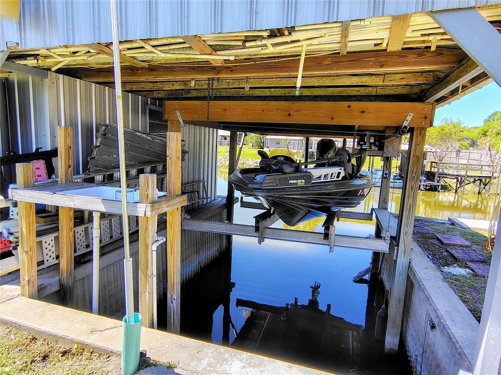 The property features 360 feet of seawall, much of which has been recently resurfaced, along with a private boathouse with an updated electric boat lift, providing direct access for boating and fishing just steps away. The home has a durable metal roof, and the Window World windows come with a lifetime warranty, adding efficiency and peace of mind. A new sprinkler pump keeps the mature loquat, avocado, and citrus trees, along with the yard, looking their best.