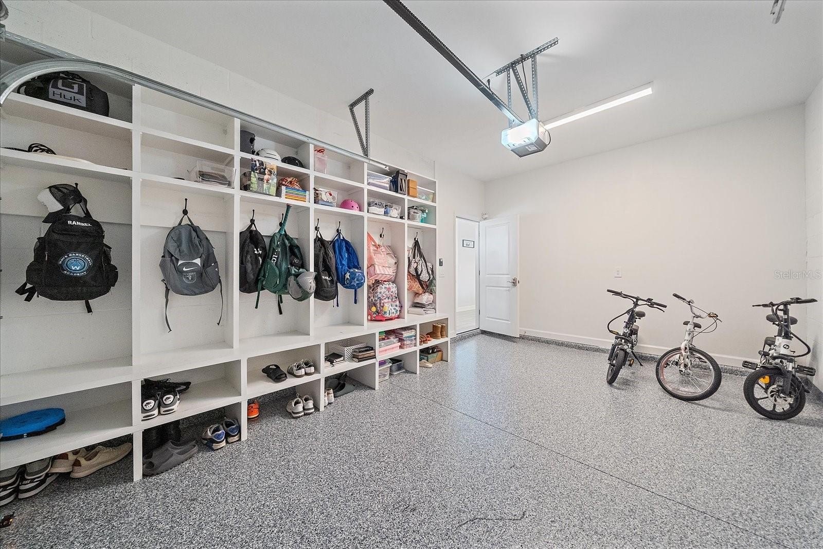 The main level features a private guest suite with a dual-access bathroom, providing flexibility for visitors or easy access from the pool area. A former sitting room has been thoughtfully converted into a large, functional home office. The third-car garage is enhanced with epoxy flooring and a custom mudroom-style locker system, offering excellent storage and organization.