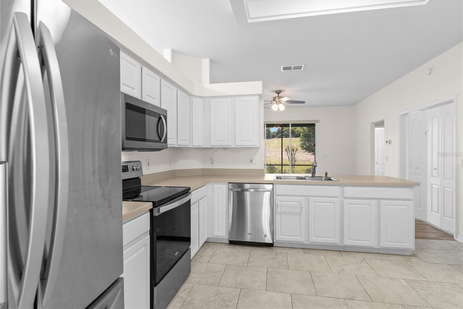 The kitchen offers stainless steel appliances purchased approximately two years ago, providing both style and functionality.