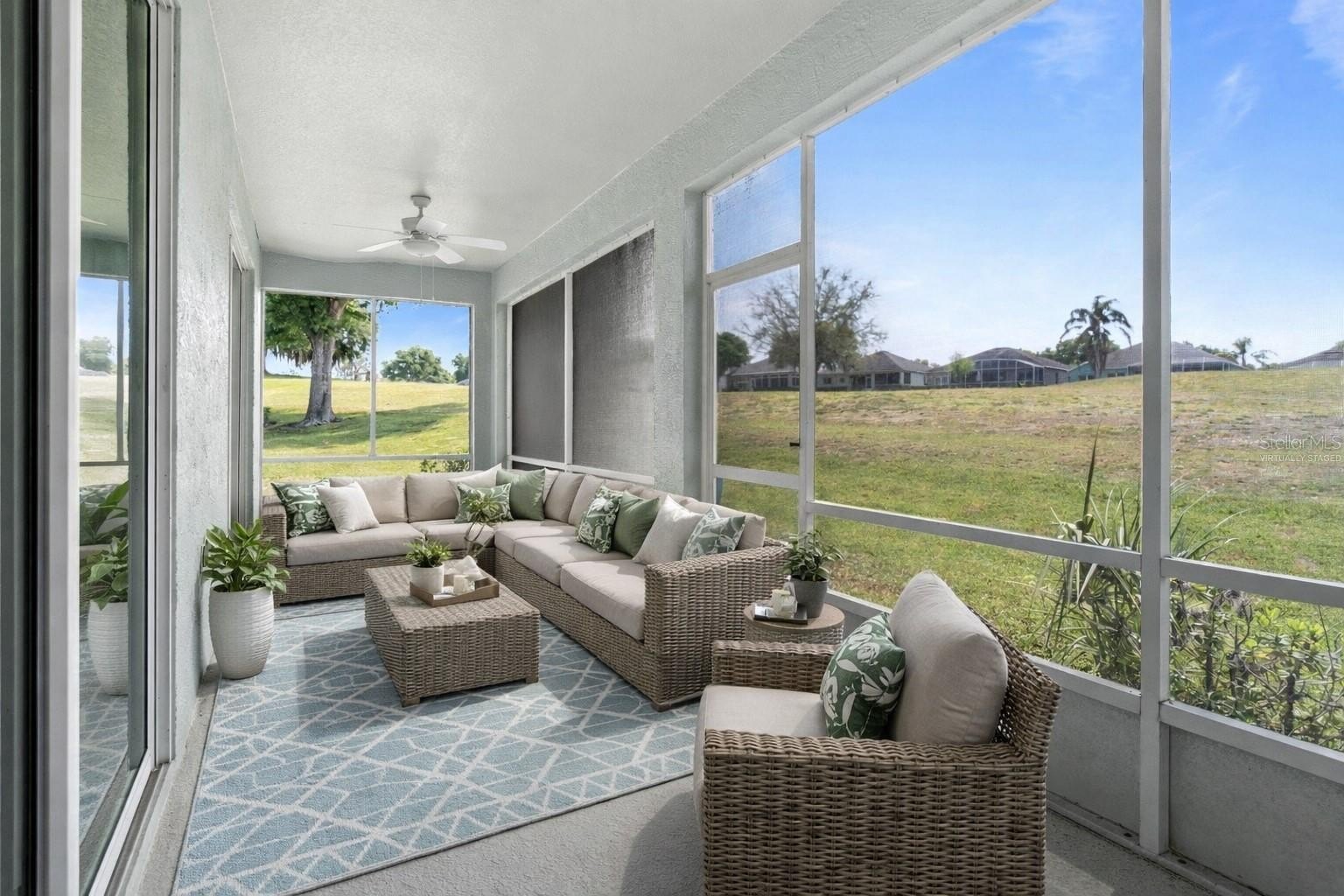 Additional improvements throughout the home include a whole-house surge protector installed in 2025, a new fan/light and switch on the lanai, and UV-resistant screens on the lanai. The home has also been recently rescreened, with approximately 90% of the windows on the east side and 80% on the west side updated, enhancing comfort and durability.