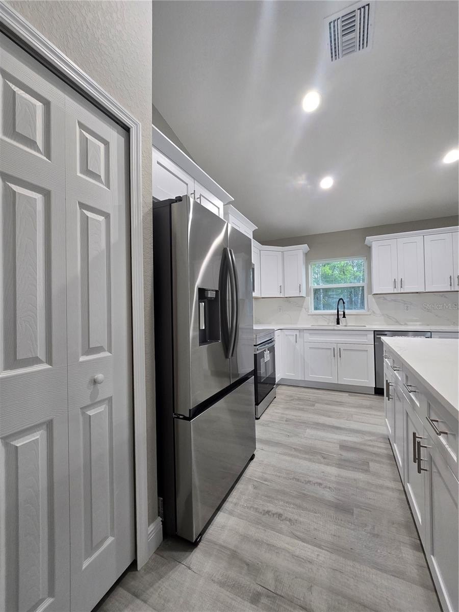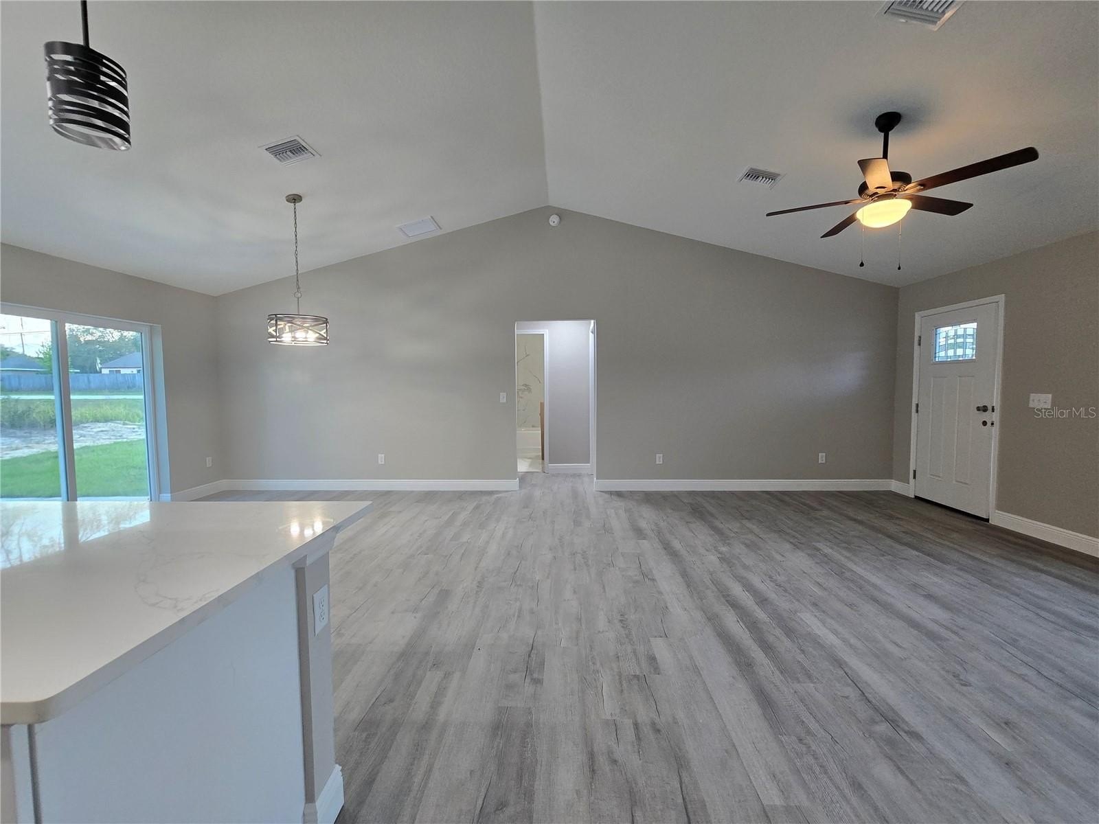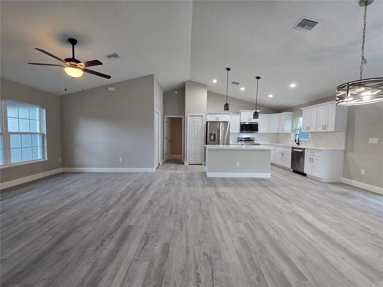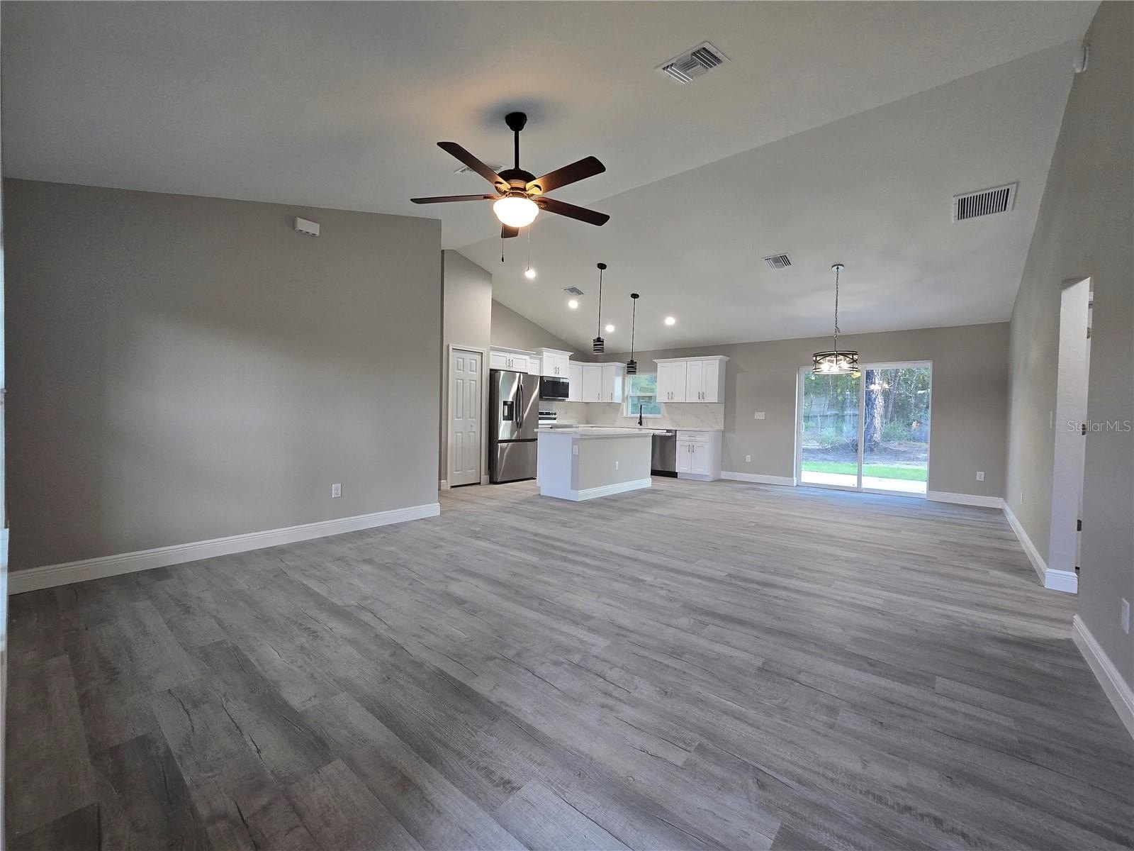 Come see this wonderfully styled, 3 bedroom, 2 bath, 2 car garage on a OVERSIZED .25 AC CORNER LOT in the very popular Silver Springs Shores area. This home features a split plan, high ceilings & QUARTZ STONE counters in the KITCHEN, BATHROOMS & WINDOW LEDGES! When you step in side, you will notice the open design with tall ceilings and a split floor plan. The primary bedroom features an oversized closet & en suite bathroom with A FULLY TILED, EZ ENTRY SHOWER & linen closet. The kitchen, has whisper quiet drawers & UPGRADED cabinets with stylish knobs. Gorgeous sink with a beautiful open view. DELUXE SMART APPLIANCE PACKAGE INCLUDES Stainless steel Fridge, Dishwasher, Stove & Microwave comes with the home. A beautifully patterned Quartz counter island comes with room for chairs. Nearby, you have access to the laundry room & garage via a handy pocket door. Across the house, the secondary rooms share the bathroom and will have good space for a full size bedroom set, office, or a game room. The choices are endless! Ample closet space has been supplied as well for all of their storage needs. The .25 acre CORNER LOT gives you plenty of room for all of your toys! NOT IN AN HOA so you are free to build a fence, add a pool, do what you want, how you want! On a well and septic system so NO UTILITY BILLS is also a great plus! If you install back up power in preparation for any possible outage, you will still have use of water and sewer as long as you have electric! Close enough to give you access to Belleview, Summerfield, The Villages, The Interstate and beyond. Less than 10 min to Wal-Mart, Publix, Aldi & Save a Lot, The post office, 3 auto parts stores & car washes as well as many food & medical offices nearby for ease. A short drive in either direction will lead to Ocala's downtown square or to our famous Lake Weir, where you can boat, kayak, jet ski, or enjoy a meal on the lake over looking the sunset. First Time Homebuyer & Veteran friendly! Almost completed, you can be in QUICKLY!