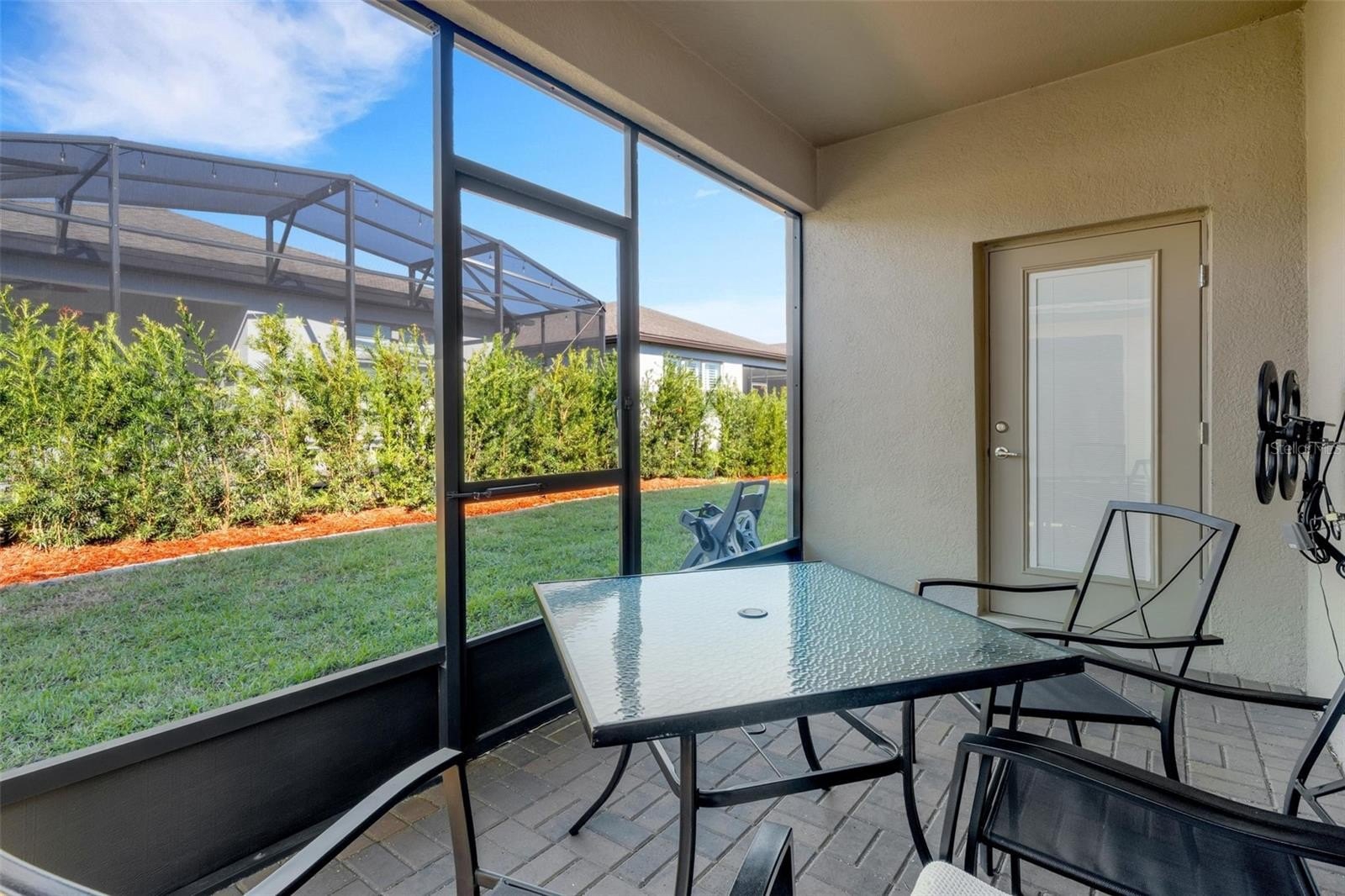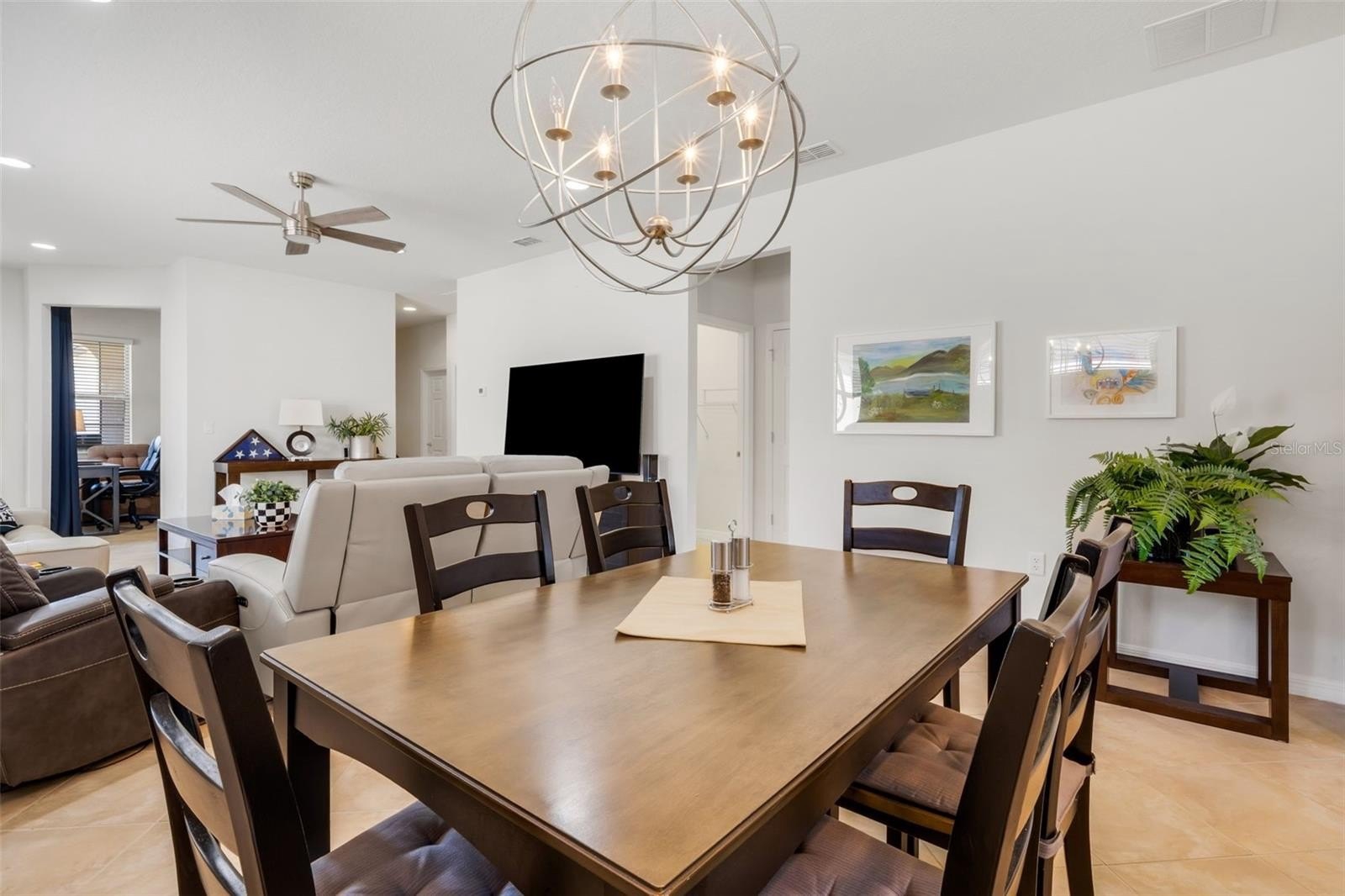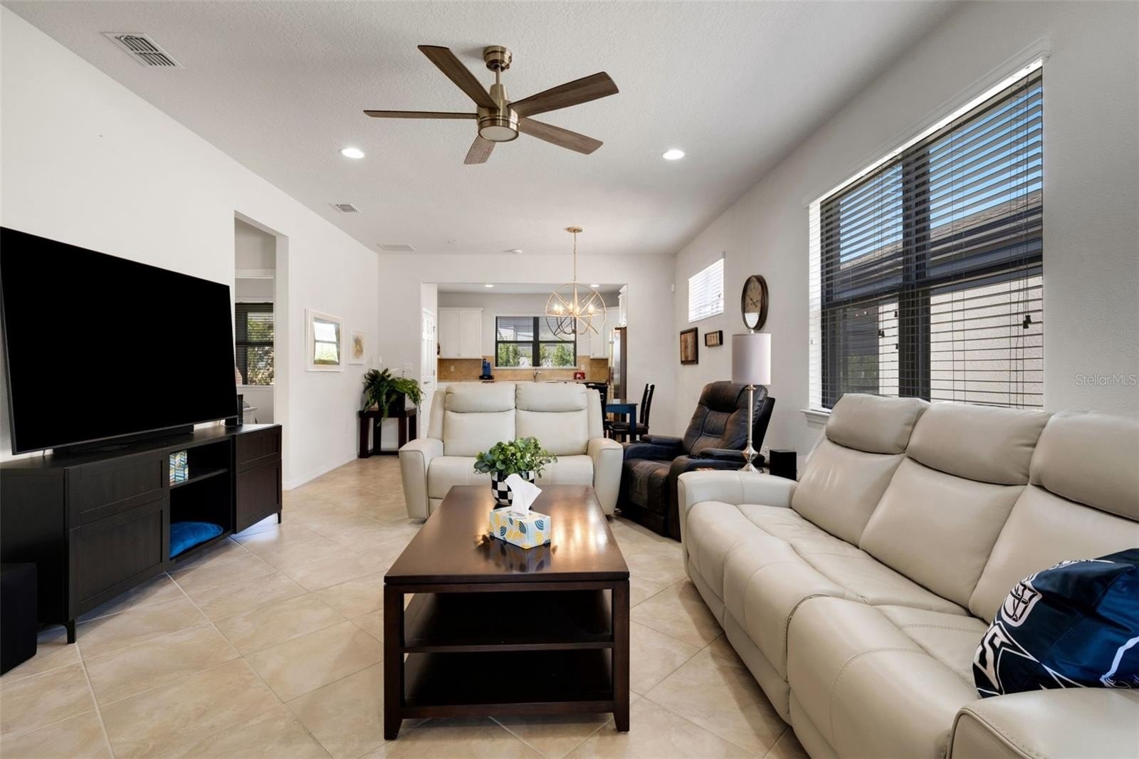 Located in the desirable RESORT-STYLE 55+ community of Del Webb Orlando, this Taft Street floor plan features 2 bedrooms, plus a den and 2 bathrooms. Enter the home through the beautiful glass front door into the open floor plan living space boasting porcelain tile laid on the diagonal. The living space flows through the dining space into the large kitchen with granite countertops, tiled backsplash, stainless steel appliances including a NATURAL GAS STOVE, a large pantry, and a great entertaining island with extra storage. The covered, screened lanai is located directly off the kitchen. The study/den is located in the front of the home, together with the guest bedroom and bathroom. The laundry room is conveniently located near the master bedroom. Additional upgrades include updated lighting, a widened front porch, concrete landscaping and NEW SOD. The $282 monthly Del Webb HOA fee includes exclusive access to resident-owned 30,000+ SF Montecito clubhouse and amenities. DEL WEBB ORLANDO is a 55+ community with a tavern, indoor walking track, fitness center, indoor and outdoor pools and spas with locker rooms and showers, billiards, ping pong, craft room, and a ballroom for special events. Outdoor activities include pickleball, tennis, bocce, basketball, shuffleboard, community gardening center, an outdoor amphitheater, large brick fire pit and large screened-in gazebo over the water. The $425 semi-annual HOA fee provides 24x7 staffed security gate and master association-owned private road maintenance. Adjacent to recently renovated 18-hole White Heron Golf Club. Miles of biking and walking trails within Ridgewood Lakes gated community. Located conveniently to shopping at Posner Park (4 miles), Disney World, Universal Studios, Orlando & Central FL entertainment nearby. Easy access to I-4, medical facilities, airports & Sunrail Station. Advent Health hospital is 3 miles away.