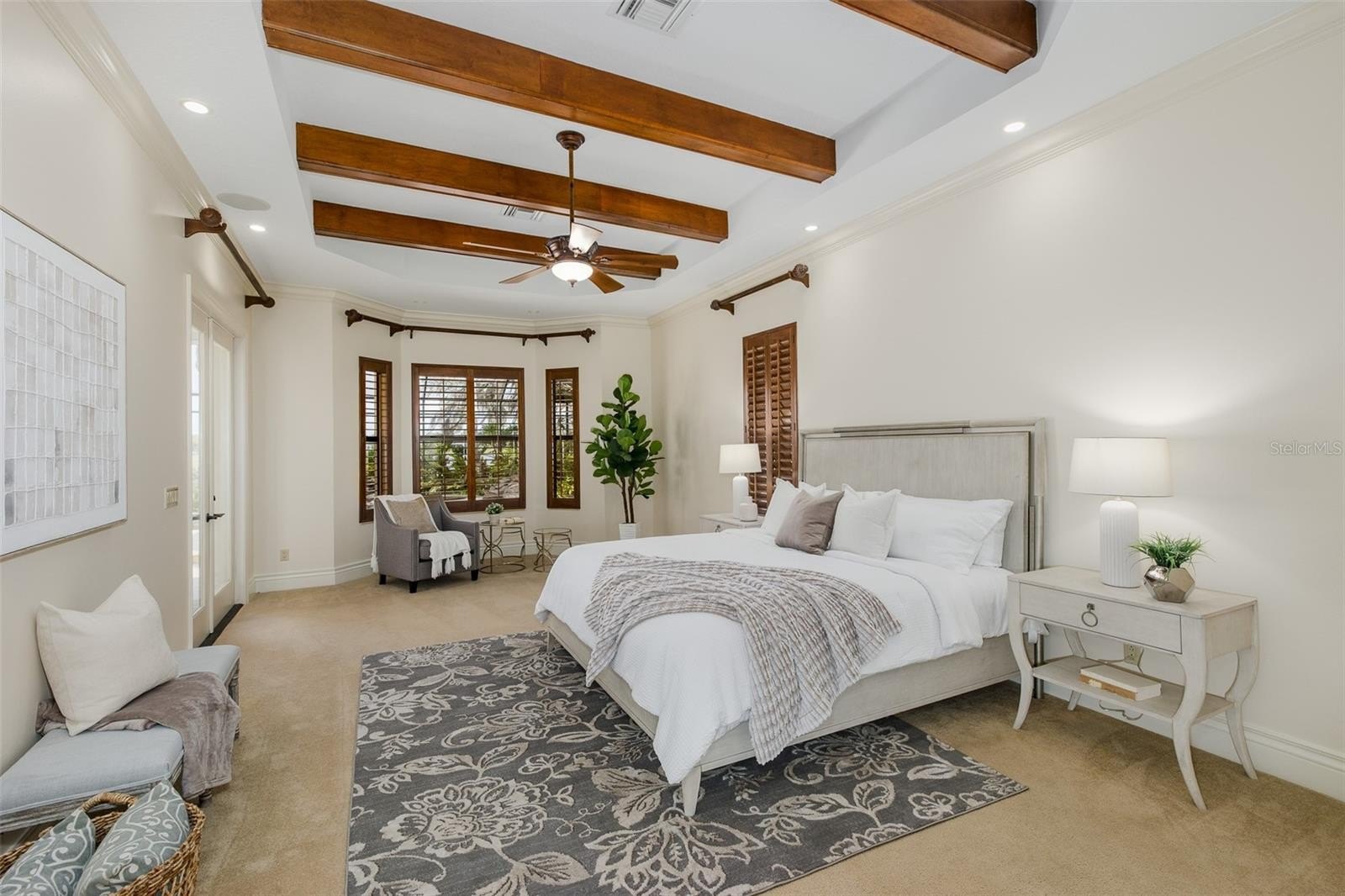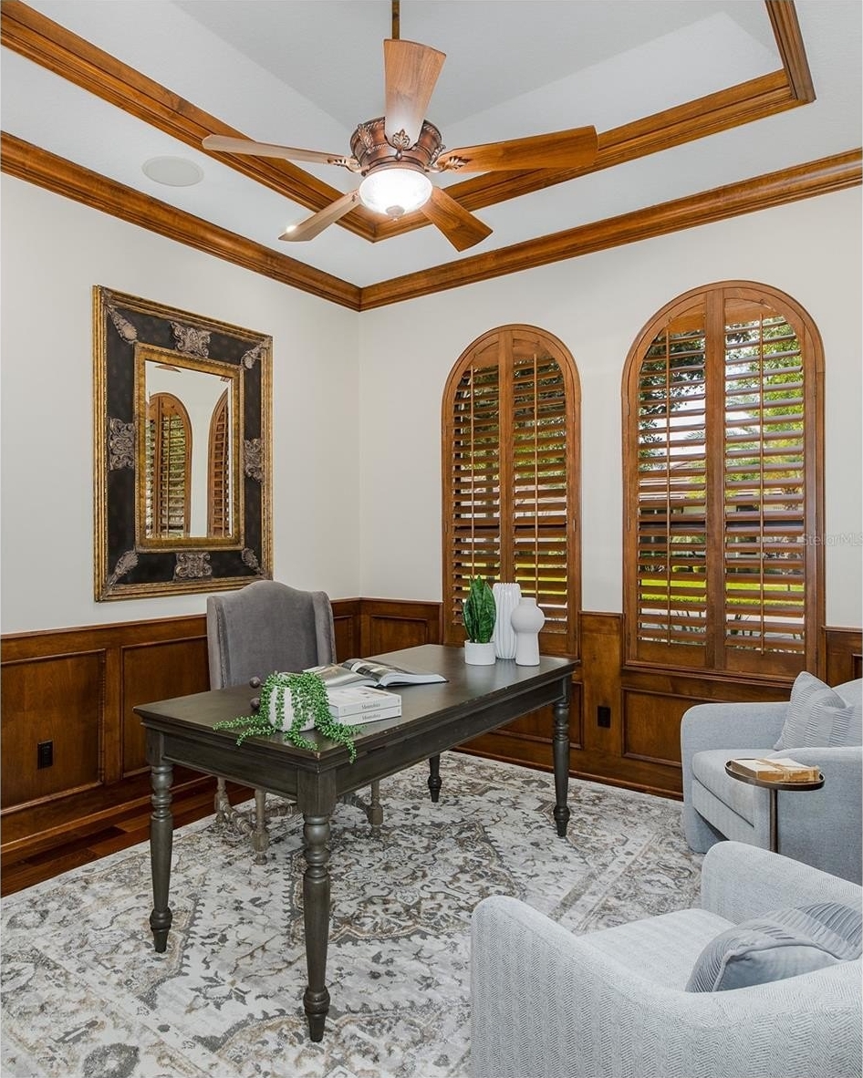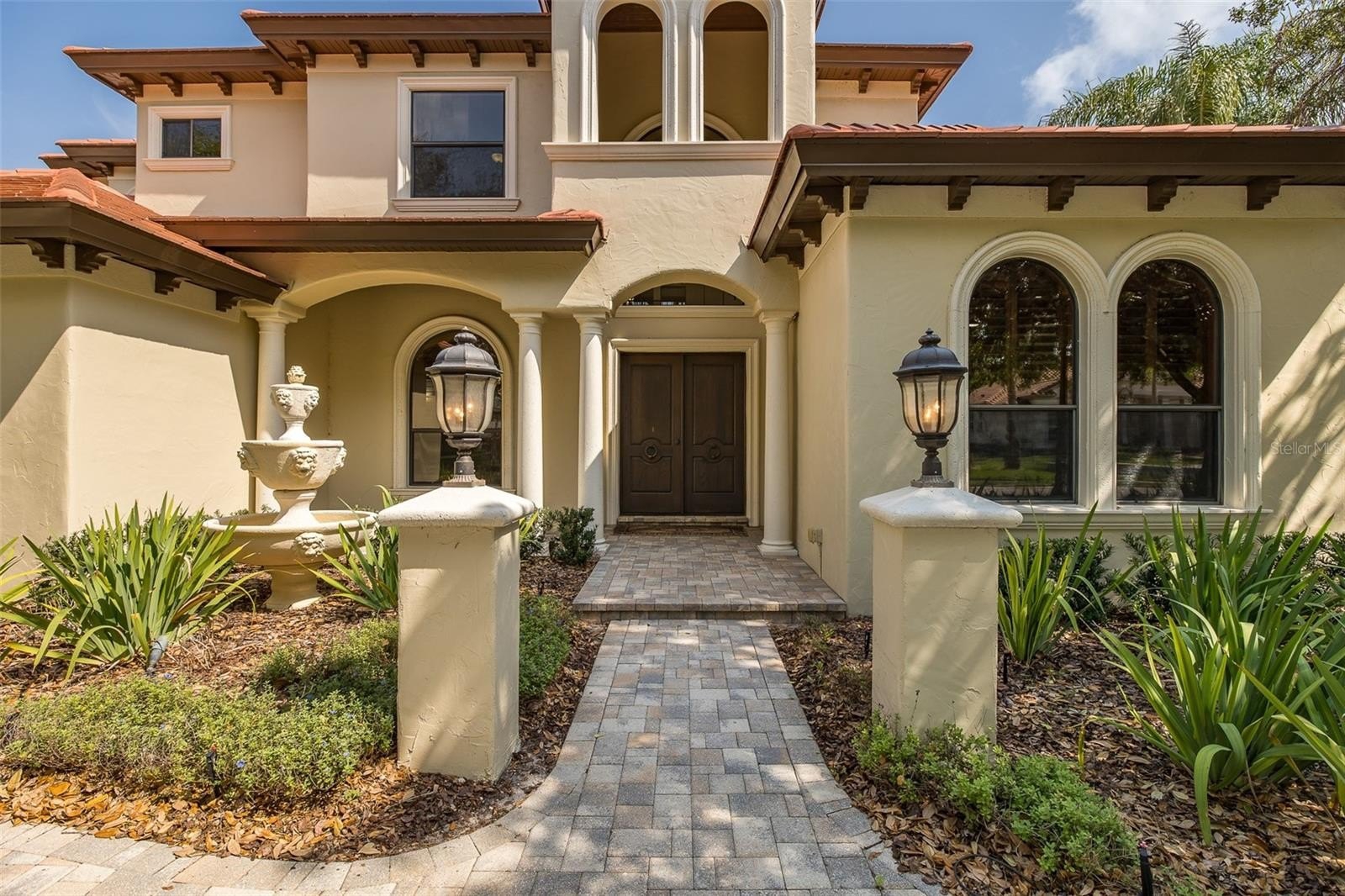 One or more photo(s) has been virtually staged. Welcome to Champions Club — Where Luxury Meets an Unrivaled Setting Nestled on one of the most coveted lots in the desirable Champions Club community, this breathtaking custom Campagna home offers a rare combination of water and golf course views along the prestigious Fox Hollow Golf Course. Spanning an impressive 4,657 square feet, this architectural masterpiece delivers 4 bedrooms, 3 full baths, 2 half baths, a private study, bonus/game room, and an upstairs loft — a thoughtfully designed home that effortlessly balances grand entertaining with everyday comfort. Step inside and be immediately captivated by the formal living room’s soaring ceilings, custom gas fireplace, and stunning travertine flooring. The formal dining room offers an elegant setting for entertaining, complete with an adjacent butler’s pantry. The custom gourmet kitchen is a chef’s dream, equipped with top-of-the-line appliances, a custom hood, 6-burner gas cooktop, and a spacious walk-in pantry. A sunny breakfast nook overlooks the sparkling pool — the perfect spot to start your morning. The warm and inviting family room impresses with a custom coffered ceiling, gas fireplace, and rich hardwood flooring, creating the ideal gathering space for family and friends. The bonus/game room, adorned with gorgeous wood accents, is the ultimate hangout destination. The first-floor primary suite is a true retreat, offering a private sitting area with stunning pool and golf course views. The spa-inspired en suite bath pampers with his and her vanities, a custom shower, a relaxing soaking tub, and two spacious walk-in closets. A private study located just off the primary suite provides a seamless transition to a dedicated home office. A half bath and a roomy laundry room complete the first floor. A breathtaking wrought iron and wood staircase leads to the second floor, where three oversized bedrooms — each with walk-in closets — await. One features its own private en suite bath, while the other two share a well-appointed Jack & Jill bathroom. An upstairs loft with a wall of custom bookcases serves as the perfect reading nook or second office. Step outside onto the rooftop balcony and take in the sweeping views — the ideal place to unwind at the end of the day. Additional highlights include a newer HVAC system, solid wood doors throughout, exceptional custom millwork and architectural detailing, and a BRAND NEW ROOF. This extraordinary home sits on one of the most premium lots in all of Champions Club, offering unobstructed water and golf course views that simply cannot be replicated. Champions Club is a Premier Golf Course Community, Conveniently Located Close to Many Shops, Restaurants, Medical Facilities, Short Drive to Many Local Beaches, Short Drive to Tampa International Airport, Clearwater/St. Pete Airport & Much More! Zoned for Excellent Trinity Schools! ~ Trinity Elementary * Seven Springs Middle * J.W. Mitchell This is not just a home — it is a lifestyle!