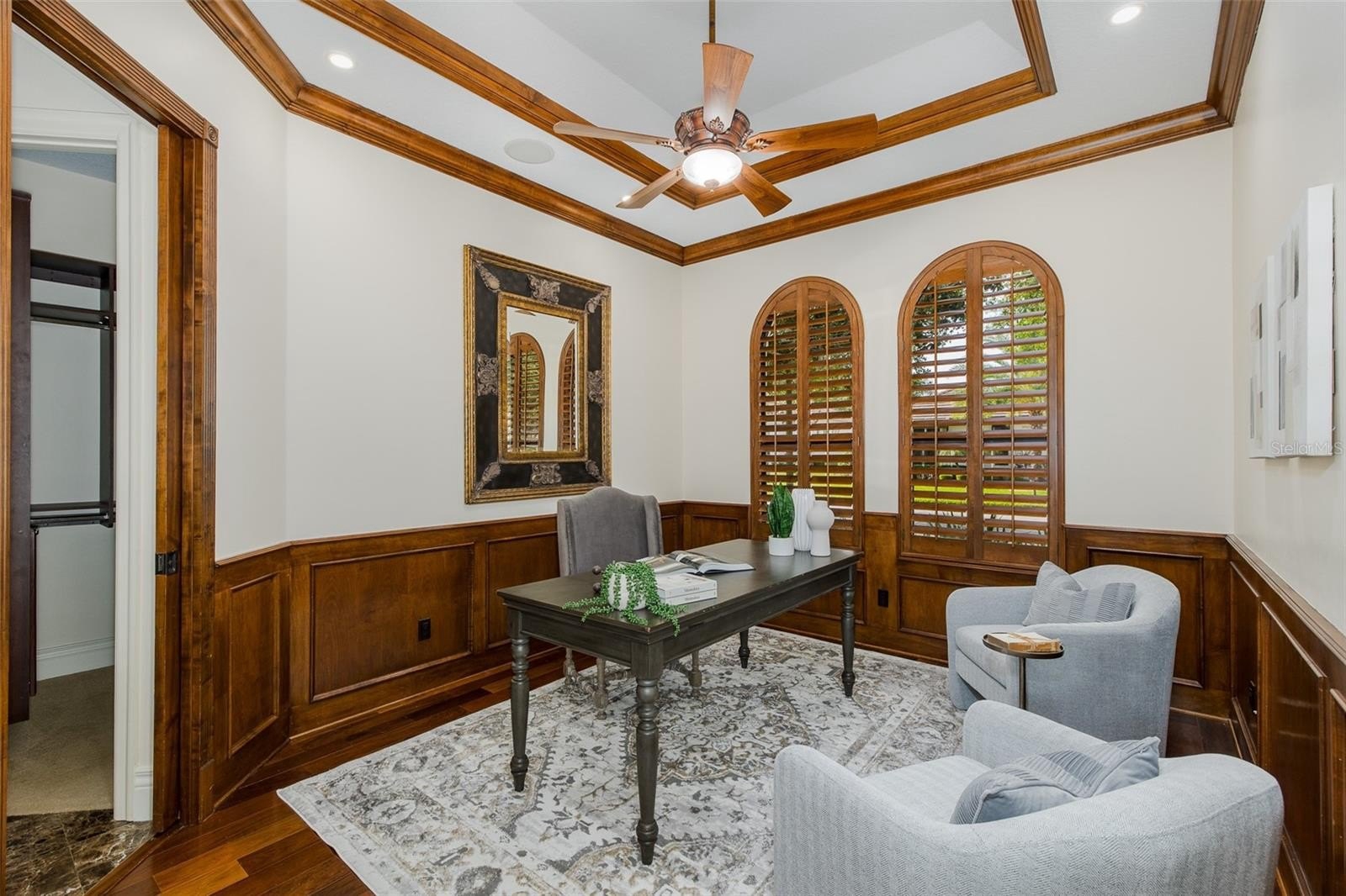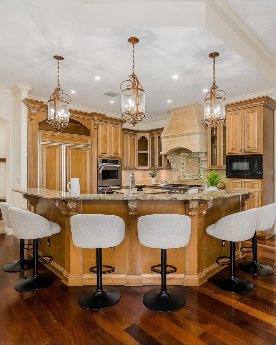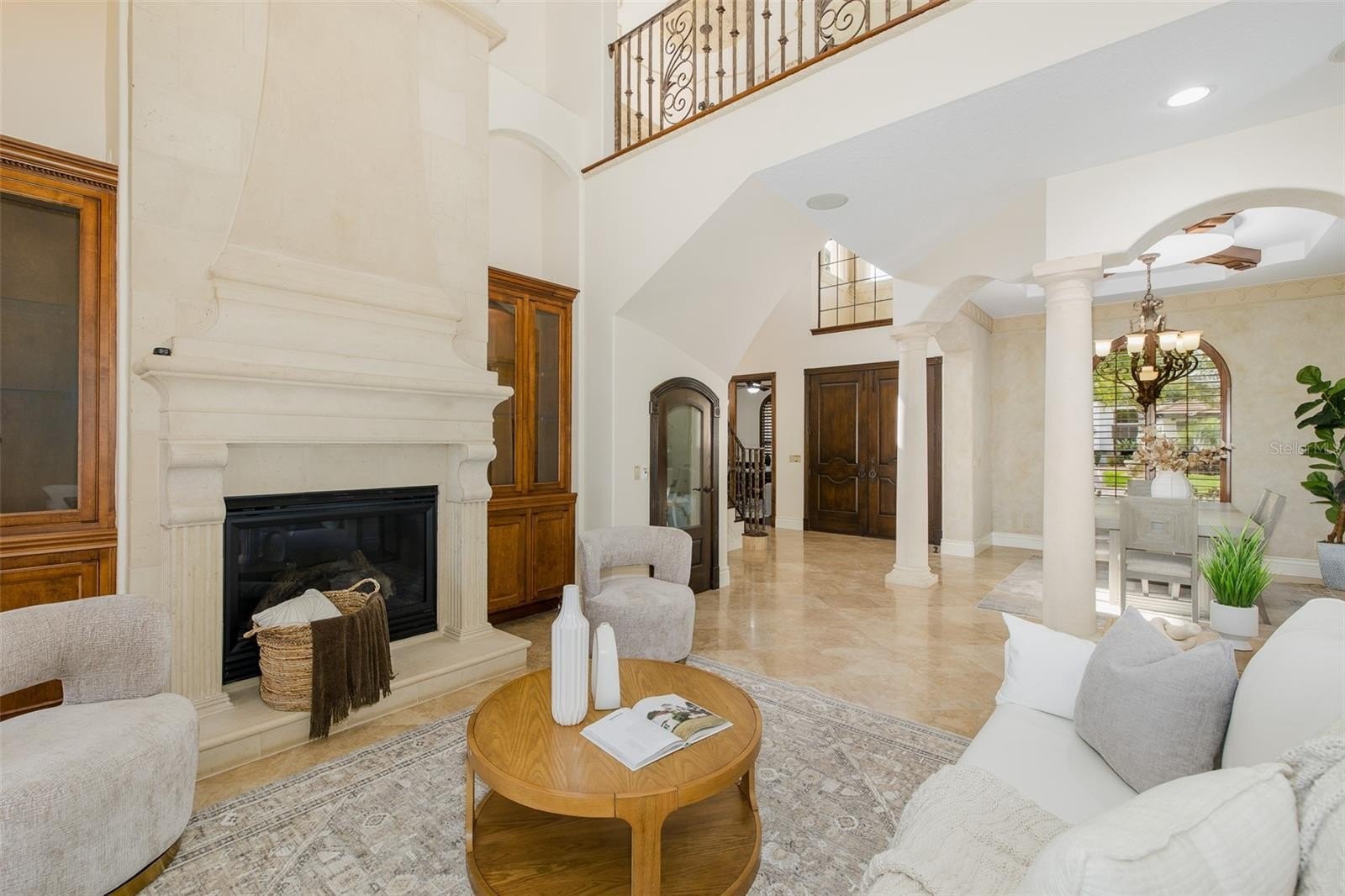 One or more photo(s) has been virtually staged. Welcome to Champions Club — Where Luxury Meets an Unrivaled Setting Nestled on one of the most coveted lots in the desirable Champions Club community, this breathtaking custom Campagna home offers a rare combination of water and golf course views along the prestigious Fox Hollow Golf Course. Spanning an impressive 4,657 square feet, this architectural masterpiece delivers 4 bedrooms, 3 full baths, 2 half baths, a private study, bonus/game room, and an upstairs loft — a thoughtfully designed home that effortlessly balances grand entertaining with everyday comfort. Step inside and be immediately captivated by the formal living room’s soaring ceilings, custom gas fireplace, and stunning travertine flooring. The formal dining room offers an elegant setting for entertaining, complete with an adjacent butler’s pantry. The custom gourmet kitchen is a chef’s dream, equipped with top-of-the-line appliances, a custom hood, 6-burner gas cooktop, and a spacious walk-in pantry. A sunny breakfast nook overlooks the sparkling pool — the perfect spot to start your morning. The warm and inviting family room impresses with a custom coffered ceiling, gas fireplace, and rich hardwood flooring, creating the ideal gathering space for family and friends. The bonus/game room, adorned with gorgeous wood accents, is the ultimate hangout destination. The first-floor primary suite is a true retreat, offering a private sitting area with stunning pool and golf course views. The spa-inspired en suite bath pampers with his and her vanities, a custom shower, a relaxing soaking tub, and two spacious walk-in closets. A private study located just off the primary suite provides a seamless transition to a dedicated home office. A half bath and a roomy laundry room complete the first floor. A breathtaking wrought iron and wood staircase leads to the second floor, where three oversized bedrooms — each with walk-in closets — await. One features its own private en suite bath, while the other two share a well-appointed Jack & Jill bathroom. An upstairs loft with a wall of custom bookcases serves as the perfect reading nook or second office. Step outside onto the rooftop balcony and take in the sweeping views — the ideal place to unwind at the end of the day. Additional highlights include a newer HVAC system, solid wood doors throughout, exceptional custom millwork and architectural detailing, and a BRAND NEW ROOF. This extraordinary home sits on one of the most premium lots in all of Champions Club, offering unobstructed water and golf course views that simply cannot be replicated. Champions Club is a Premier Golf Course Community, Conveniently Located Close to Many Shops, Restaurants, Medical Facilities, Short Drive to Many Local Beaches, Short Drive to Tampa International Airport, Clearwater/St. Pete Airport & Much More! Zoned for Excellent Trinity Schools! ~ Trinity Elementary * Seven Springs Middle * J.W. Mitchell This is not just a home — it is a lifestyle!