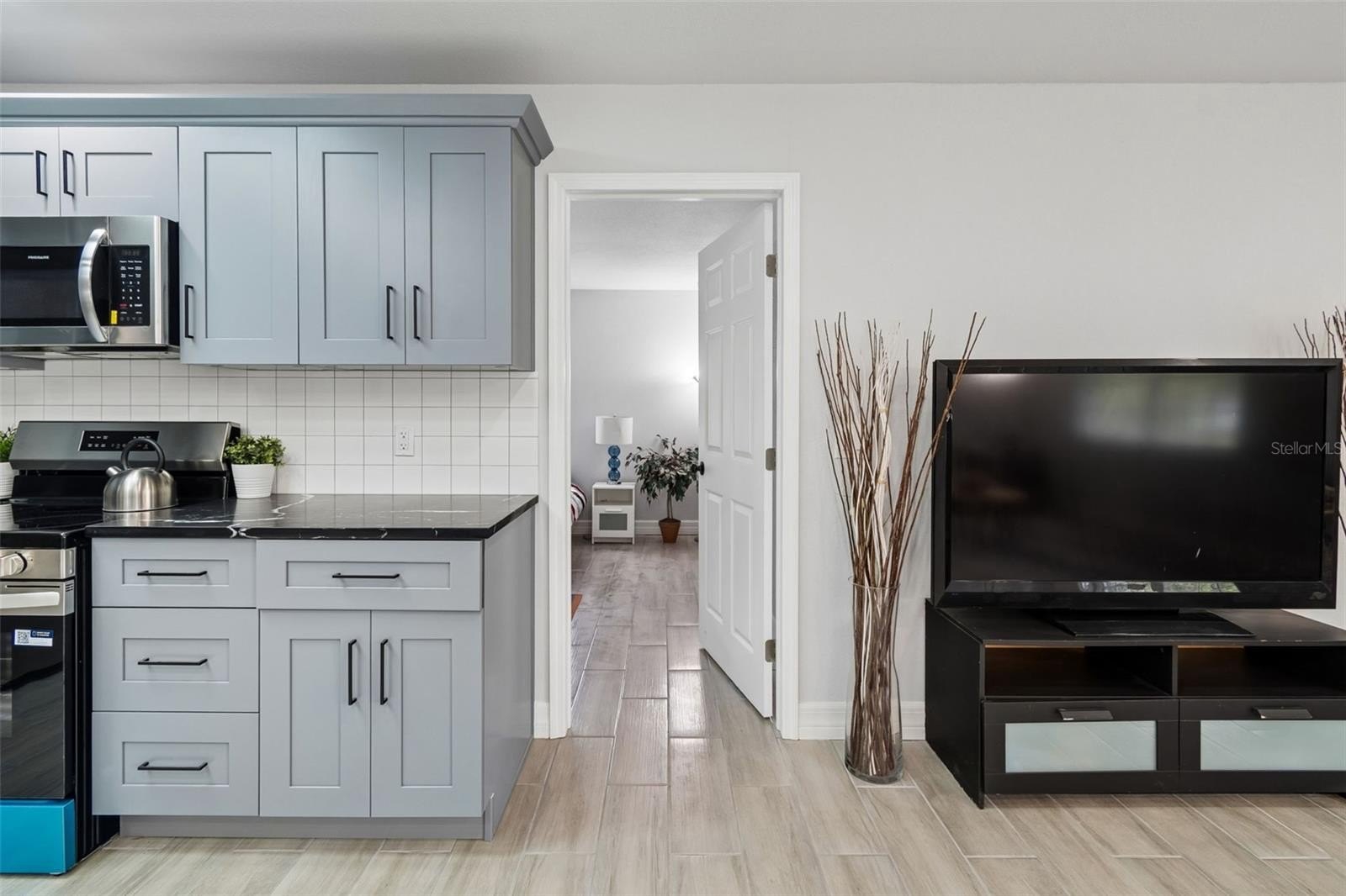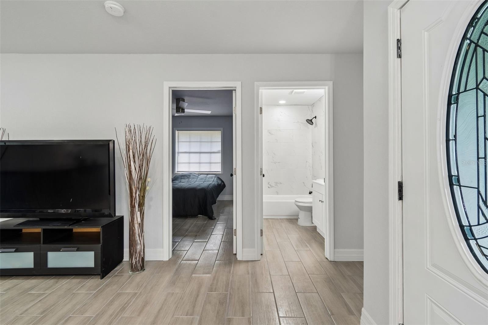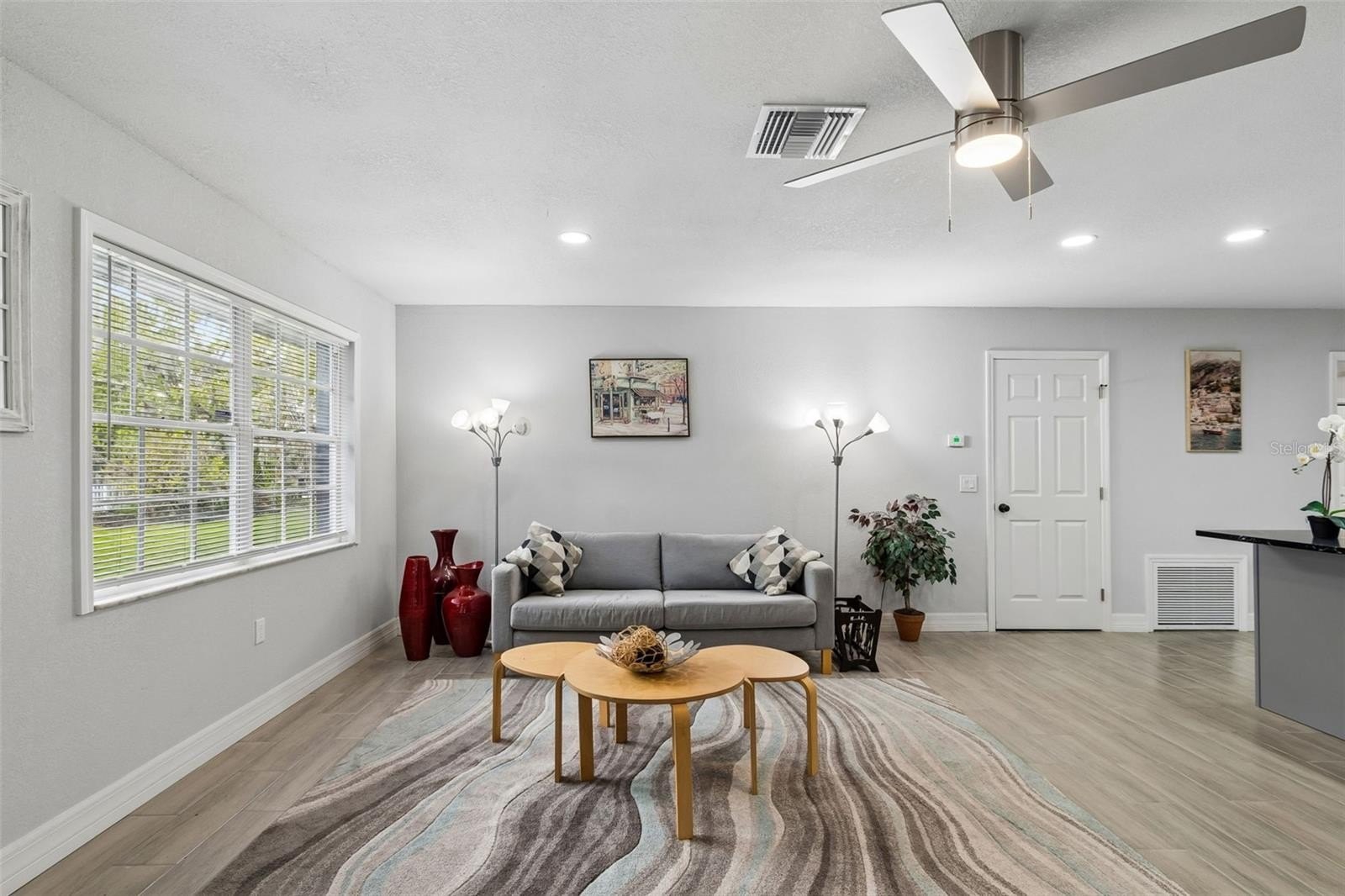 Inside, everything is brand new—featuring a stylish kitchen with soft-close cabinetry, sleek quartz countertops, and stainless steel appliances. Both bathrooms have been beautifully updated with new vanities and custom tile work, while the entire home showcases fresh drywall, doors, paint, and durable tile flooring throughout. Major systems—including the roof, central A/C, and water heater—have all been replaced, giving you peace of mind for years to come.