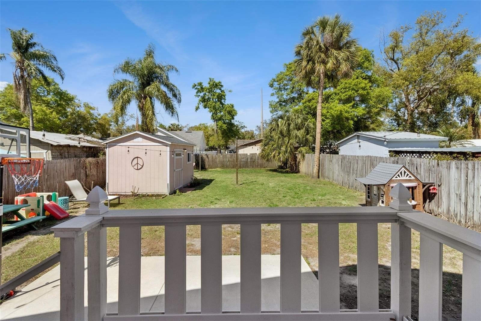 The wood-fenced backyard offers private outdoor space for relaxing, gardening or entertaining, with a storage shed and a parking pad alongside the 2-space carport. The courtyard adds additional outdoor living area on the south-facing lot.