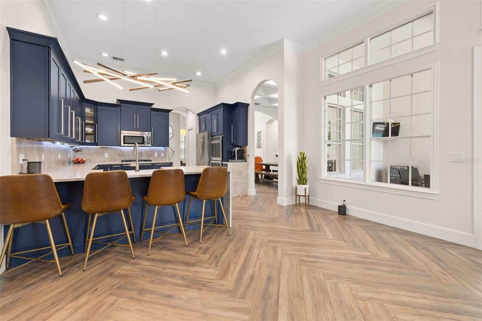 Nestled within the highly acclaimed guard-gated community of Keene’s Pointe, this completely remodeled Windermere home offers a 4-bedroom, 3-bathroom estate that showcases timeless architectural details, curated modern finishes, and a seamless indoor-outdoor luxury lifestyle. Step inside to discover a light-filled open layout with tall coffered ceilings, custom-laid wood tile flooring, formal dining, family room, and separate sitting area, all anchored by a gourmet chef’s kitchen featuring quartz countertops, premium stainless steel appliances, and custom cabinetry—effortlessly flowing into expansive living and dining spaces ideal for both everyday comfort and refined entertaining. The luxurious primary suite offers a tranquil retreat with a sitting area, a spa-inspired en-suite bath, and a spacious walk-in closet. 2 of the additional bedrooms are split from the main suite, providing comfort and flexibility with a jack-n-jill bathroom. While a separate 4th bedroom is set apart from the others and can be used as a guest suite or office, it's in a perfect space for remote work or study. Outside, your private oasis awaits—a covered lanai overlooks a sparkling pool and lushly landscaped backyard, creating a serene setting for alfresco dining or lounging under the Florida sun. This residence is also zoned for A-rated schools, within minutes of Windermere’s charming shops, fine dining, and world-renowned attractions. This exceptional, unfurnished home invites you to experience the very best of Central Florida living.