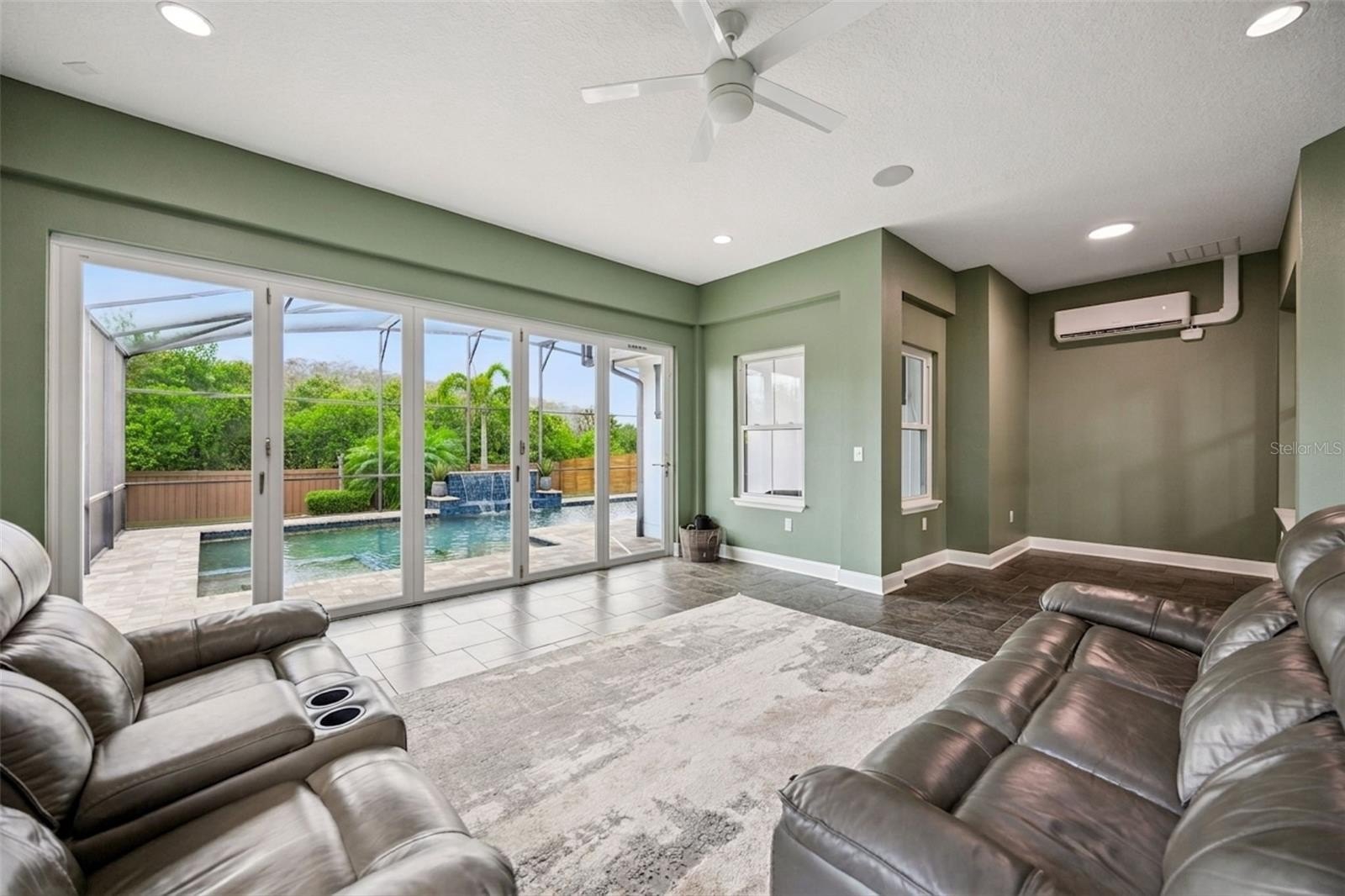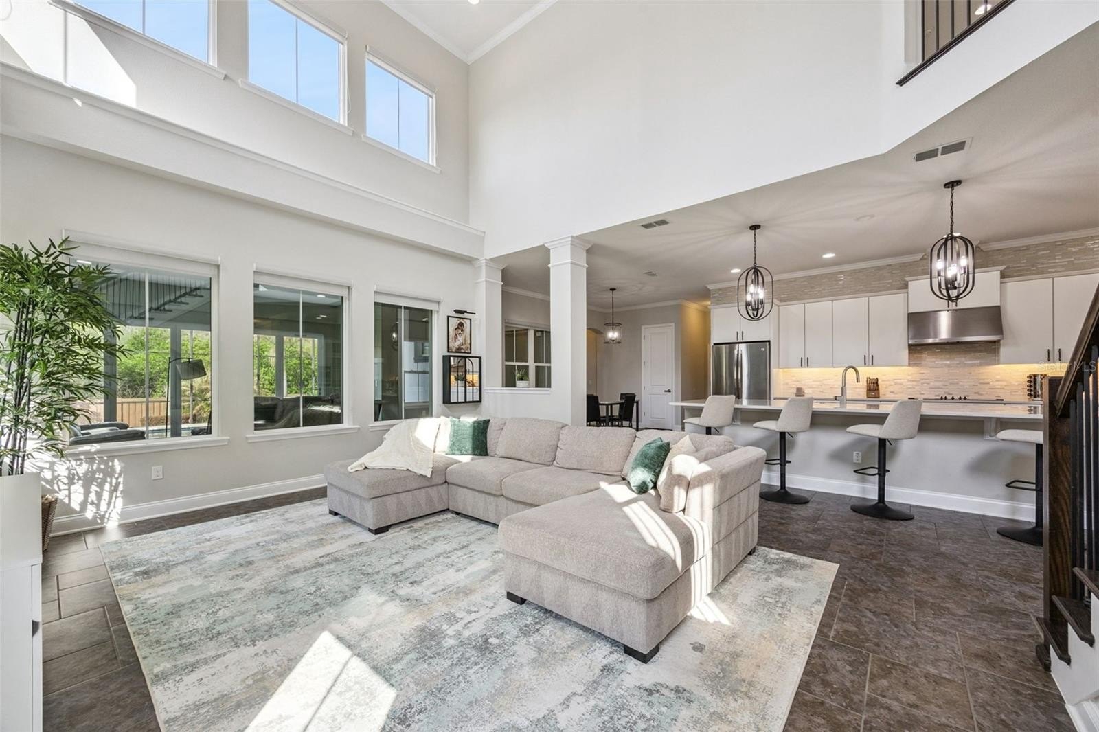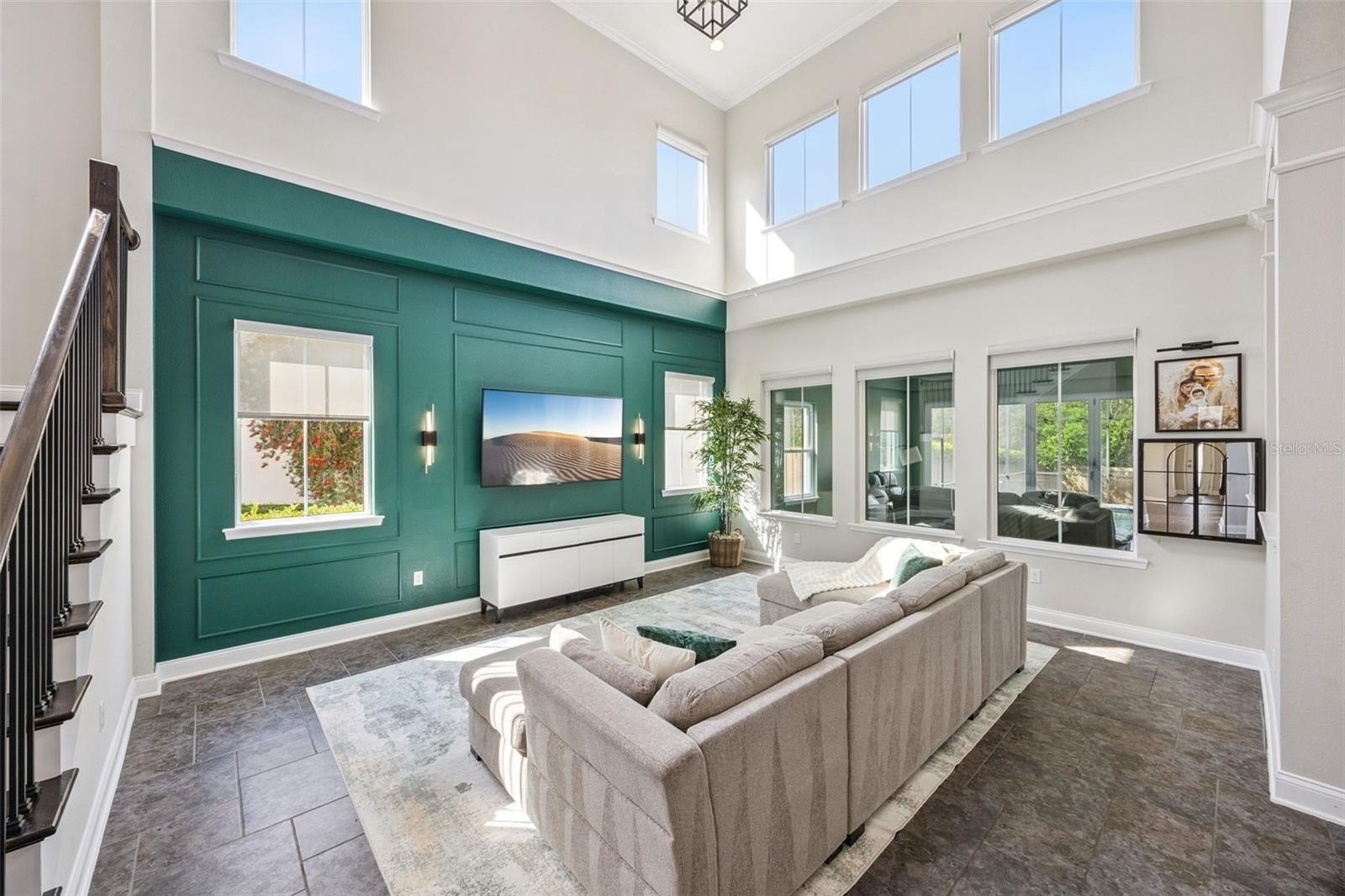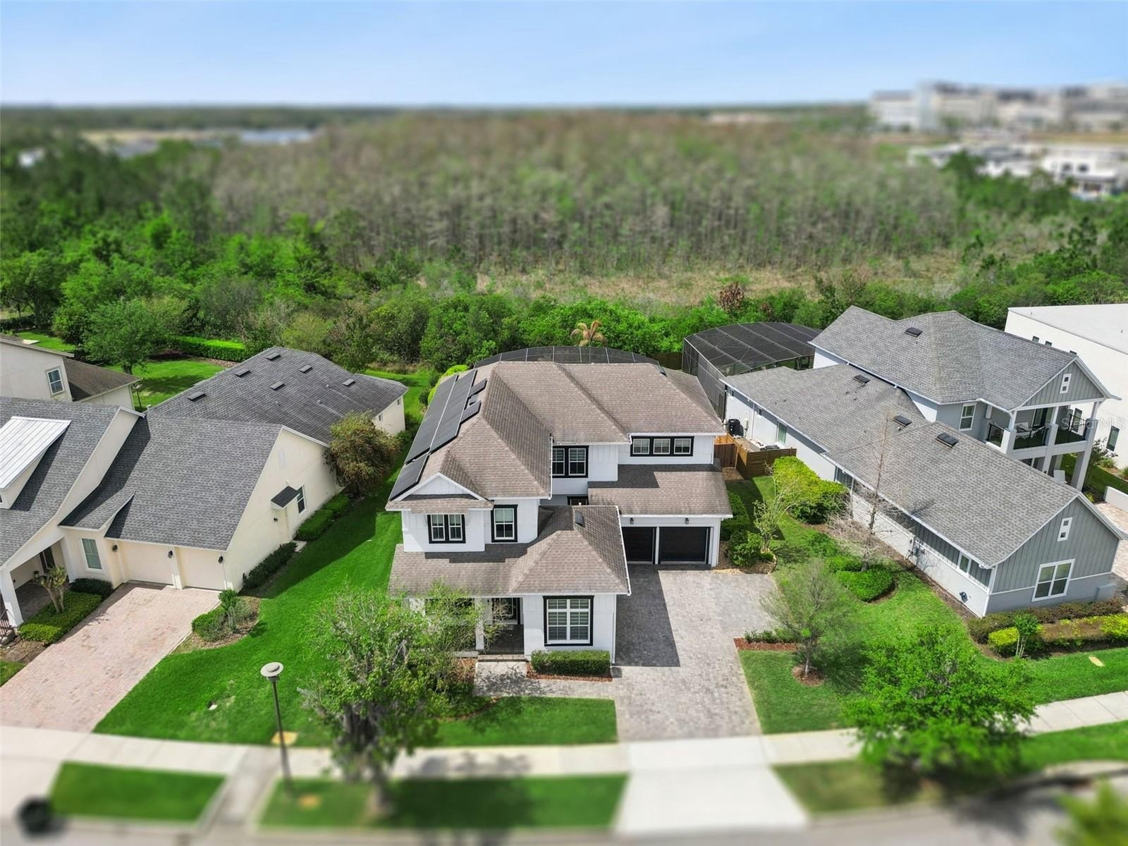 Welcome to this exceptional executive residence nestled in the highly sought-after Laureate Park community of Lake Nona. Built by David Weekley Homes, this stunning Long Boat floor plan boasts over 4,400 square feet of thoughtfully designed living space, perfectly blending elegance, comfort, and modern functionality. The home also features fully paid-off solar panels, helping to offset a significant portion of the home’s electrical usage and enhance energy efficiency. From the moment you enter, you’re greeted by abundant natural light and a dramatic two-story great room that creates an inviting and open atmosphere. The chef-inspired kitchen is the heart of the home, featuring a large center island, quartz countertops, and stainless-steel appliances including a built-in cooktop, oven, microwave, and beverage refrigerator, ideal for both everyday living and entertaining. Designed for seamless indoor-outdoor living, the spectacular four-season room showcases spectacular glass accordion doors that open to a private backyard oasis. Enjoy a saltwater pool with water features, all enclosed within a screened lanai, overlooking a serene conservation lot that offers both privacy, no rear neighbors and picturesque views. The main floor primary owner’s suite is a true retreat, highlighted by a magnificent cathedral ceiling, a spacious walk-in closet with custom organization, and a luxurious ensuite bath complete with a garden tub, separate walk-in shower, and dual separate vanities. Additional living spaces include a flex room with double glass doors, perfect for a home office, den, or creative studio, and a dining room accented by a striking stone feature wall. Upstairs, thoughtfully designed bedrooms provide comfort and convenience, including a Jack-and-Jill bathroom and additional full baths ideal for guests. A 3-car tandem garage adds extra storage and functionality. Step outside to a charming courtyard just off the dining area, perfect for hosting gatherings or enjoying quiet moments. This home was designed with entertaining in mind, offering multiple indoor and outdoor spaces to gather and unwind. Located in close proximity to Crescent Park and Canvas Restaurant & Market, residents also enjoy Laureate Park’s resort-style amenities, including multiple pools, a fitness center, volleyball and basketball courts, and multiple playgrounds. Just minutes away are Lake Nona Town Center, Boxi Park, Medical City, USTA National Campus, Orlando International Airport and world-renowned attractions like Walt Disney World and Universal Orlando Resort. Experience luxury living in one of Orlando’s most vibrant and innovative communities, this is truly a place to call home. Schedule your private showing today and experience it for yourself.