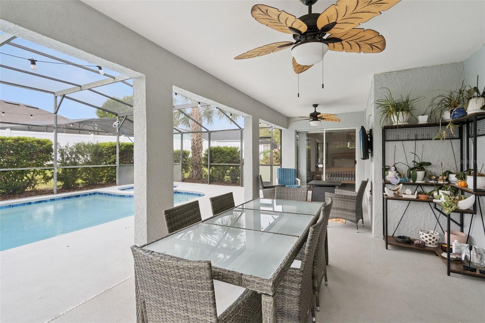 Stepping outside, your private oasis awaits within a newly re-screened lanai. Enjoy the Florida sun in your saltwater pool and spa, supported by a new variable-speed pump and a freshly resurfaced pool deck. The grounds are a tropical paradise, planted with an incredible variety of fruit-bearing plants including lemon, lime, orange, tangelo, peach, mango, avocado, cherry, blueberry, blackberry, banana, dragonfruit, pineapples, and cassava. Beyond your front door, the Greater Groves community offers fantastic amenities including a community pool, tennis and pickleball courts, and a playground. Perfectly positioned just minutes from Central Florida’s world-renowned theme parks, dining, and shopping, this property is a rare find that checks every box. Furniture available for purchase.