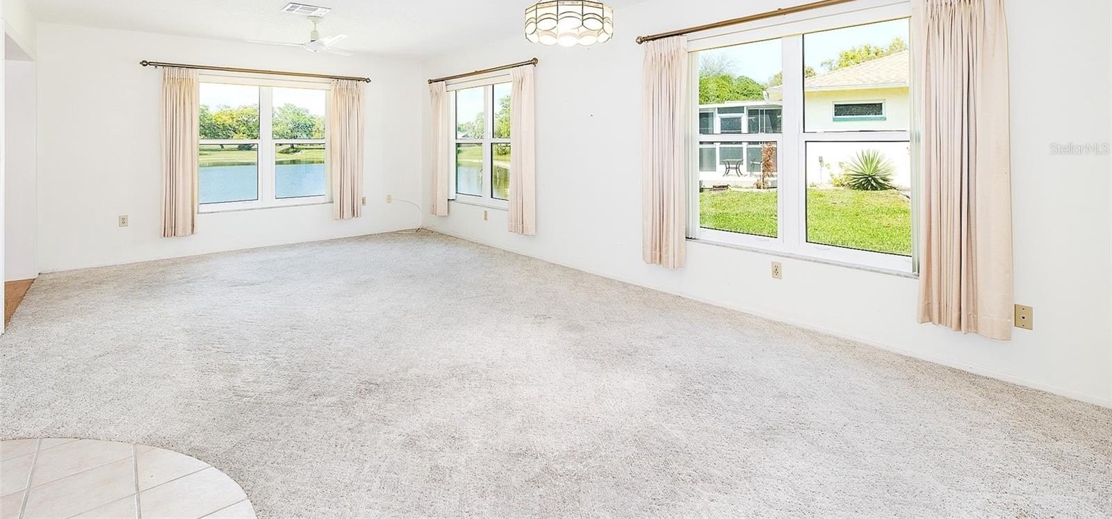 Absolutely beautiful lakefront home in Timber Oaks, on an oversized, cul-de-sac 1/4 acre lot. 2 bed, 2 bath, 2 car garage with an extra bonus room for an office/den or easy 3rd bedroom. Open and bright with a million dollar waterfront view through out. Split bedroom plan, updated kitchen with breakfast bar, large family room and lovely glass enclosed sunroom to enjoy your day. Roof 2023, 4 ton heat pump AC 2013, 6 new high impact windows, newer range and refrigerator and washer and dryer. The views are incredible and the expansive yard offers privacy and solitude. Enjoy water from the lake, for your sprinklers is a great savings. Very active clubhouse, beautiful pool, tennis, fitness and more, with low HOA dues. These homes, located on Footprint Lake, rarely become available, so don't wait. See it today.