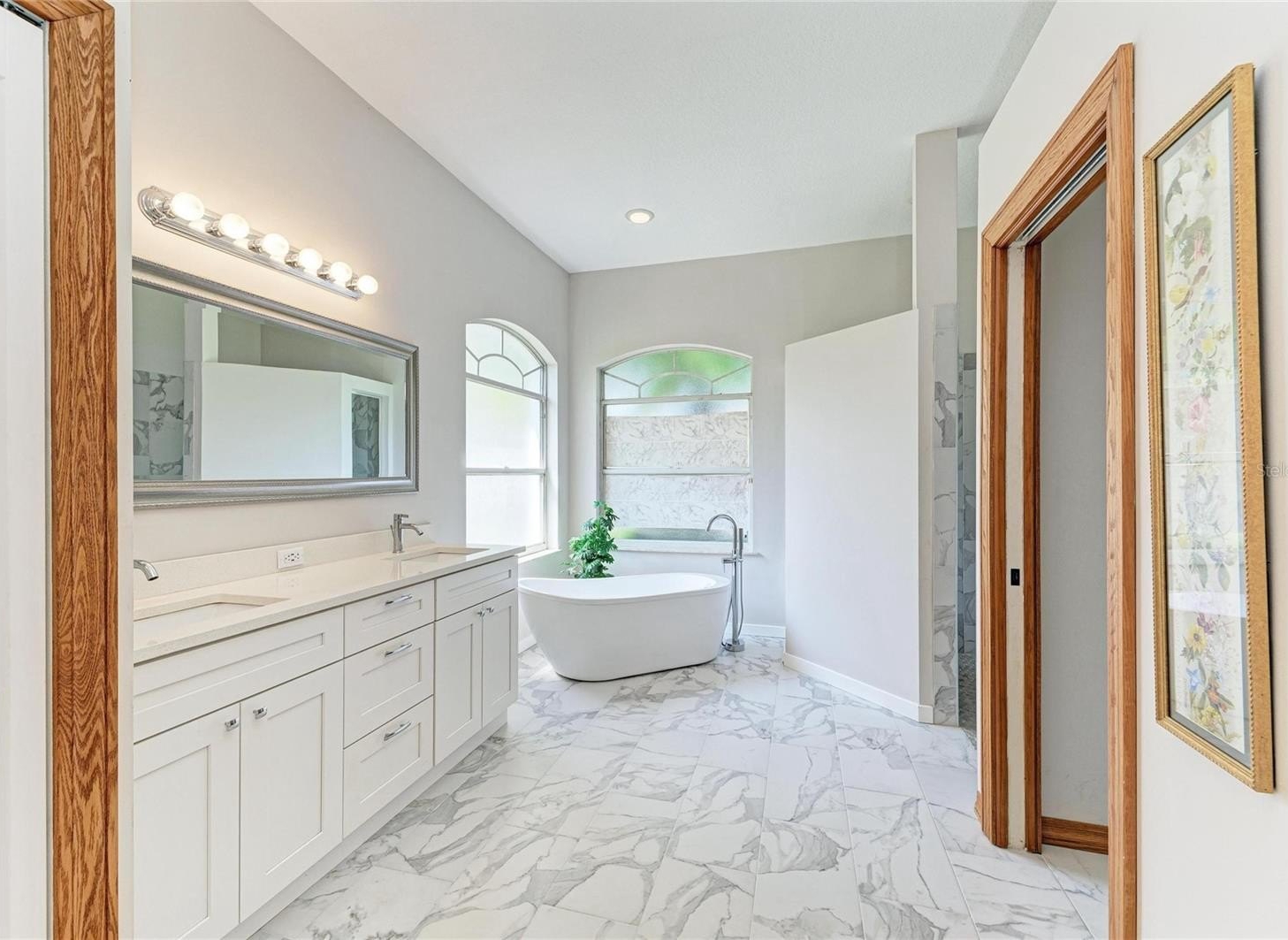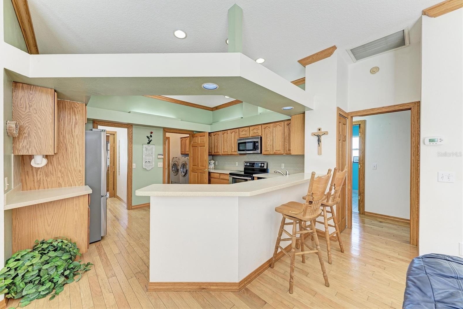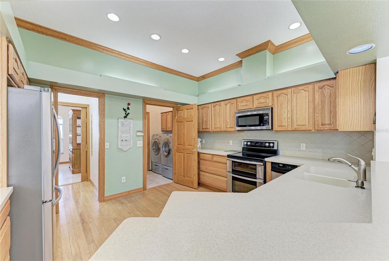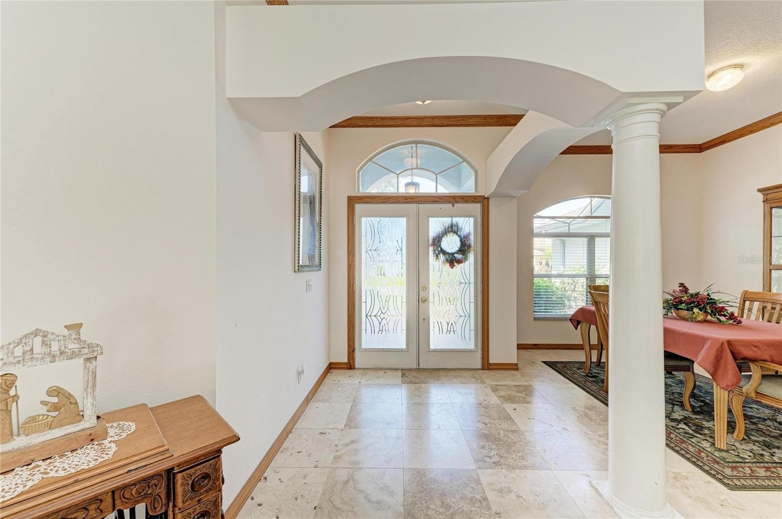 Creekwood Home! One of the larger homes in Creekwood. 4 BR, 3 BA with heated pool and spa. Only $182.00 a quarter HOA Fees! Roof Feb. 2021, HVAC System Oct. 2018, Exterior Painted 2021, 10" insulation added 2019, water heater 2018, pool cage painted and rescreened 2025, pool vacuum 2023 and all duct work relined in 2021. Central Vacuum System with new hose and main vacuum 2025. Main bedroom, Jack and Jill bedrooms painted 2021. The Jack and Jill BR's were used as Jill and Jill BR's with a solid oak pocket door to close for more privacy and Jack's Bedroom and bathroom which opens to pool are at the back of the house with solid oak 6 panel pocket door for privacy as well. Dining room, living room and family room all painted in 2021. Main bathroom and the jack and jill bathrooms updated in 2021 which includes quartz counters, new toilets and bath tubs. This home features Travertine floors (Sealed March 2021) as you enter through the front door in living-dining areas. Backflow system passed inspection March 2026. Double door entry makes it a breeze to move into this home. The home has a central vacuum system, stainless steel appliances, 6 panel solid Oak doors, Crown Molding and 3 sets of sliding glass doors that all open to the pool area. Kitchen has Oak Cabinets with soft close features, double oven/covection 2025, trash compactor, French Door Refrigerator and bottom freezer 2025, dishwasher 2021, and a freezer in garage. Laundry room has counter space to fold clothes and cabinets above counter and above washer and dryer. Wood Shelves in garage for storage and additional cabinets in garage for more storage and attic space above garage for even more storage! Excellent location on a cul-de-sac street in a very sought after Community. Community pool, basketball court, tennis court, picnic tables, and pickle ball! Camera on site.