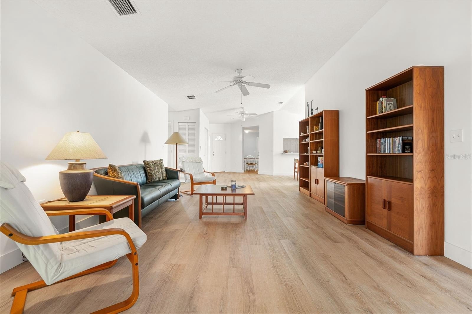 Discover this hidden gem nestled within the exclusive, gated enclave of Lantana Villas at Terra Ceia Bay Country Club, where resort-style living meets the tranquility of a premier golf course community. This beautifully maintained 3-bedroom, 2-bath single-family home sits directly on the golf course, offering serene, picturesque views right from your own backyard. Step inside and enjoy an open, airy split-bedroom floor plan spanning 1,647 square feet of heated living space, designed for both comfort and privacy. The updated vinyl wood plank flooring flows throughout, lending a warm, modern feel to every room. The enclosed, air-conditioned lanai invites year-round enjoyment, whether you're sipping your morning coffee while watching golfers pass by or unwinding after a long day with a view that never gets old.
