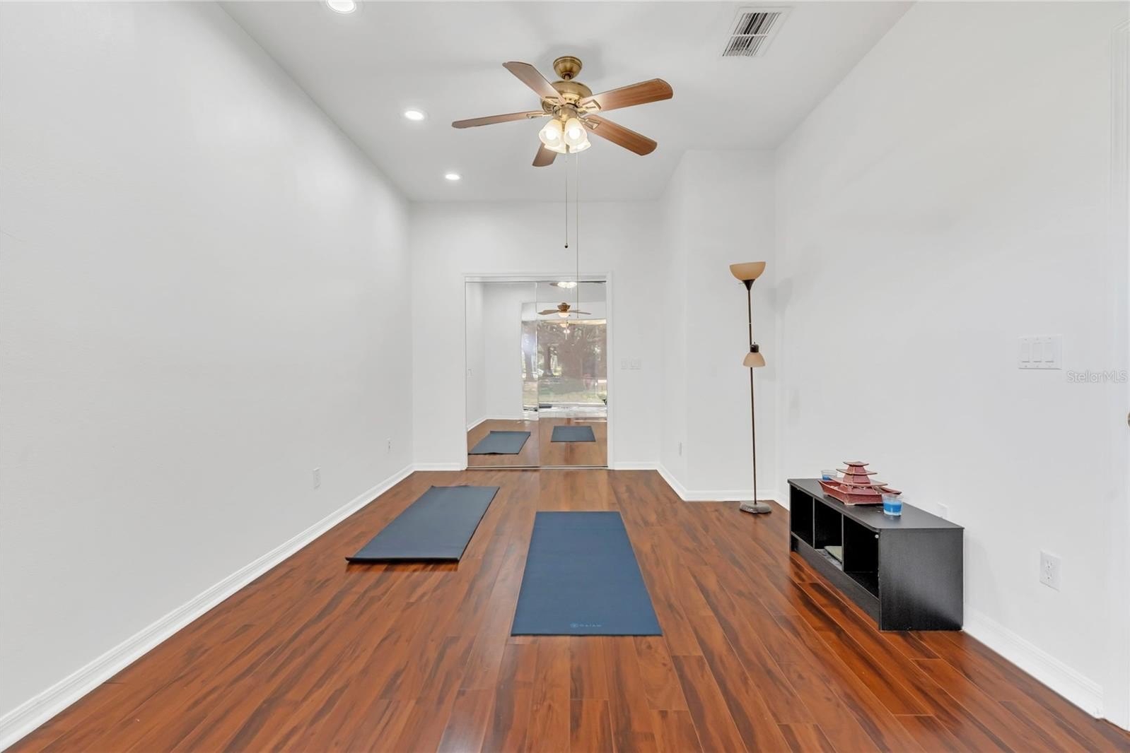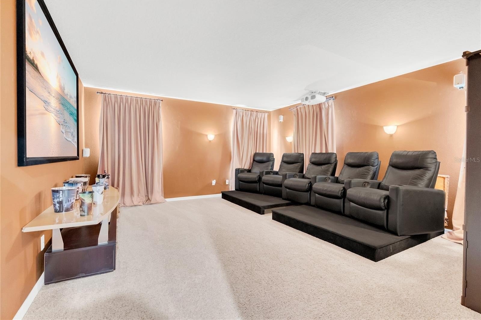Additionally, the home features a dedicated theater room, equipped with a 108” screen and fully wired for a projector and surround sound speakers. This versatile space may also be used as a bedroom, providing even greater flexibility. Major updates include a roof replacement completed in 2018, offering added peace of mind.