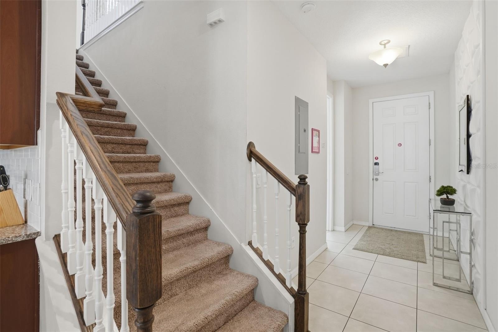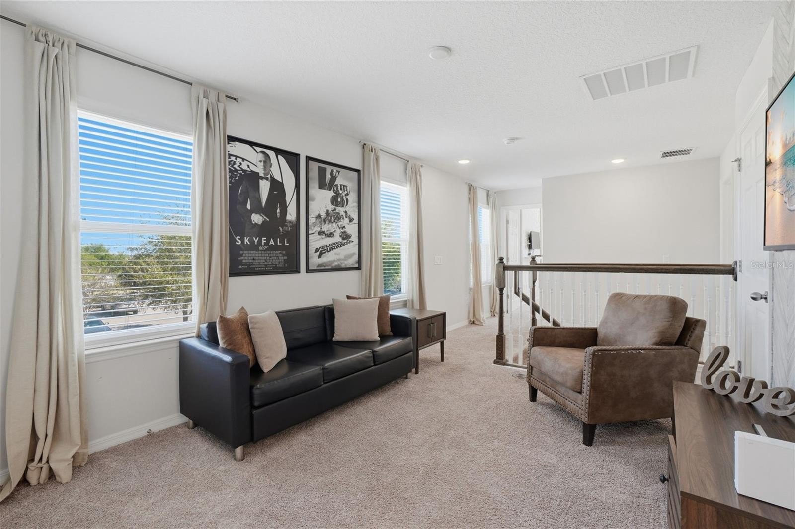 The home is filled with natural light thanks to large sliding glass doors that lead to your PRIAVTE HEATED POOL, enclosed within a screened lanai for year-round enjoyment. The first-floor primary suite provides privacy and convenience, while upstairs you'll find a versatile loft area ideal for relaxation or additional entertainment space.