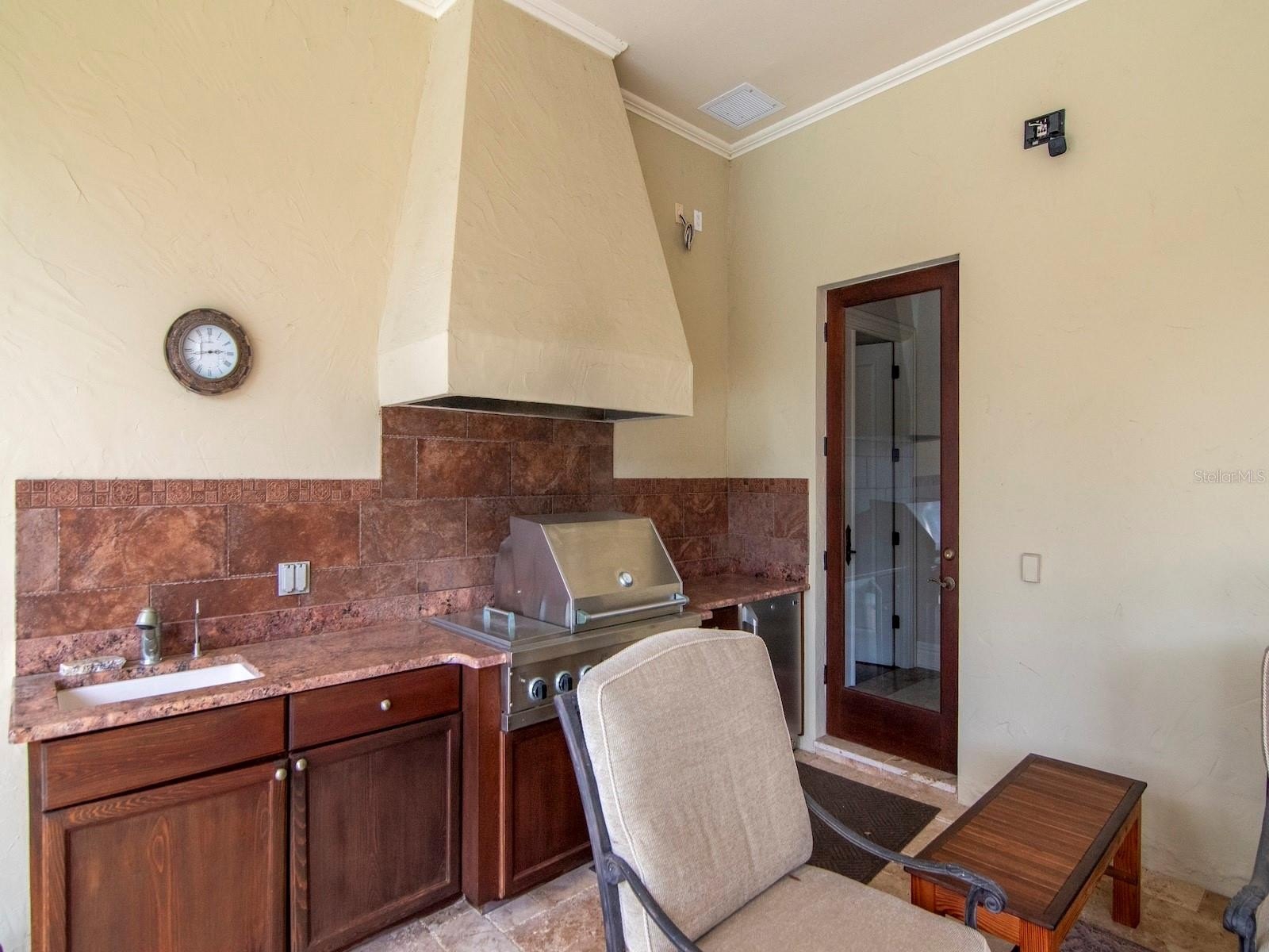 Outdoor living is exceptional, highlighted by a heated saltwater pool and spa, an expansive travertine lanai, and a full outdoor kitchen with built-in gas grill, sink, and refrigerator—perfect for entertaining under the generous shaded area. Stillwater is one of the region’s most prestigious luxury communities, offering only 48 homesites across 114+ acres of conservation and lakes, with 24-hour guard-gated security. Enjoy tranquil estate living just minutes from top-rated schools, the Veterans Expressway, Upper Tampa Bay Trail, hospitals, sports venues, and Tampa International Airport.