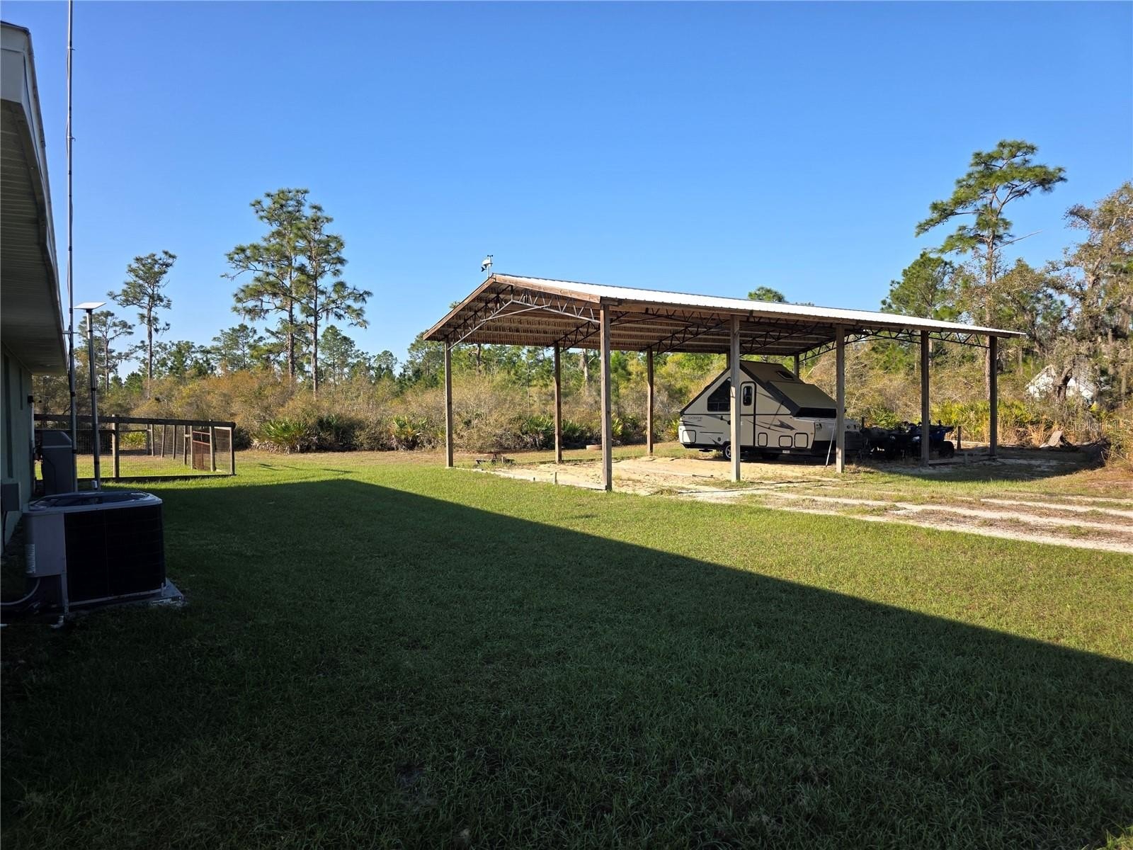 Nestled in the peaceful countryside of Lake Wales, this well-maintained concrete block/stucco home offers the perfect blend of comfort, style, and functionality on 3.2498 gated, partially fenced, acres. Featuring 3 bedrooms, 2 bathrooms, and a 2-car garage, this property provides plenty of space for both everyday living and entertaining. Step inside to find vaulted ceilings and a bright, open feel complemented by stylish paint selections, granite counter tops and open and split bedroom floor plan. The home includes appliances and ceiling fans throughout for added comfort. Durable and attractive finishes include stone-quarry tile in the kitchen and bathrooms, with warm wood flooring throughout the remaining living areas. The layout offers convenience and practicality with walk-in showers and an open laundry area for easy access. Outdoors, you'll find a fenced enclosure—perfect for pets large natural trees, oaks and pines with palmetto bushes offering a natural boundary between neighbors. A standout feature is the detached covered open pole barn with 4 bays—ideal for storing extra vehicles, a camper, or a boat while keeping them protected from the Florida sun. With ample room for outdoor activities, gardening, or future improvements, the possibilities are endless. Enjoy the privacy of country living while remaining just a short drive from shopping, dining, and area lakes known for excellent fishing and recreation. Don’t miss your chance to own this versatile Central Florida property!