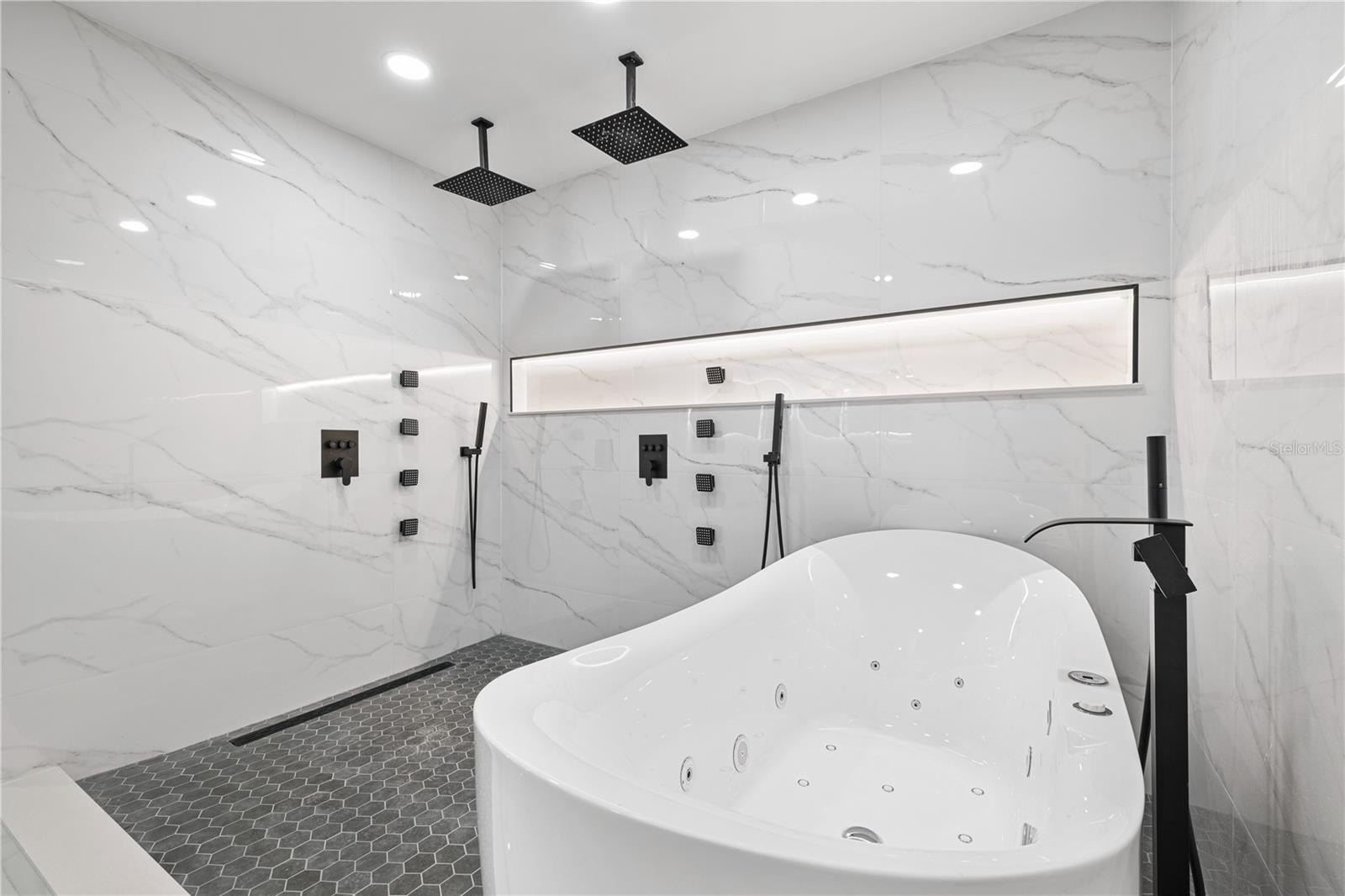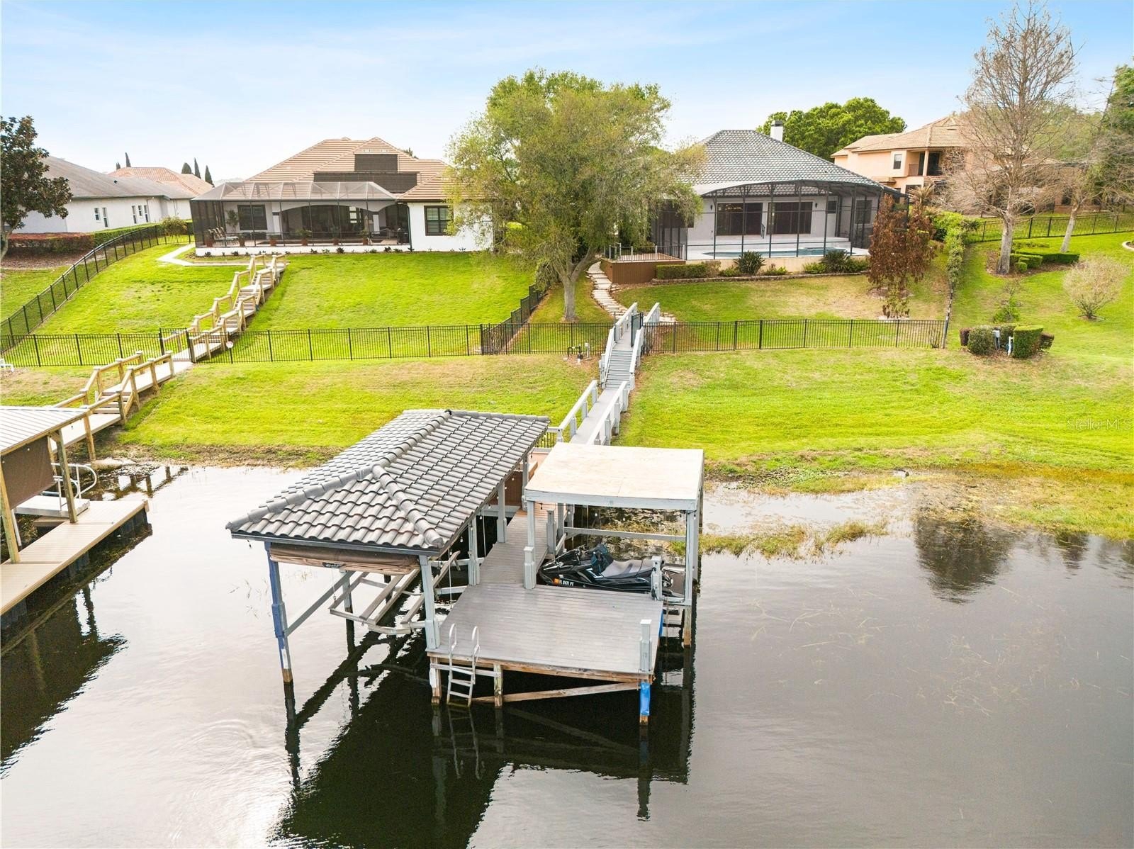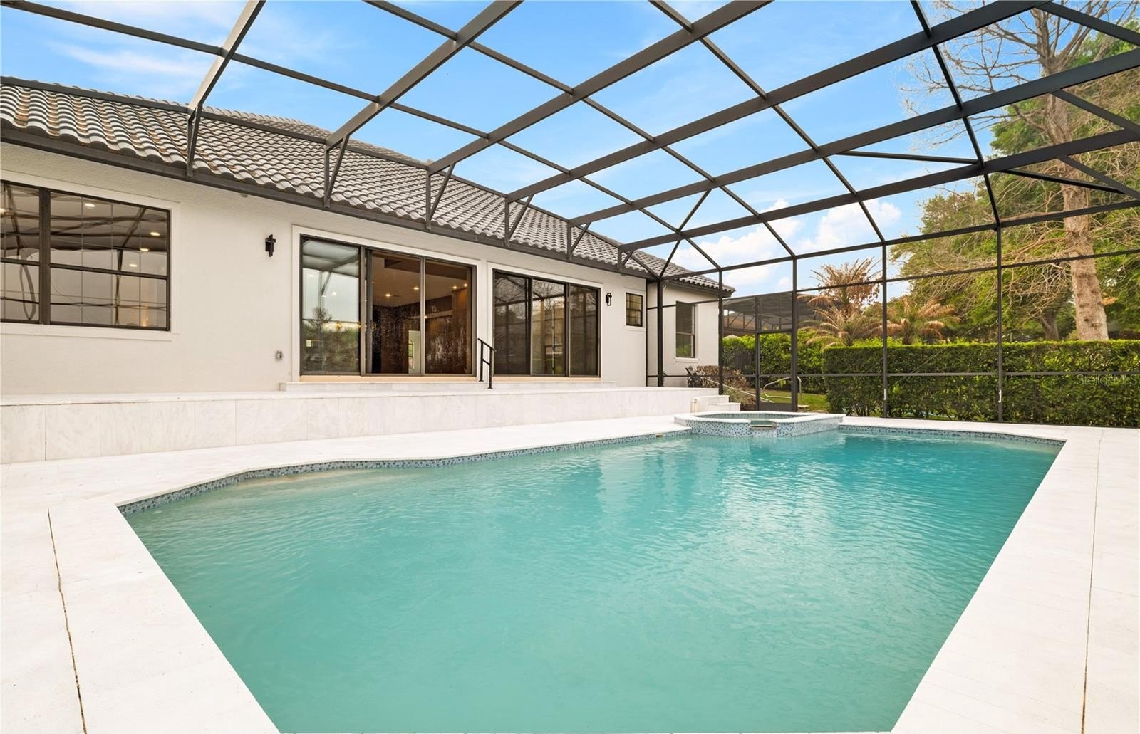 The primary suite offers a private retreat with abundant natural light, custom closets, and a spa-inspired bath featuring a freestanding soaking tub and luxury walk-in shower. Step outside to a screened pool, upgraded travertine deck, and private pier, creating an unparalleled waterfront lifestyle ideal for relaxation and entertaining.