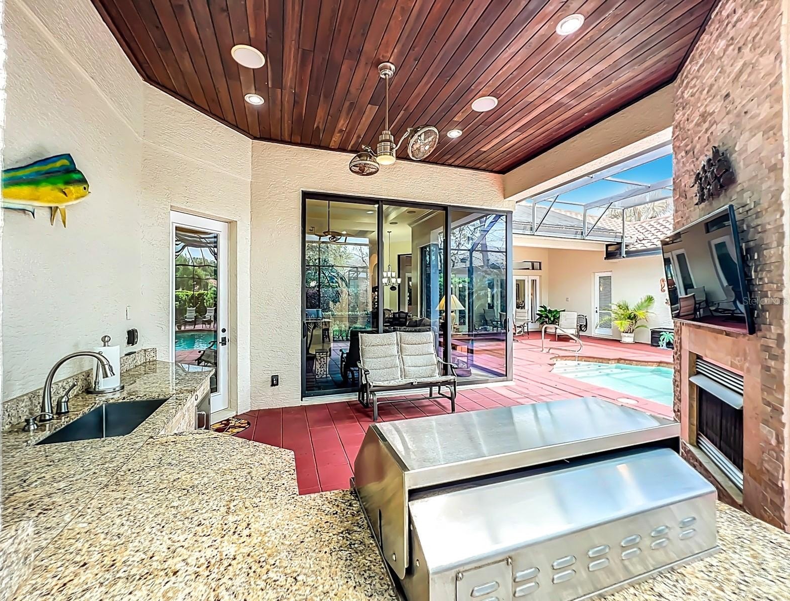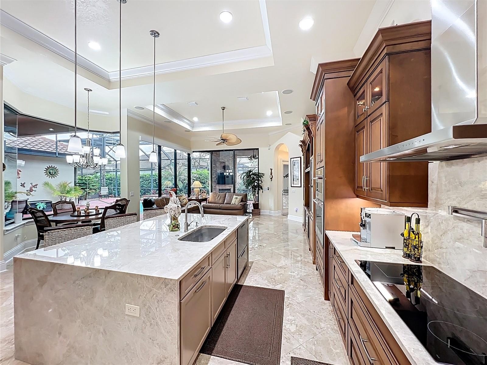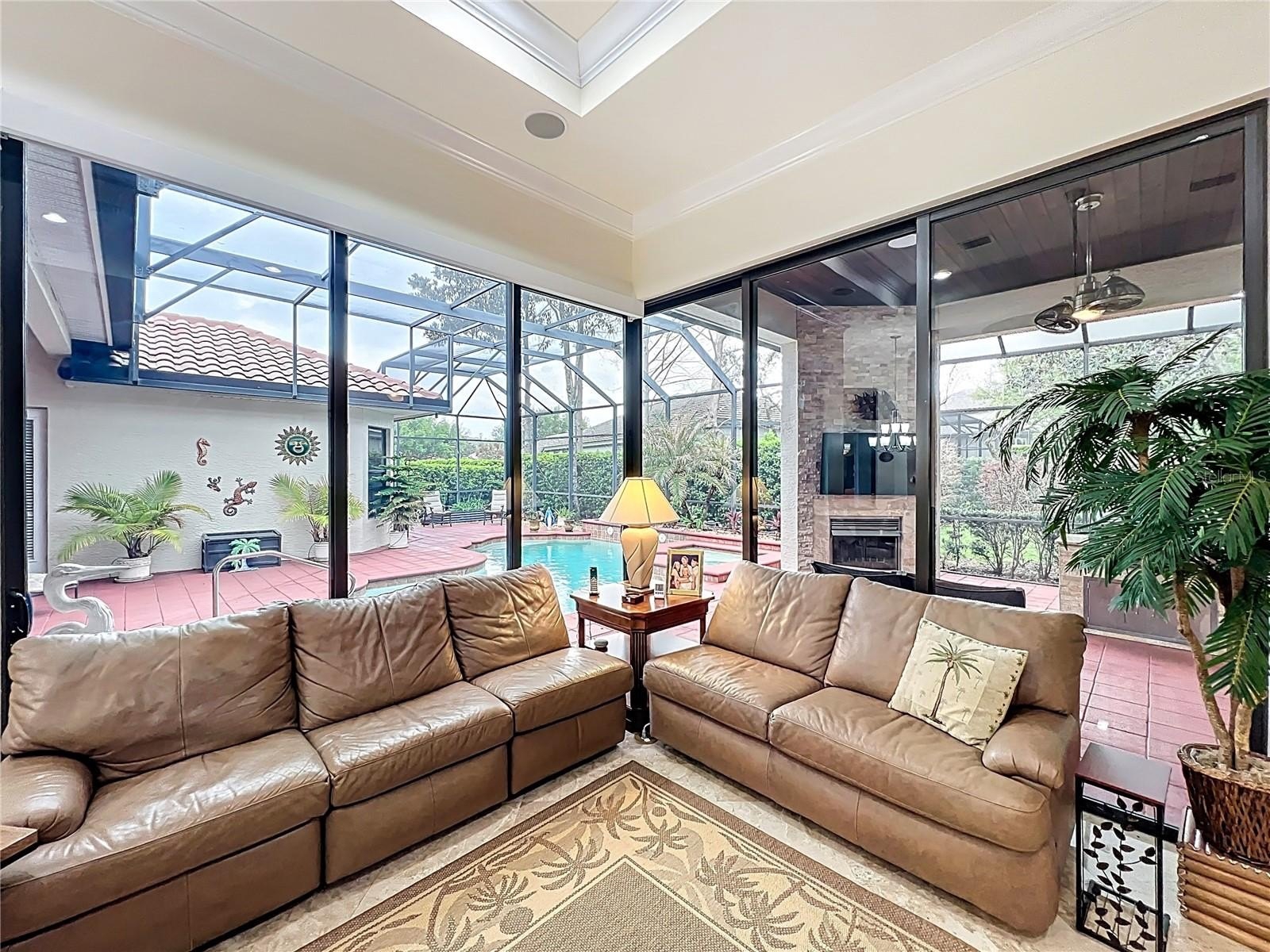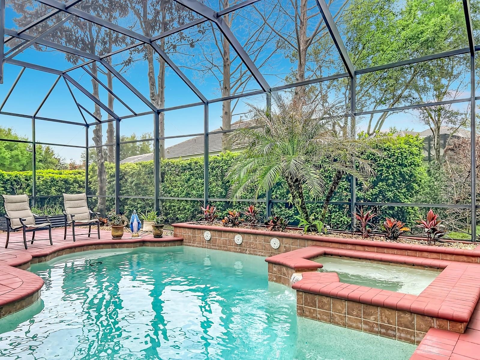 Located in the beautiful guard gated Lake Forest community, this is a custom built home with tile roof, 3 way split open floor plan, travertine flooring in the formal living and dining room, kitchen and family room and so much more. Each bedroom had its own private bathroom and natural maple engineered wood floors in 3 of the bedrooms. The Primary bedroom has 2 separate walk in closets with built ins. Elegant primary bathroom with double sinks, separate tub and shower with travertine floors. The owners had completely remodeled the gourmet kitchen with over $100,000 of improvements. All new custom wood cabinets, pull out drawers and natural Quartzite counter tops, back splash and center island with double sink. Wolf range hood and water pot filler over the induction cooktop. Built in convection oven with microwave and air fryer features and stainless steel sub zero refrigerator. The family room has custom built all wood entertainment center with 2 triple glass sliding doors that open onto the screened patio and pool. This outdoor kitchen includes built in cabinets with granite counter tops, Paradise grill and sink. Enjoy the gas burning fireplace overlooking the solar heated salt water pool and spa. There is an Aqua Link internet control system and a separate heater heat pump also. There is a fenced area for the pet owner. A whole house Gen Star Generator with a 250 gallon propane tank has been installed. A separate office has built in cabinets, shelves and desk along with wood flooring. The 3 car garage includes a Tesla charging station and energy saving Rheem Hybrid water heater. Two heating and air conditioning systems with internet control thermostats. Lake Forest has a community clubhouse available to homeowners that has a full kitchen for family and/or friends entertainment. The fitness center has recently been renovated. Overlooking the 55 acre lake owners can enjoy the Olympic size pool and spa with a beach and volley ball area. For active families there are tennis courts, basket ball court, pickleball courts and playground. Easy access to I-4, Hwy 417 and Hwy 429. 45 minutes to Daytona Beach and Disney World. Available airports are Orlando International, Sanford-Orlando Airport and Daytona Beach International.