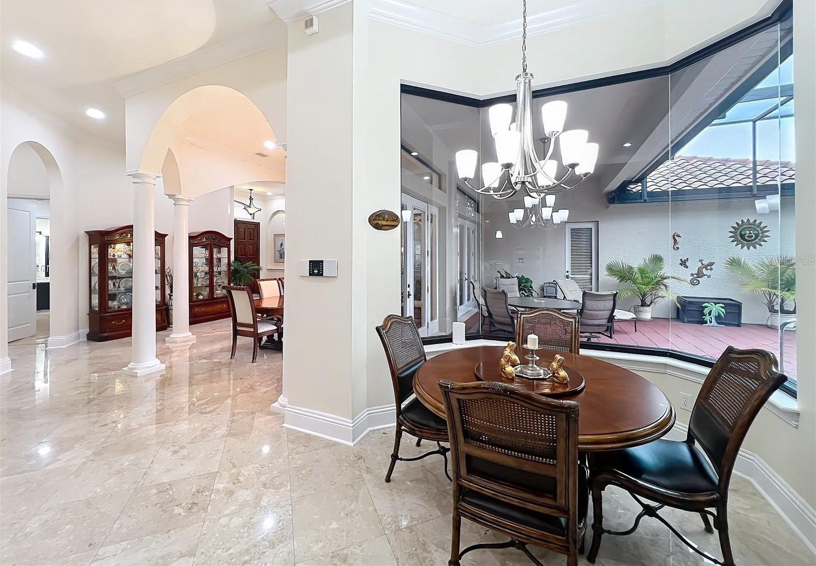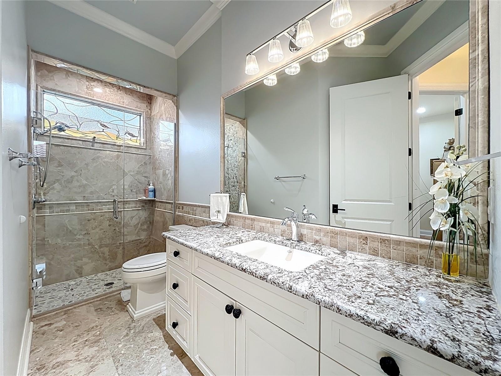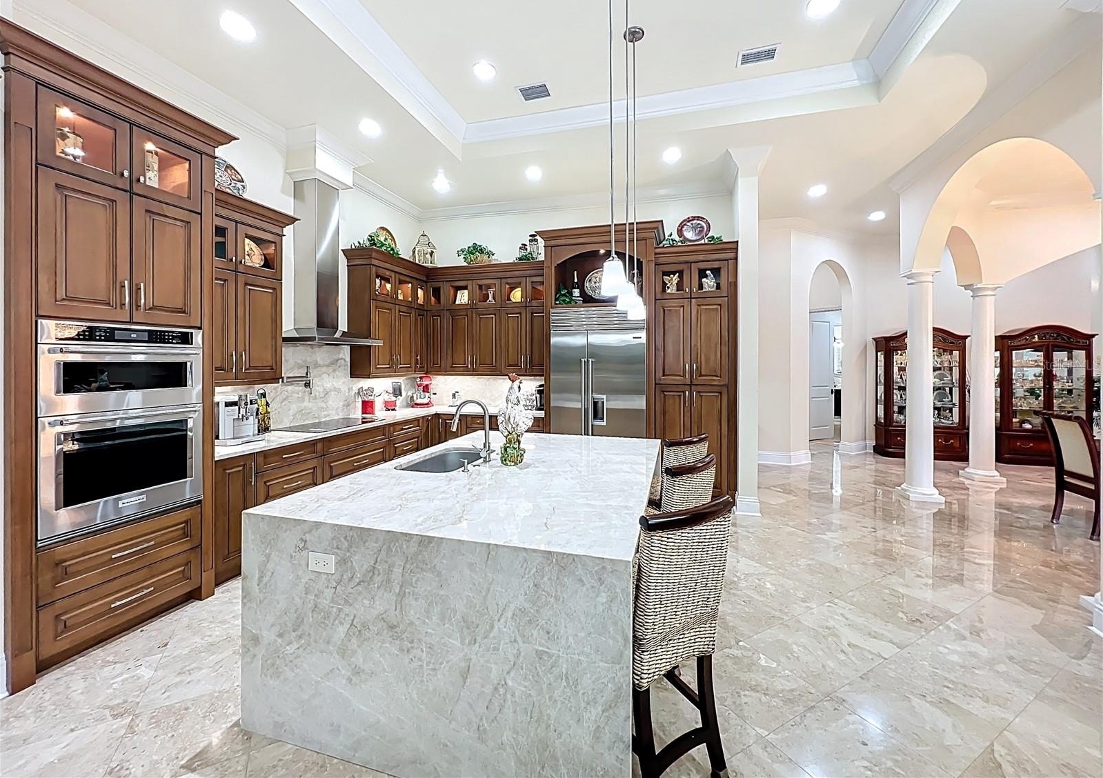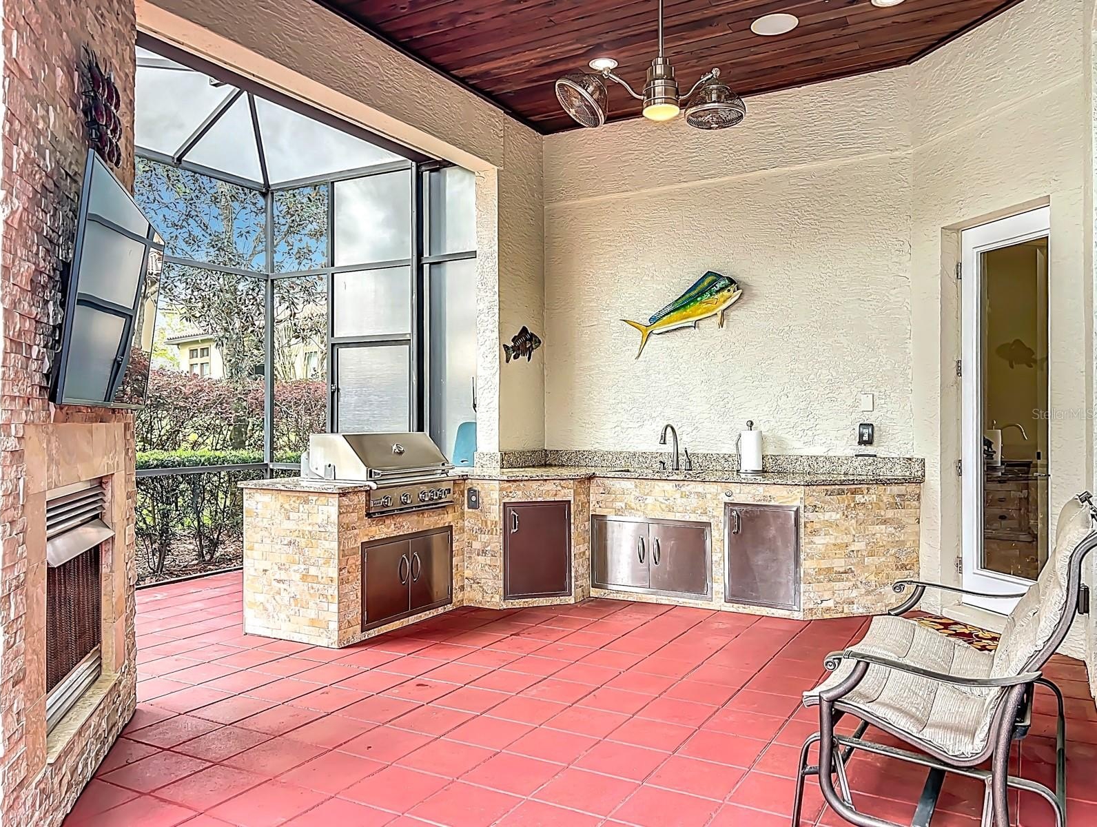 Located in the beautiful guard gated Lake Forest community, this is a custom built home with tile roof, 3 way split open floor plan, travertine flooring in the formal living and dining room, kitchen and family room and so much more. Each bedroom had its own private bathroom and natural maple engineered wood floors in 3 of the bedrooms. The Primary bedroom has 2 separate walk in closets with built ins. Elegant primary bathroom with double sinks, separate tub and shower with travertine floors. The owners had completely remodeled the gourmet kitchen with over $100,000 of improvements. All new custom wood cabinets, pull out drawers and natural Quartzite counter tops, back splash and center island with double sink. Wolf range hood and water pot filler over the induction cooktop. Built in convection oven with microwave and air fryer features and stainless steel sub zero refrigerator. The family room has custom built all wood entertainment center with 2 triple glass sliding doors that open onto the screened patio and pool. This outdoor kitchen includes built in cabinets with granite counter tops, Paradise grill and sink. Enjoy the gas burning fireplace overlooking the solar heated salt water pool and spa. There is an Aqua Link internet control system and a separate heater heat pump also. There is a fenced area for the pet owner. A whole house Gen Star Generator with a 250 gallon propane tank has been installed. A separate office has built in cabinets, shelves and desk along with wood flooring. The 3 car garage includes a Tesla charging station and energy saving Rheem Hybrid water heater. Two heating and air conditioning systems with internet control thermostats. Lake Forest has a community clubhouse available to homeowners that has a full kitchen for family and/or friends entertainment. The fitness center has recently been renovated. Overlooking the 55 acre lake owners can enjoy the Olympic size pool and spa with a beach and volley ball area. For active families there are tennis courts, basket ball court, pickleball courts and playground. Easy access to I-4, Hwy 417 and Hwy 429. 45 minutes to Daytona Beach and Disney World. Available airports are Orlando International, Sanford-Orlando Airport and Daytona Beach International.