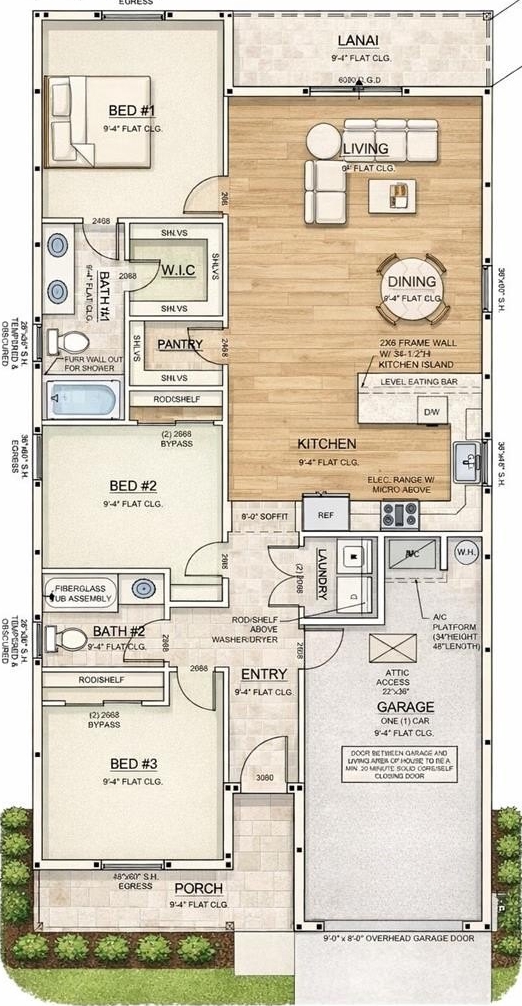 One or more photo(s) has been virtually staged. This three-bedroom, two-bathroom home spans 1,334 square feet under air and features exceptionally tall ceilings of 9 feet 4 inches throughout. The home has been meticulously designed and optimized for ultimate functionality and spaciousness, incorporating a split floor plan for the bedrooms, an interior laundry room, and an open concept for the living area. The kitchen boasts ample counter space and an abundance of cabinetry to cater to even the most discerning clients. Additional features of this home include waterproof and scratch-resistant vinyl flooring, granite countertops in the kitchen and bathrooms, and numerous built-ins in the storage closets. The exterior of the home is adorned with a spacious covered front and back porch, and the driveway is finished with a stunning slate color paver. The oversized 1-car garage provides ample space for a car and additional storage. This is an up-and-coming, rapidly evolving area with new homes being constructed at every corner. Additionally, the home is conveniently located just 2.5 miles from the shops, bars, and restaurants of Downtown Sanford.