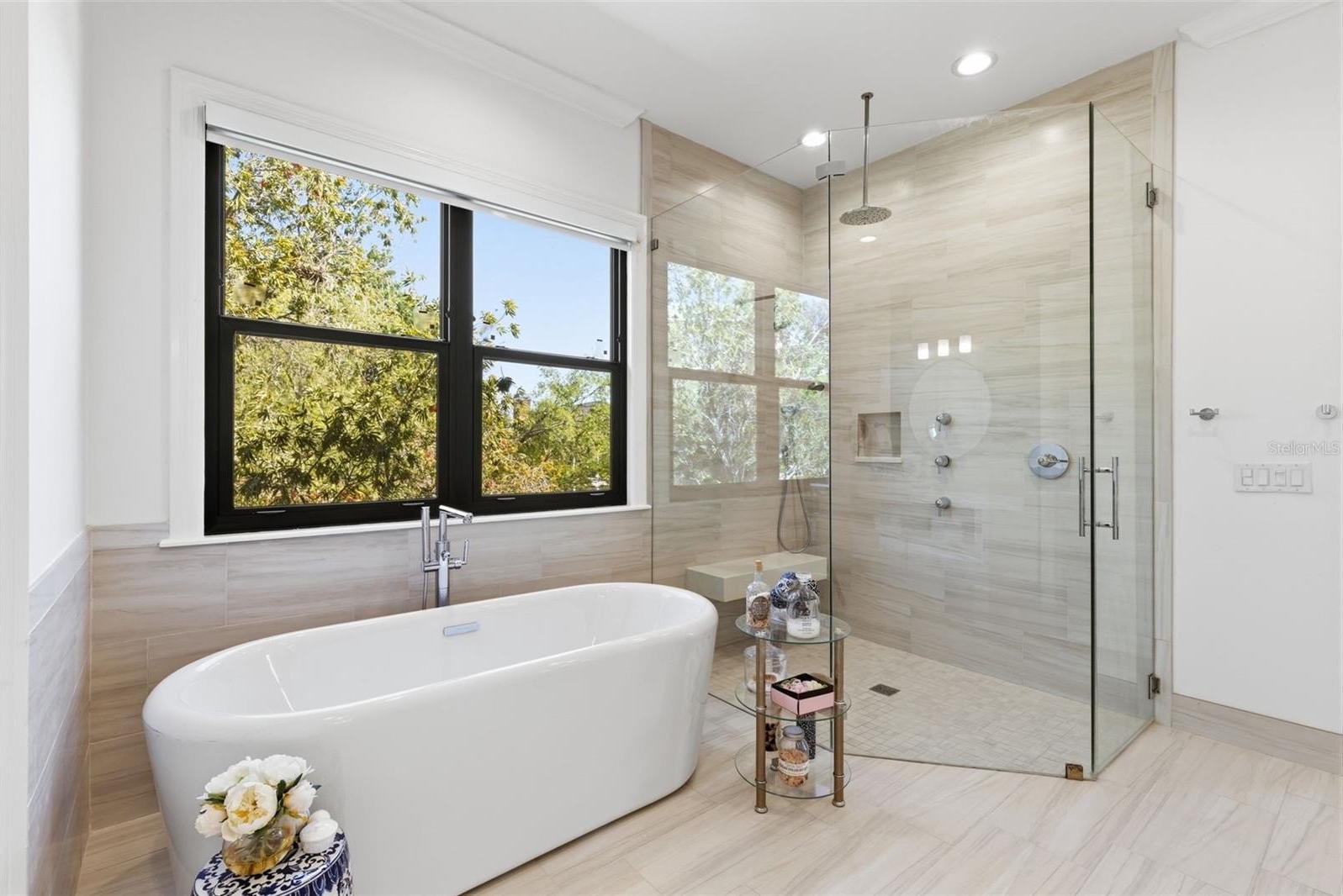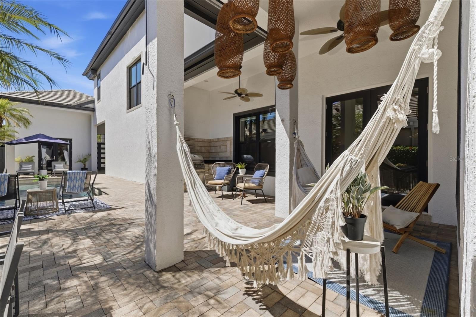The primary suite is a serene retreat, offering peaceful lanai views and a sense of quiet luxury. Its spa-inspired bath features dual vanities, an expansive walk-in closet, linen storage, a freestanding soaking tub, and a separate walk-in shower. There are two well-appointed secondary bedrooms on second floor.
