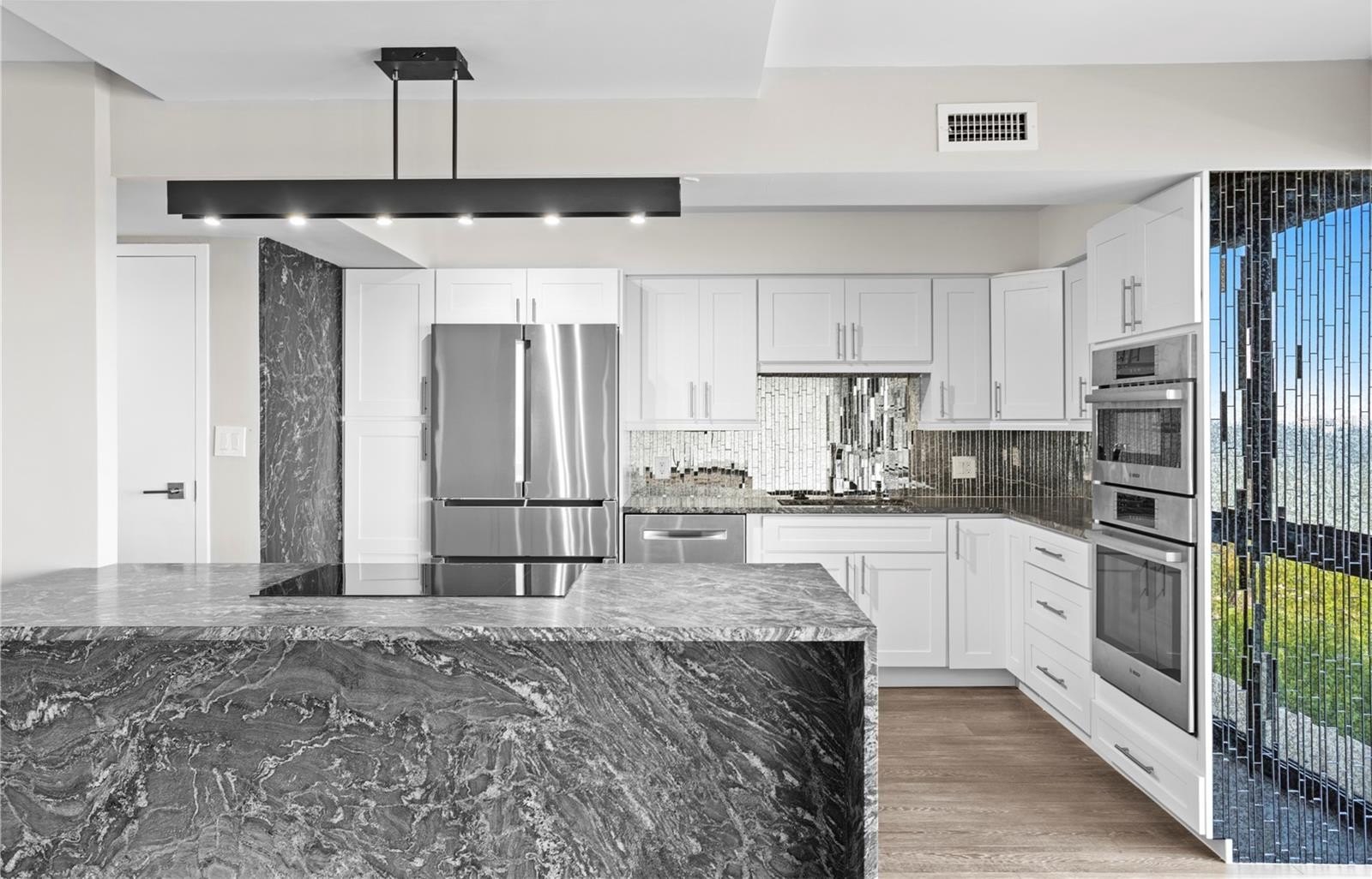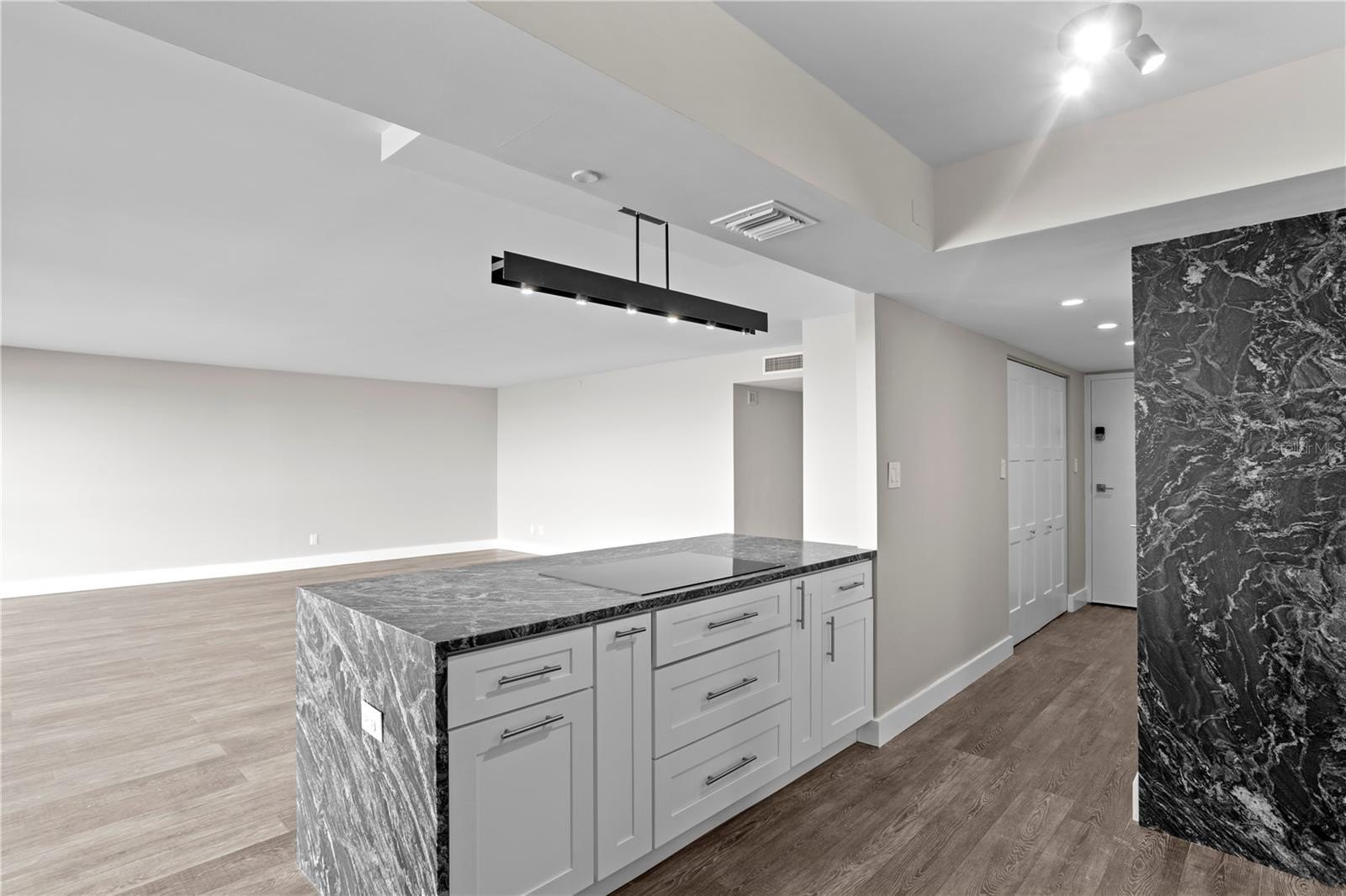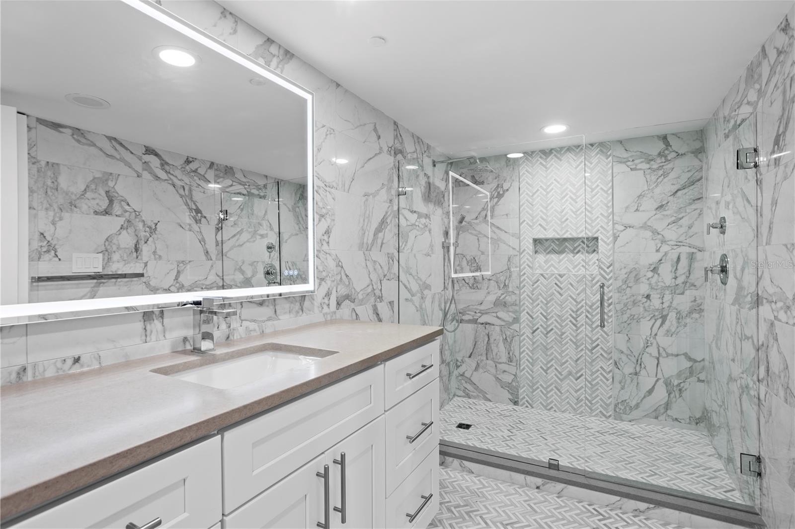 COMPLETELY RENOVATED Monte Carlo Towers residence showcasing breathtaking, unobstructed views of Hillsborough Bay! Floor-to-ceiling windows in both bedrooms capture spectacular sunrises and sunsets, creating a truly captivating living experience. Enter through elegant double doors into a spacious foyer that opens to a light-filled, open-concept living, dining, and kitchen area which was perfectly designed to highlight the panoramic water views. The chef-inspired kitchen is beautifully appointed with Bosch appliances featuring an induction cooktop, convection microwave, wall oven, plus solid wood cabinetry with soft-close drawers and doors, Oscuro Mist Honed granite countertops, and a striking waterfall-edge island, along with the convenience of your own private trash chute. The primary suite is a serene retreat offering stunning sunset views, a custom walk-in closet, and a luxurious ensuite bath with Eastern Shore Honed quartz counters, custom cabinetry, opulent lighting, and a walk-in shower. The second bedroom or den also enjoys beautiful views and features a wall-to-wall closet system, while the adjacent guest bath is equally well-appointed with custom cabinetry, Tuxedo Gray Satin quartz countertops and a walk-in shower accented with designer porcelain mosaics. Extensive upgrades provide peace of mind and modern comfort, including updated electrical, electric panel and plumbing systems, a new HVAC system, custom automatic solar shades in the living/kitchen area, new hot water heater, new recessed sprinkler system heads throughout, and new lower living room windows were installed. Additional enhancements include the removal of popcorn ceilings, in-unit laundry, and hurricane shutters. Monte Carlo Towers is renowned for its luxury and exclusivity, featuring a grand 24,000 sq. ft. marble lobby, five elevator towers with semi-private lobbies (only two units per floor), and exceptional resort-style amenities. Residents enjoy a heated saltwater pool, outdoor grills, a social room with a full commercial kitchen, a library, a state-of-the-art fitness center with saunas, and two tennis/pickleball courts. The community also offers two guest suites, 24-hour concierge service, secure resident and guest parking, and onsite management. Ideally located just minutes from premier dining, shopping, cultural attractions, sporting venues, major highways, award-winning Gulf beaches, and both Tampa International and St. Pete-Clearwater airports. This residence delivers the ultimate Tampa Bay lifestyle luxury living at its finest! Schedule your private showing today!