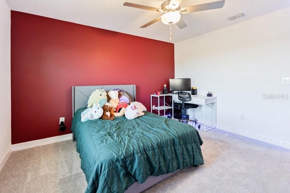 Upstairs, a versatile loft provides flexible space for a second living area, home office, or playroom. The split floor plan offers privacy, with the primary suite featuring a walk-in closet, dual under-mount sinks, a separate shower, and a private water closet. Across the loft are two additional bedrooms, a full bathroom, and a dedicated laundry room.