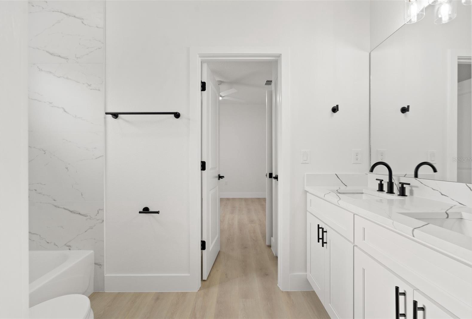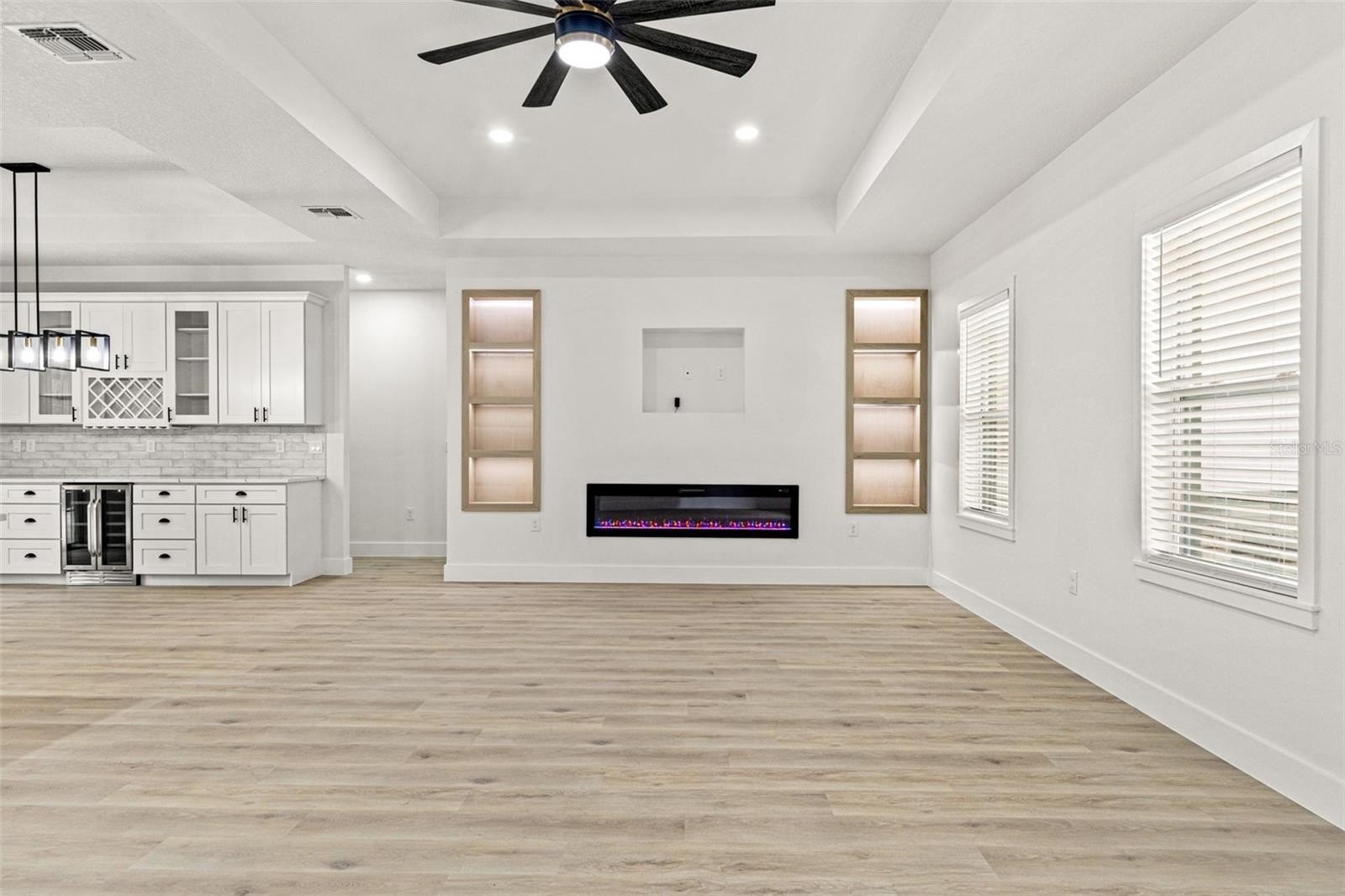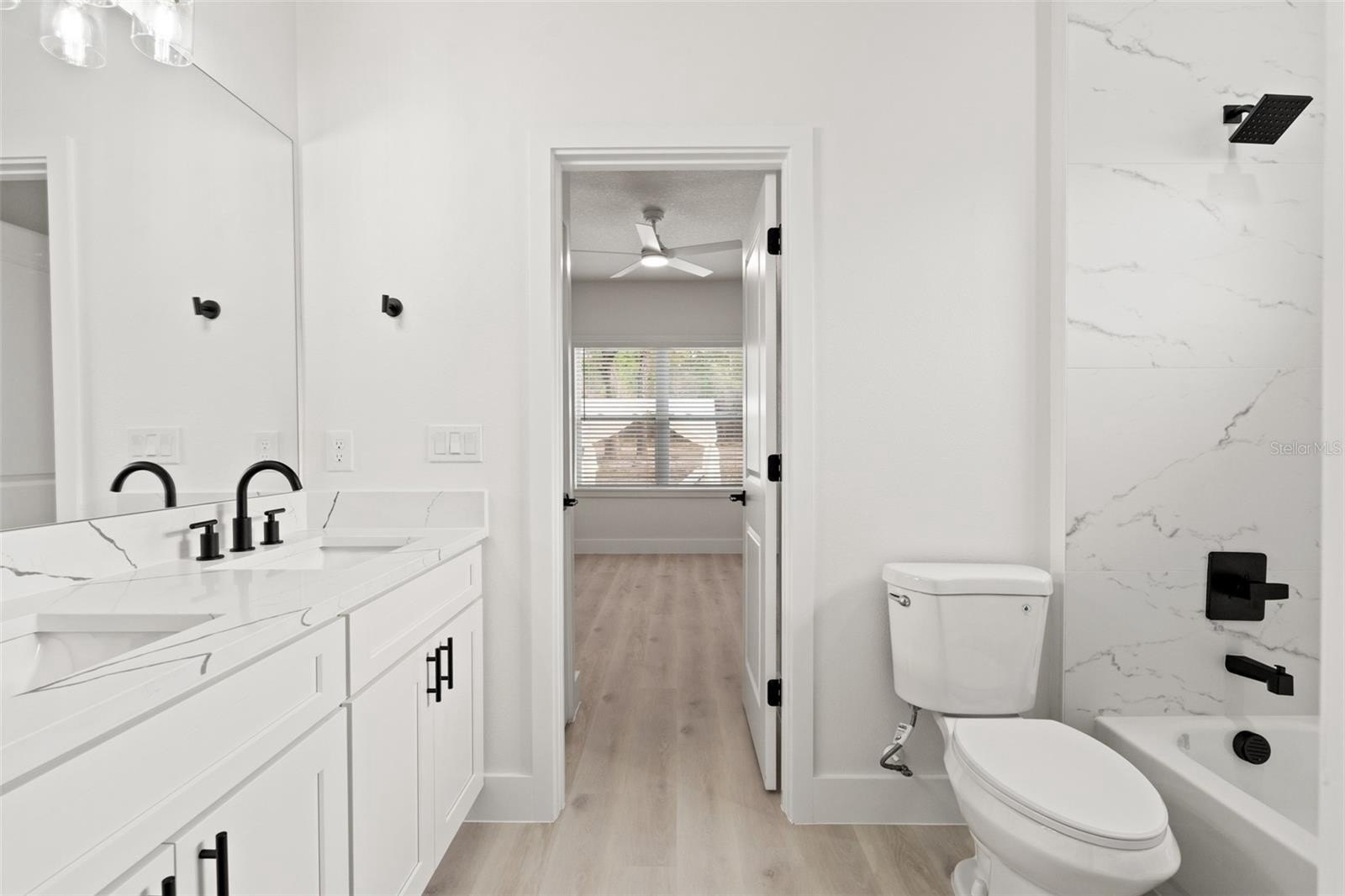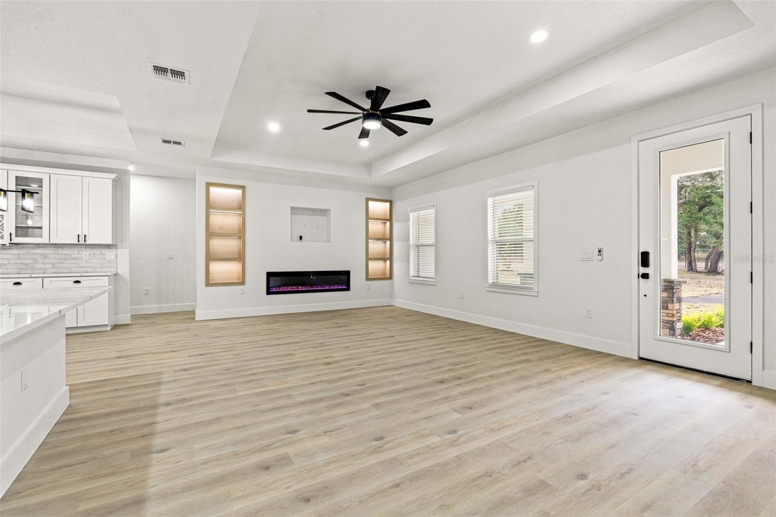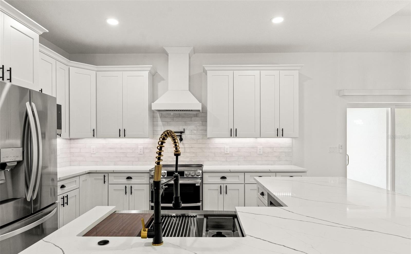 Inside, discover the signature craftsmanship of Santabarbara Homes, built with durability, efficiency, and luxury in mind. Features include concrete block construction, hurricane impact windows and doors, foam board insulation with R30 blown-in attic insulation, and individual A/C returns in every room for enhanced comfort and airflow. The home is appointed with luxury vinyl plank flooring throughout, quartz countertops, soft-close cabinetry, and thoughtfully designed living spaces that create a true turnkey experience.
