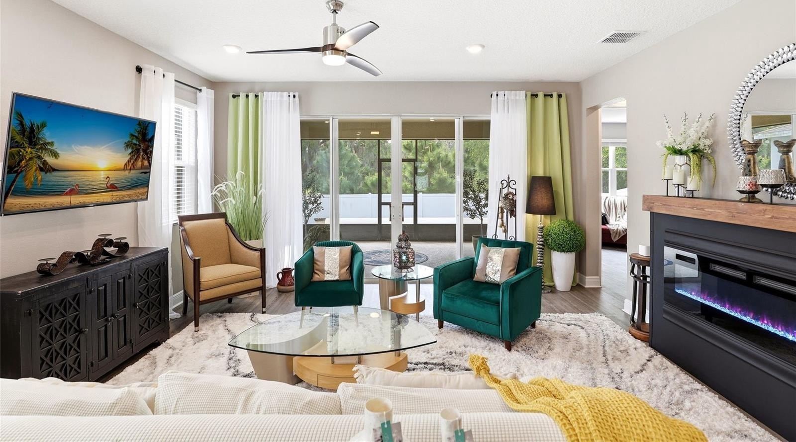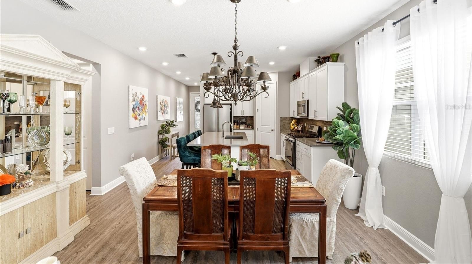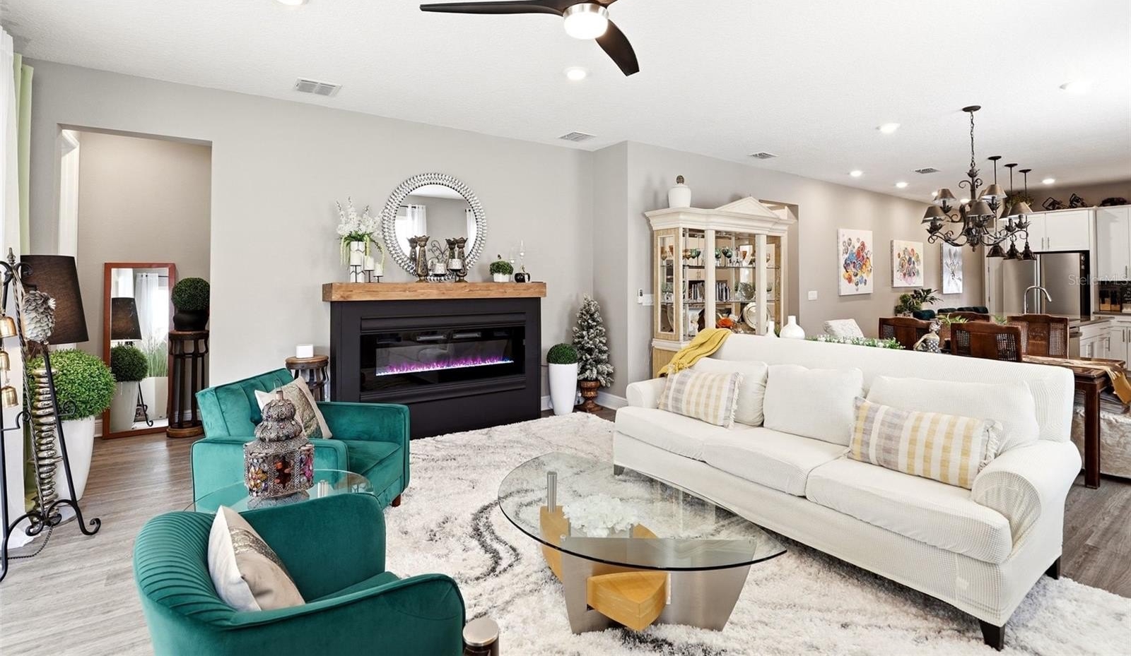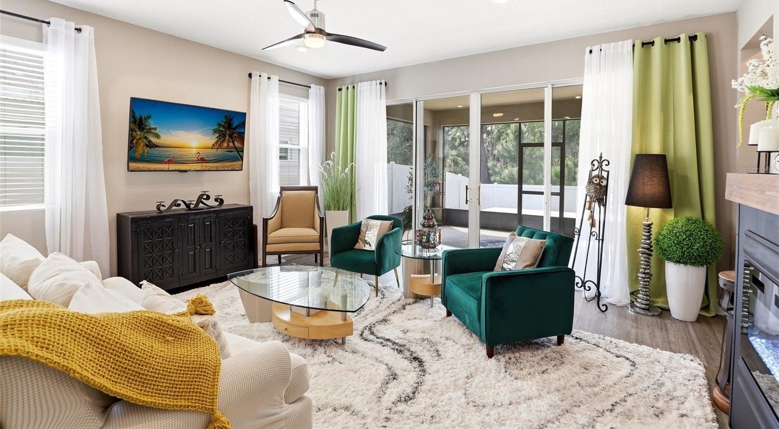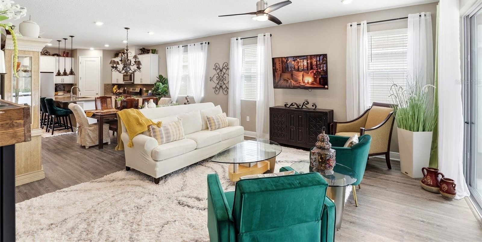 The heart of the home flows beautifully into the dining and kitchen areas, offering a refined yet comfortable space ideal for hosting and everyday living. Step outside to your private outdoor retreat—complete with a screened enclosure and an expansive 18x24 extended concrete patio, thoughtfully designed for year-round elevated outdoor entertaining, dining, and relaxation.