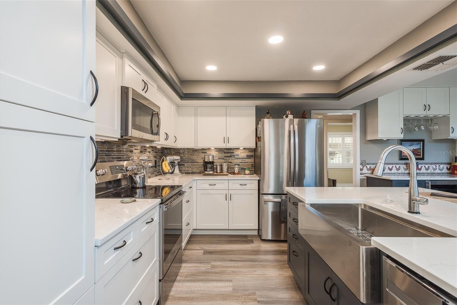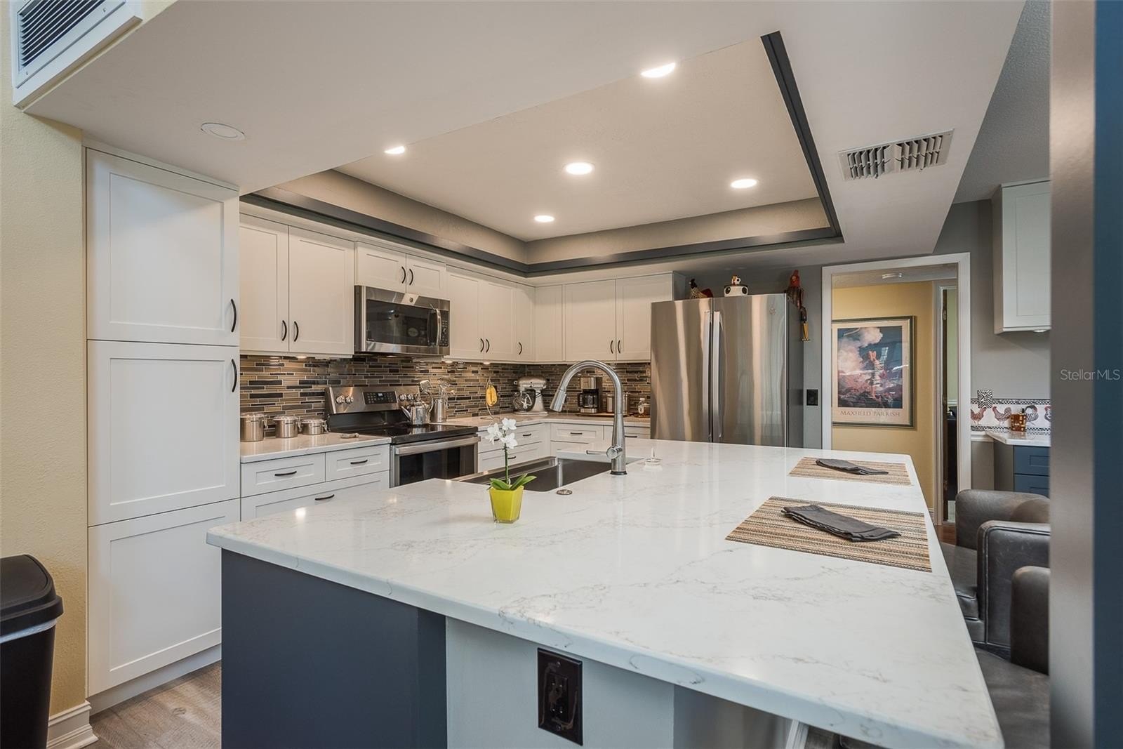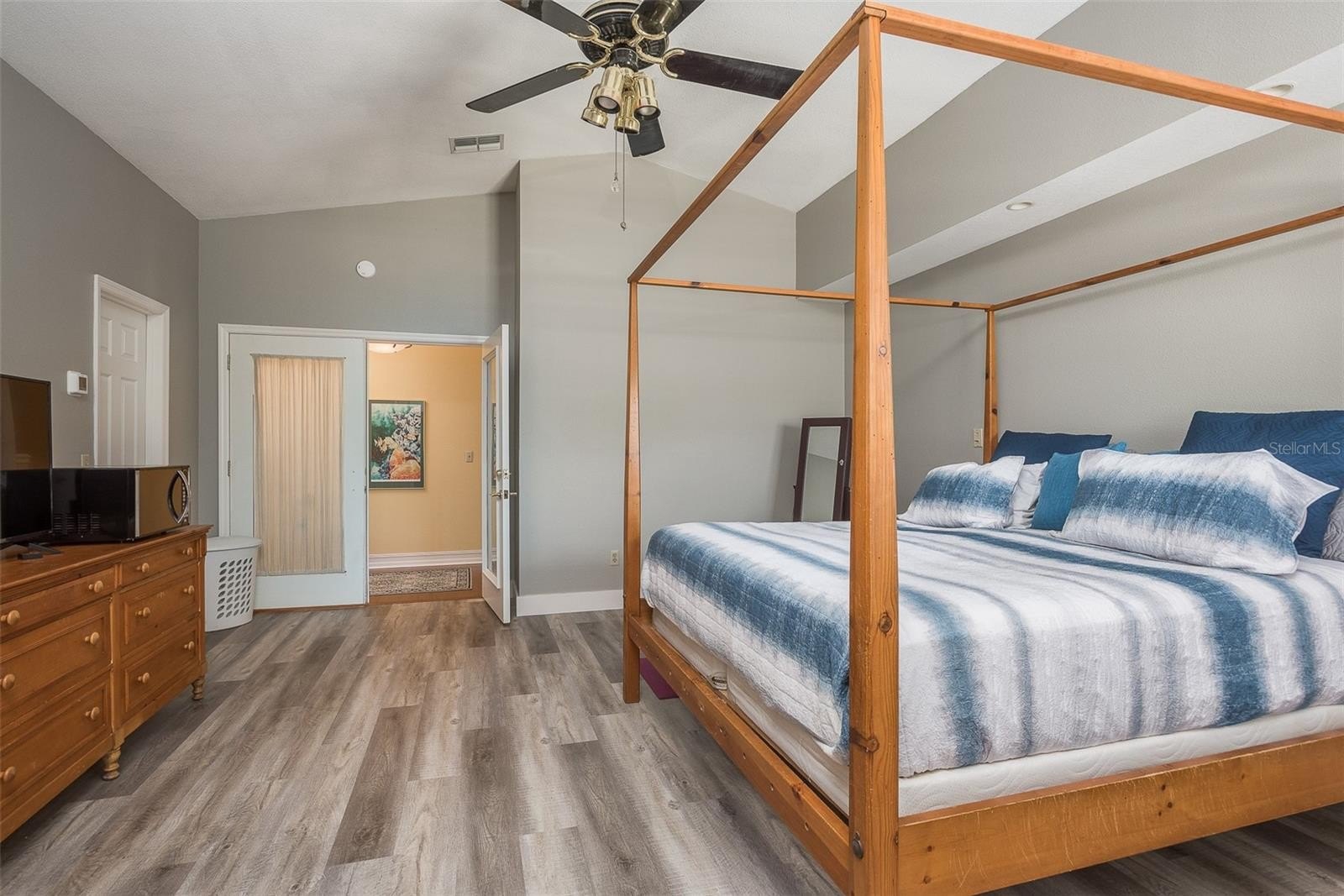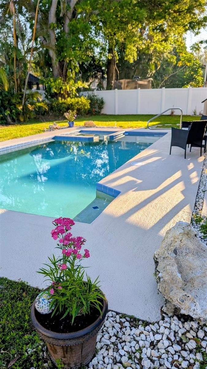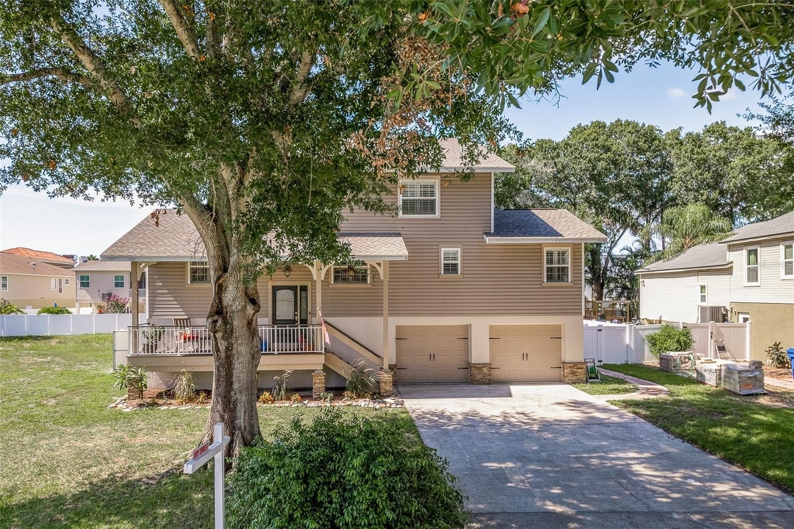 Gorgeous, fully remodeled 4-bedroom, 3-bath home in Baywood Village 5 — Light-filled living with modern finishes and private Gulf access without waterfront pricing. Lot includes fenced yard, pool w/ spa, and covered porches front and rear. Optional HOA $178 yearly provides neighborhood boat ramp and direct Gulf access approximately 80 yards out your door, giving quick access to the Gulf while avoiding waterfront premiums. Primary master oversized bedroom, generous closet space; spa-like ensuite features quartz counters, new vanity, freestanding soaking tub, glass shower enclosure and separate water closet, an elegant private retreat. Bedrooms 2–4: well-proportioned rooms with large windows and ample closet storage. Living areas: open-concept layout with vaulted ceilings and abundant natural light from large windows. Built-in shelving and a wood-burning fireplace. Kitchen: fully remodeled with modern quartz countertops, large island and meal prep, stainless steel appliances, stainless farmhouse sink, ample cabinet storage and a convenient bar fridge in the casual dining area — ideal for entertaining and everyday living. Bathrooms: updated throughout with contemporary finishes, quality fixtures and practical storage solutions. Exterior & Outdoor Living: pool area with spa — private outdoor space for swimming, sunning, barbecues. Covered front and back porches provide shaded outdoor seating and enhanced curb appeal. Fenced yard with space for boat, jet skis, kayaks and other water toys; ample parking including garage space plus overflow for 2+ cars. Neighborhood boat ramp located just three houses down provides quick Gulf access in minutes — perfect for boating, fishing and coastal recreation without waterfront prices. Newer roof and updated windows increase energy efficiency. Comprehensive interior remodel includes new flooring, refreshed kitchens and bathrooms, modern fixtures and finishes — the home is move-in ready and shows strong owner pride. Mechanical and structural updates completed where noted; detailed upgrade list available upon request.