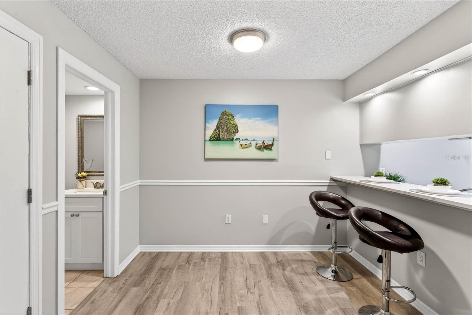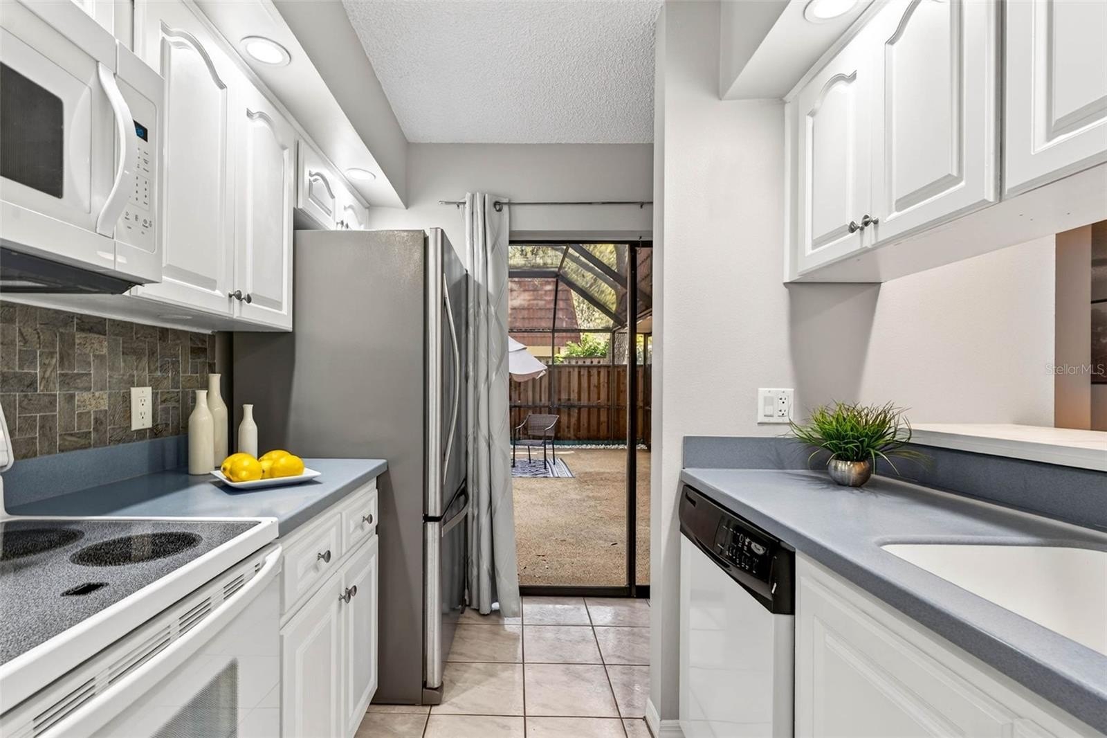 Inside, the home offers approximately 1,344 square feet of thoughtfully designed living space and has been recently updated with attention to both style and functionality. The interior showcases luxury vinyl flooring, fresh neutral paint throughout, and a bright, open layout perfect for everyday living and entertaining. The spacious living and dining areas flow effortlessly into the updated kitchen, which features newer appliances (refrigerator and microwave), ample cabinetry, and a clean, modern aesthetic.